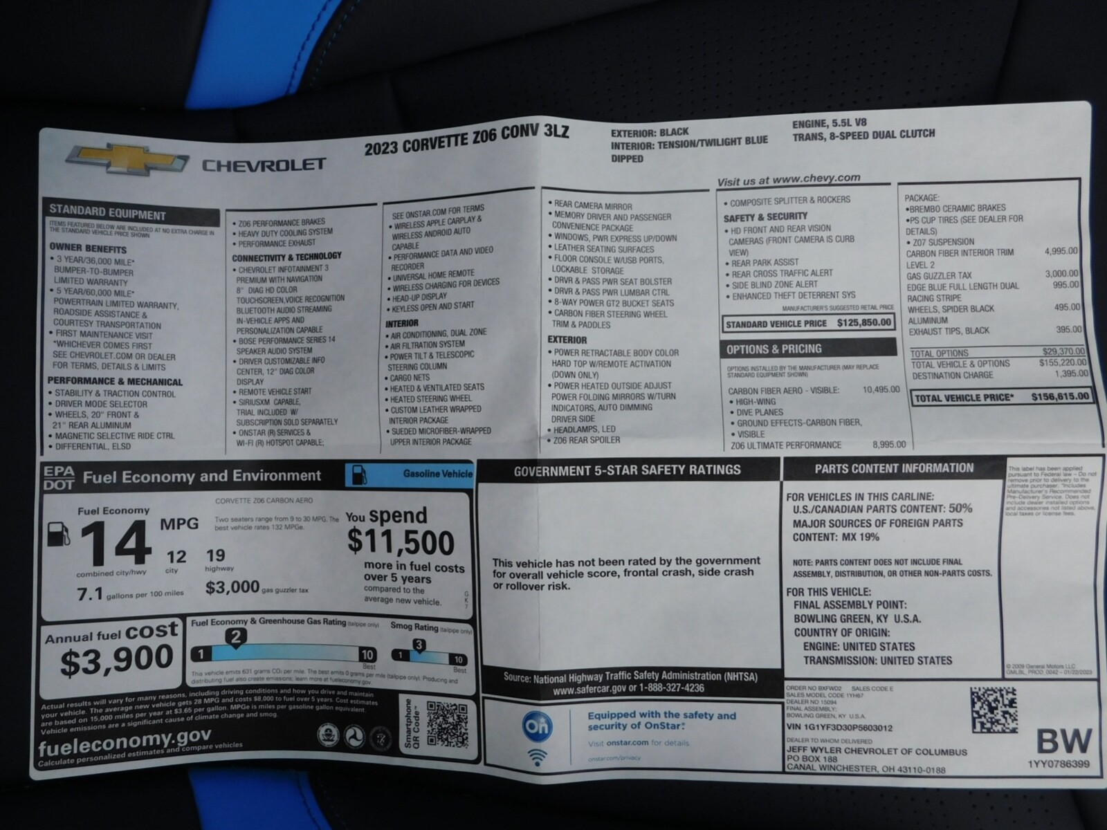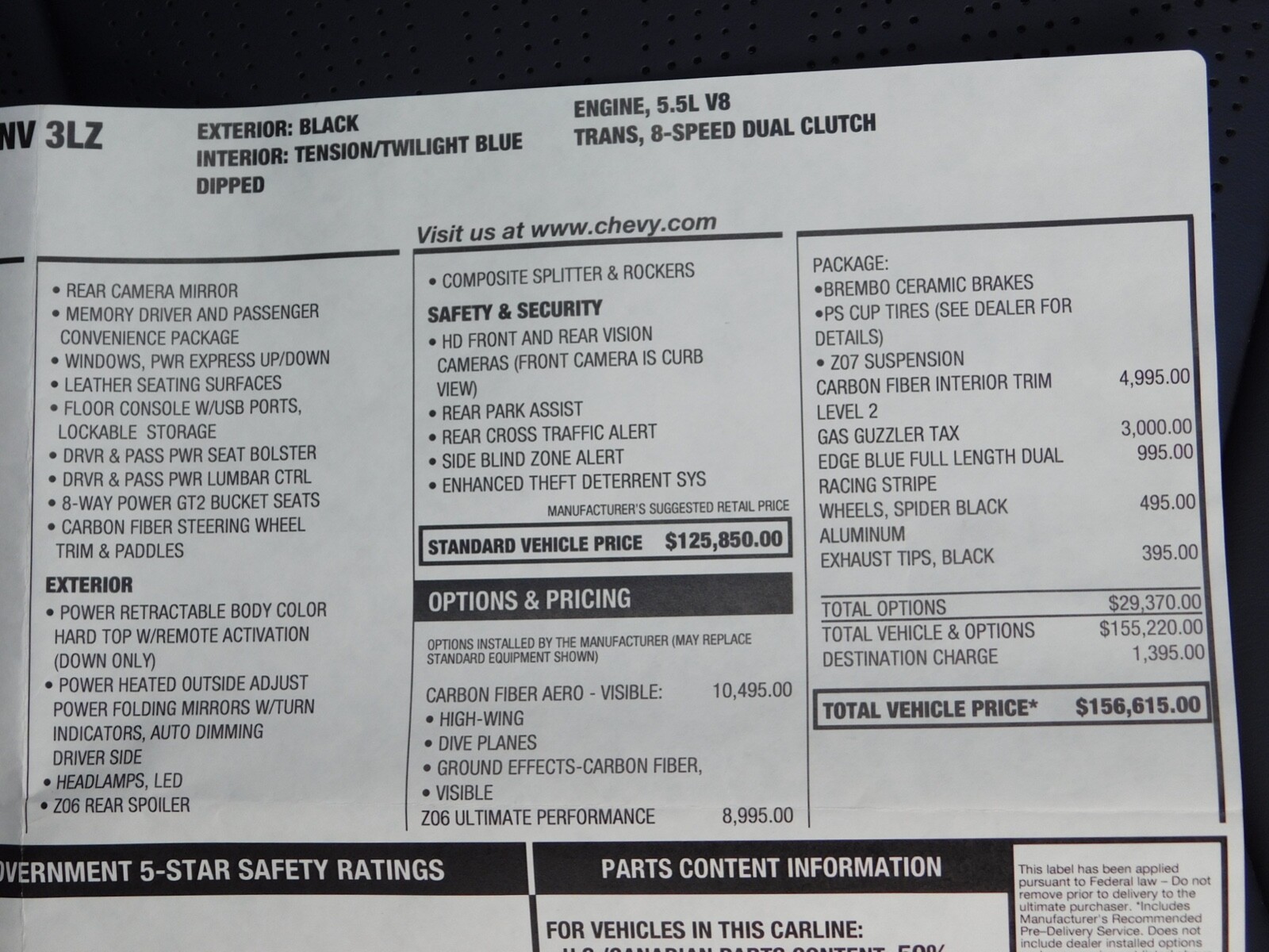 1 Owner, 689 Miles. Clean Title, Clean Carfax. Full Factory GM Warranty Transferable to New Owner. Absolutely NEW NEW NEW! Zero cosmetic flaws inside and out! Take a look at the original window sticker for the full factory build and options. Watch my thorough and detailed YouTube video at this link: https://youtu.be/e-cB91Br-0c Modifications and extras: K40 platinum laser/radar diffuser - professionally and discreetly installed ($3800 value)Blue LED interior lightingCeramic coating on entire vehicle exterior Clear 3M PPF (paint protection film) on entire front of vehicle (hood, fenders, front bumper, mirror-backs)Custom color blue brake calipers and blue "Z06" side blade badges Financing available for well qualified buyers - please inquire for details. Happy to assist arranging transportation worldwide through a trusted, insured vehicle shipping company. Please feel free to ask any questions!