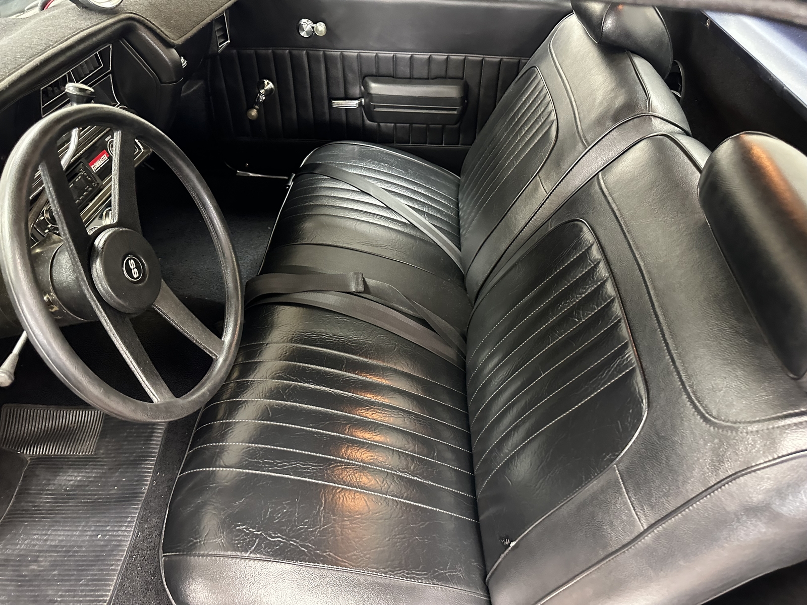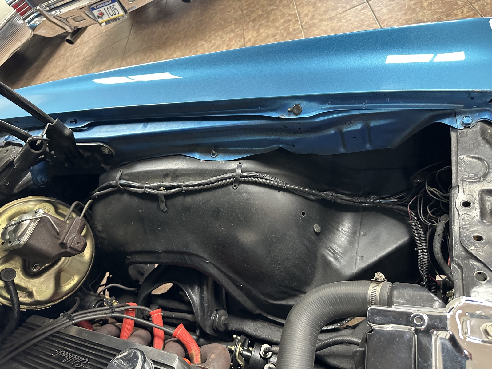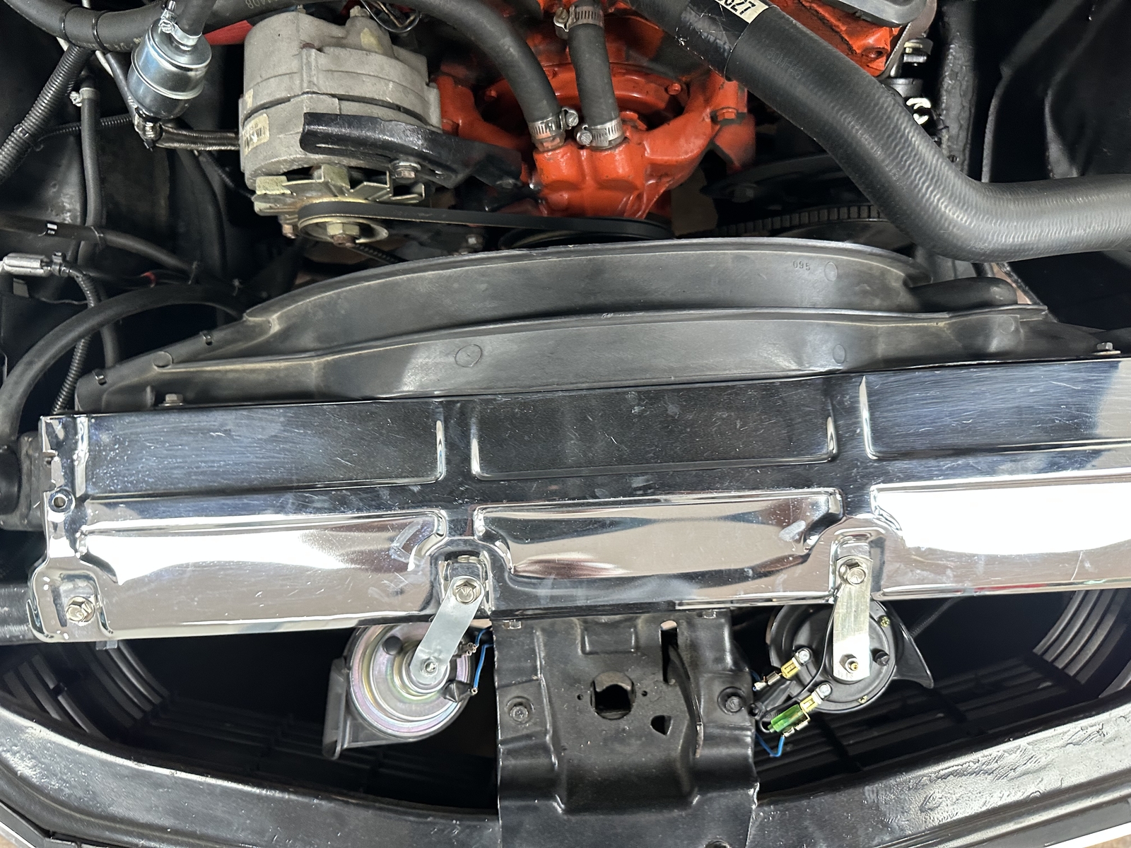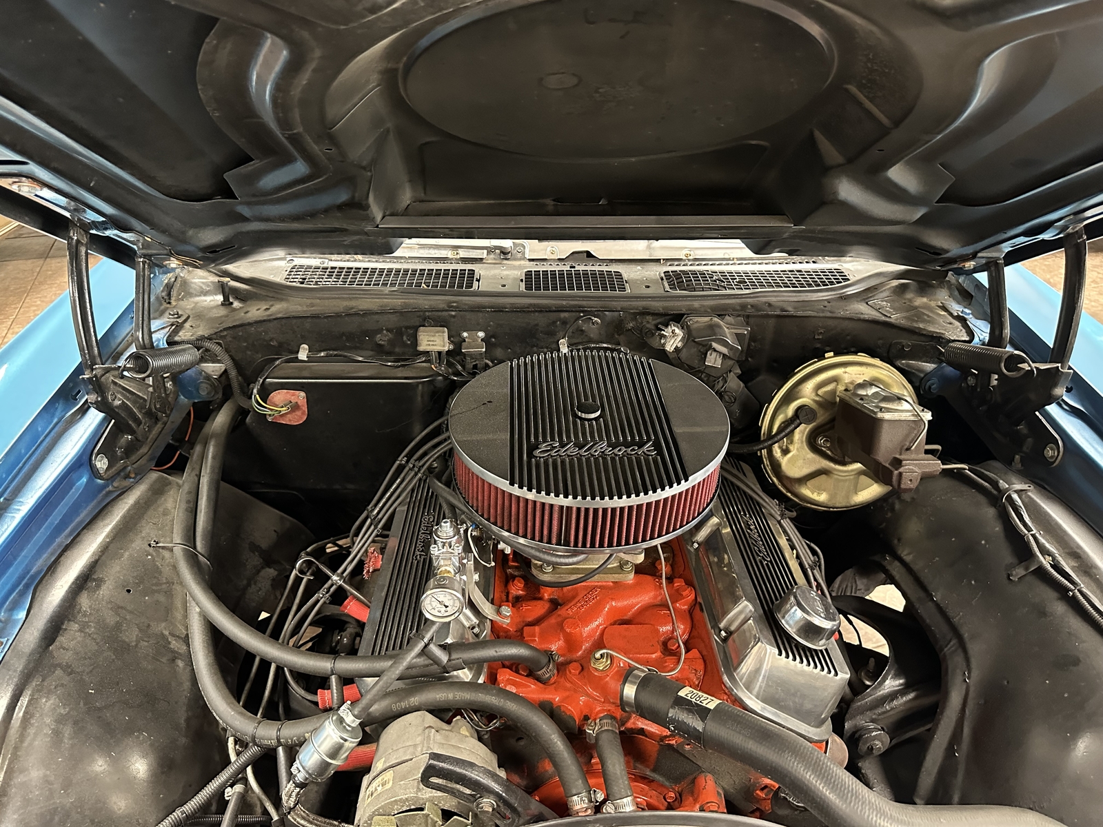Edelbrock valve covers Edelbrock Carburetor and Air Cleaner Cowl Induction Hood Power Steering and Power Brakes Boss and Sunpro gauges 10-bolt Rear End Stock Steel Wheels Rings and Centers Pioneer Stereo