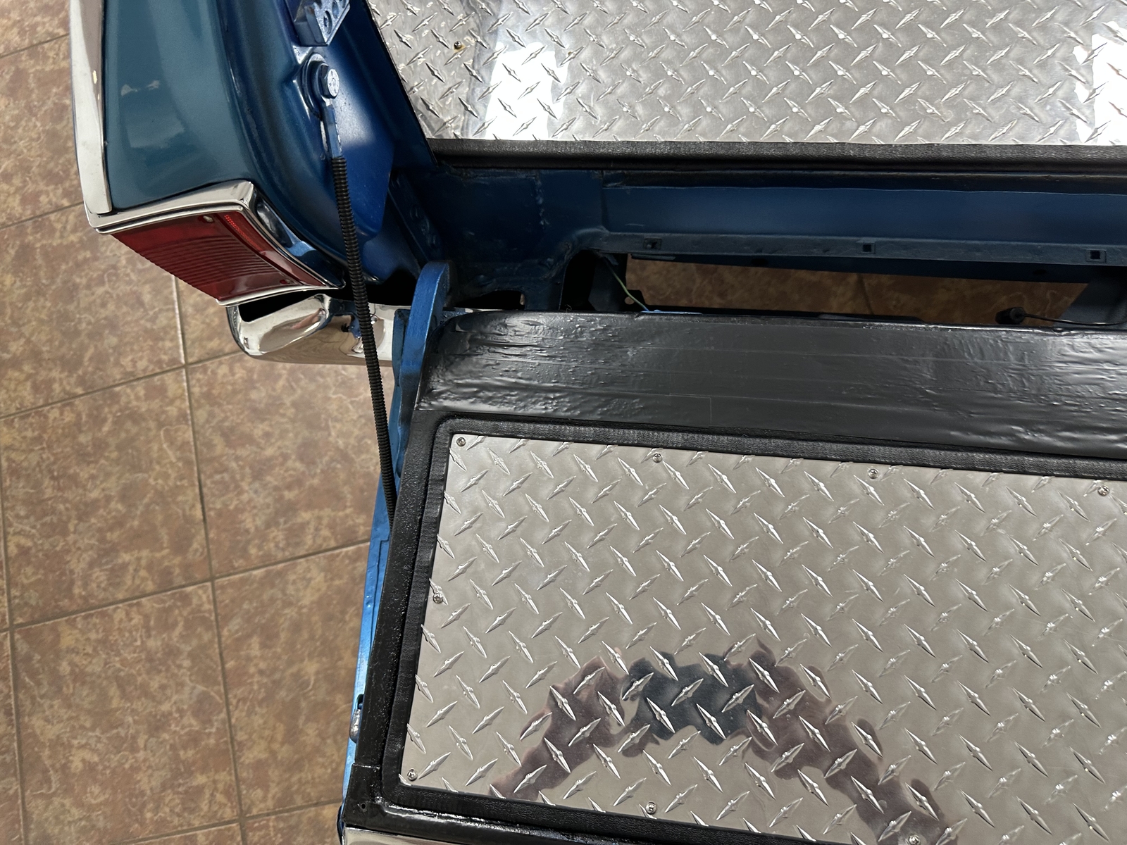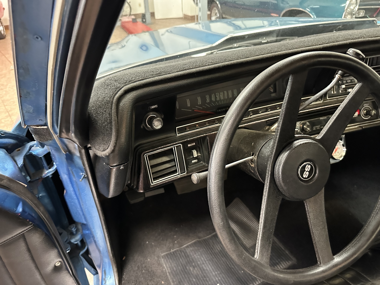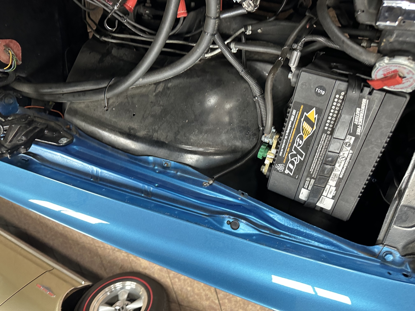 Edelbrock valve covers Edelbrock Carburetor and Air Cleaner Cowl Induction Hood Power Steering and Power Brakes Boss and Sunpro gauges 10-bolt Rear End Stock Steel Wheels Rings and Centers Pioneer Stereo
