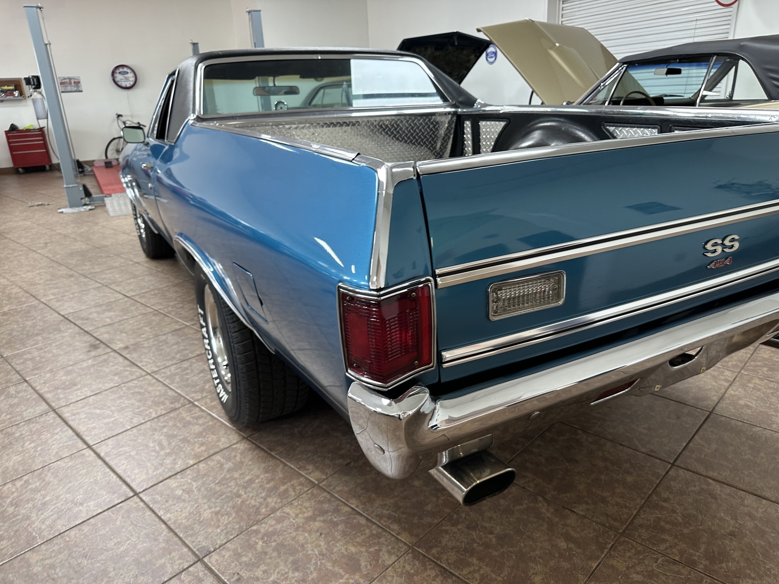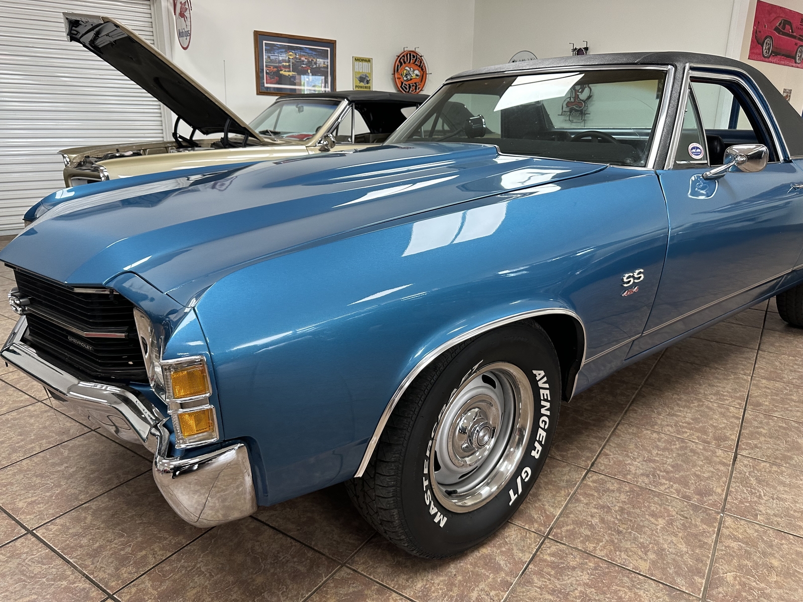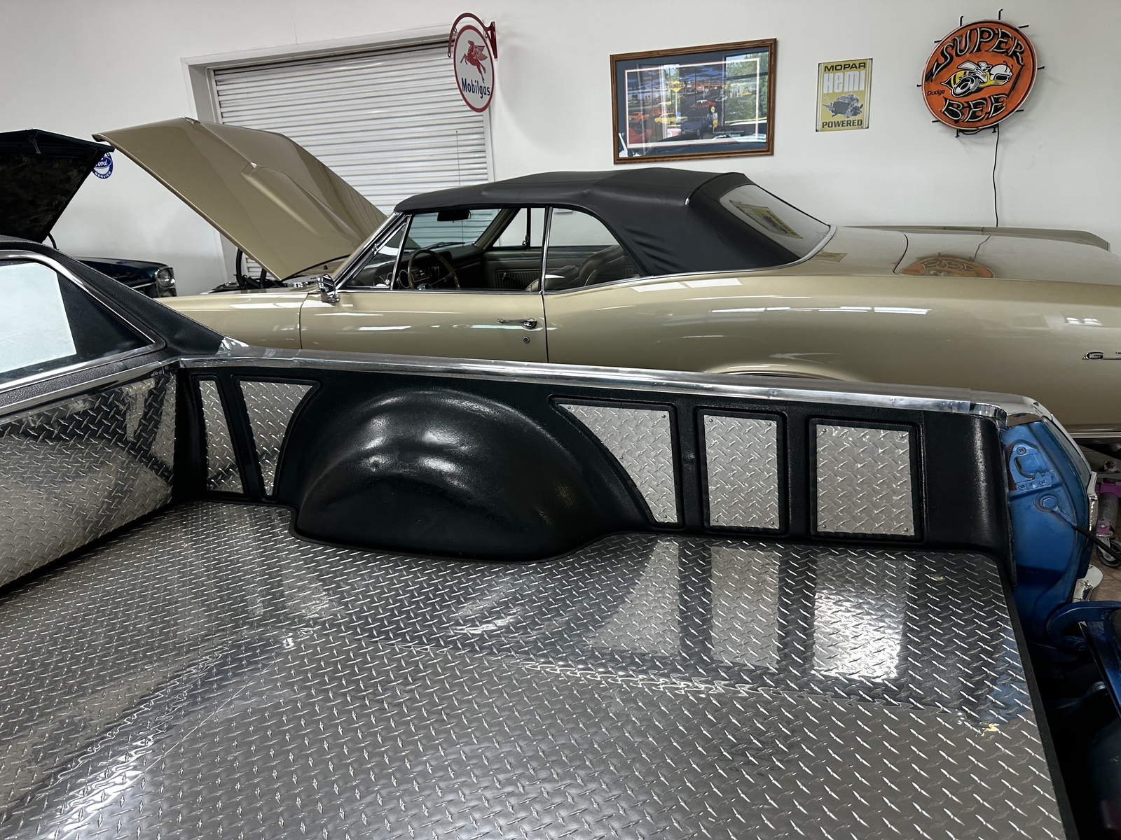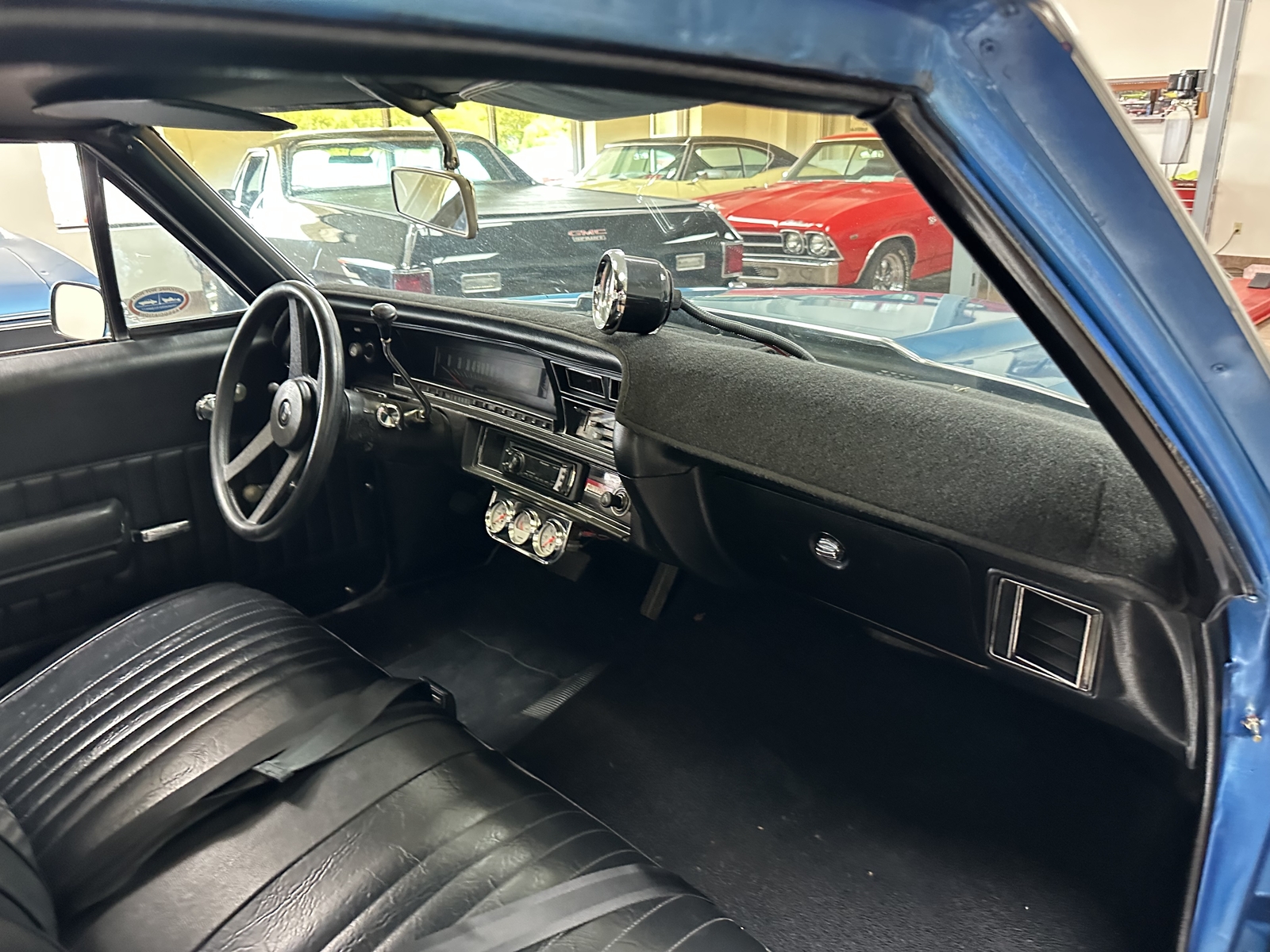 Edelbrock valve covers Edelbrock Carburetor and Air Cleaner Cowl Induction Hood Power Steering and Power Brakes Boss and Sunpro gauges 10-bolt Rear End Stock Steel Wheels Rings and Centers Pioneer Stereo