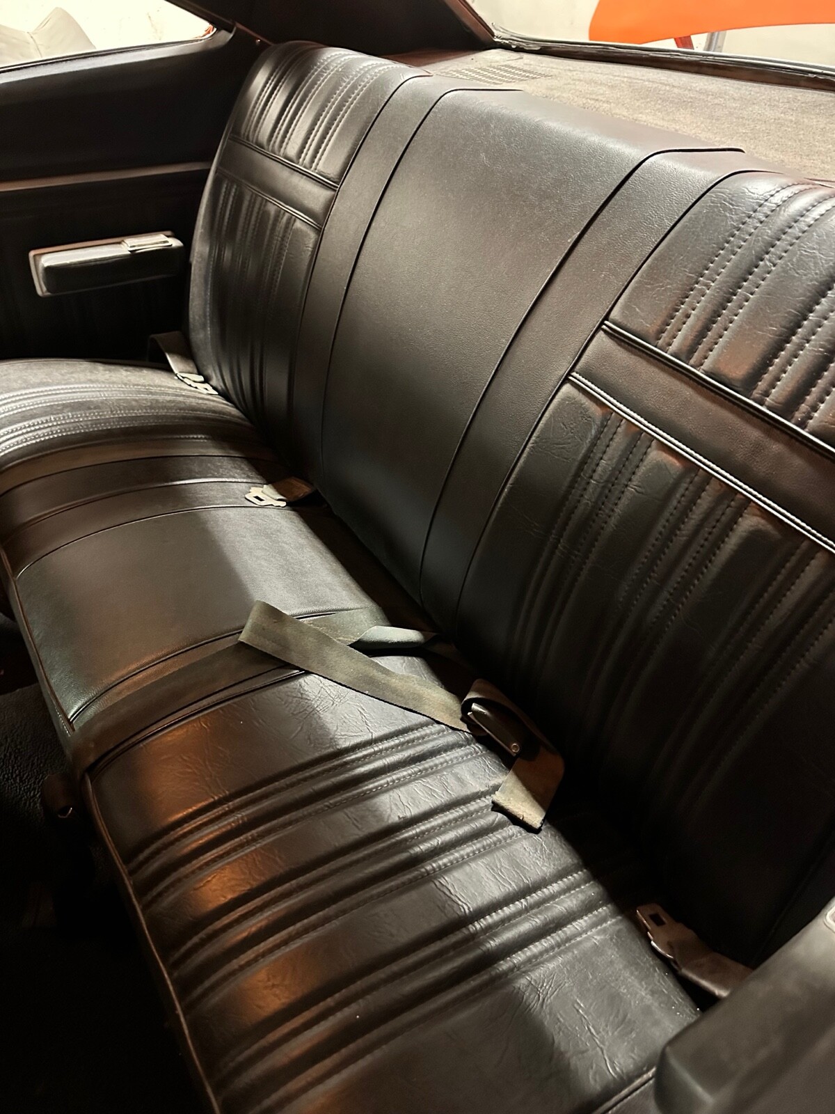The interior of the car is very presentable with new door panels carpet and seat covers. The black seats are in good shape.