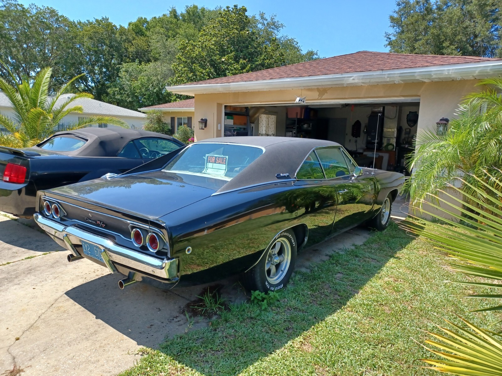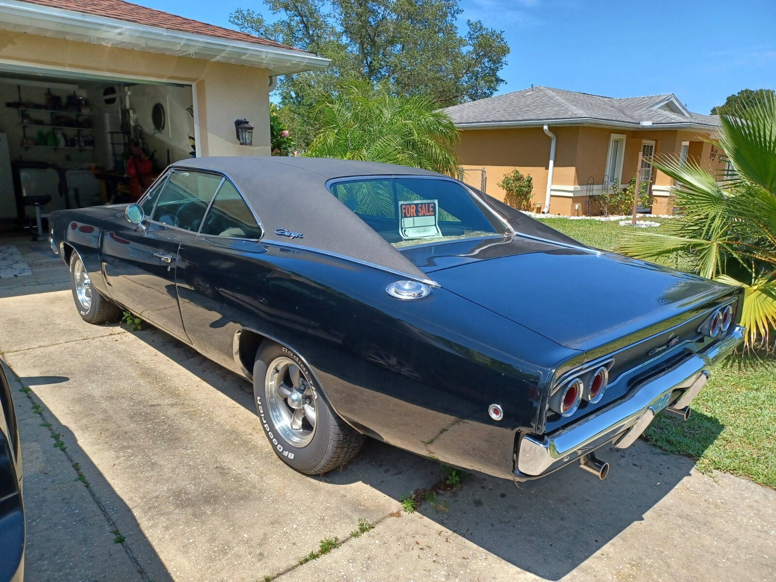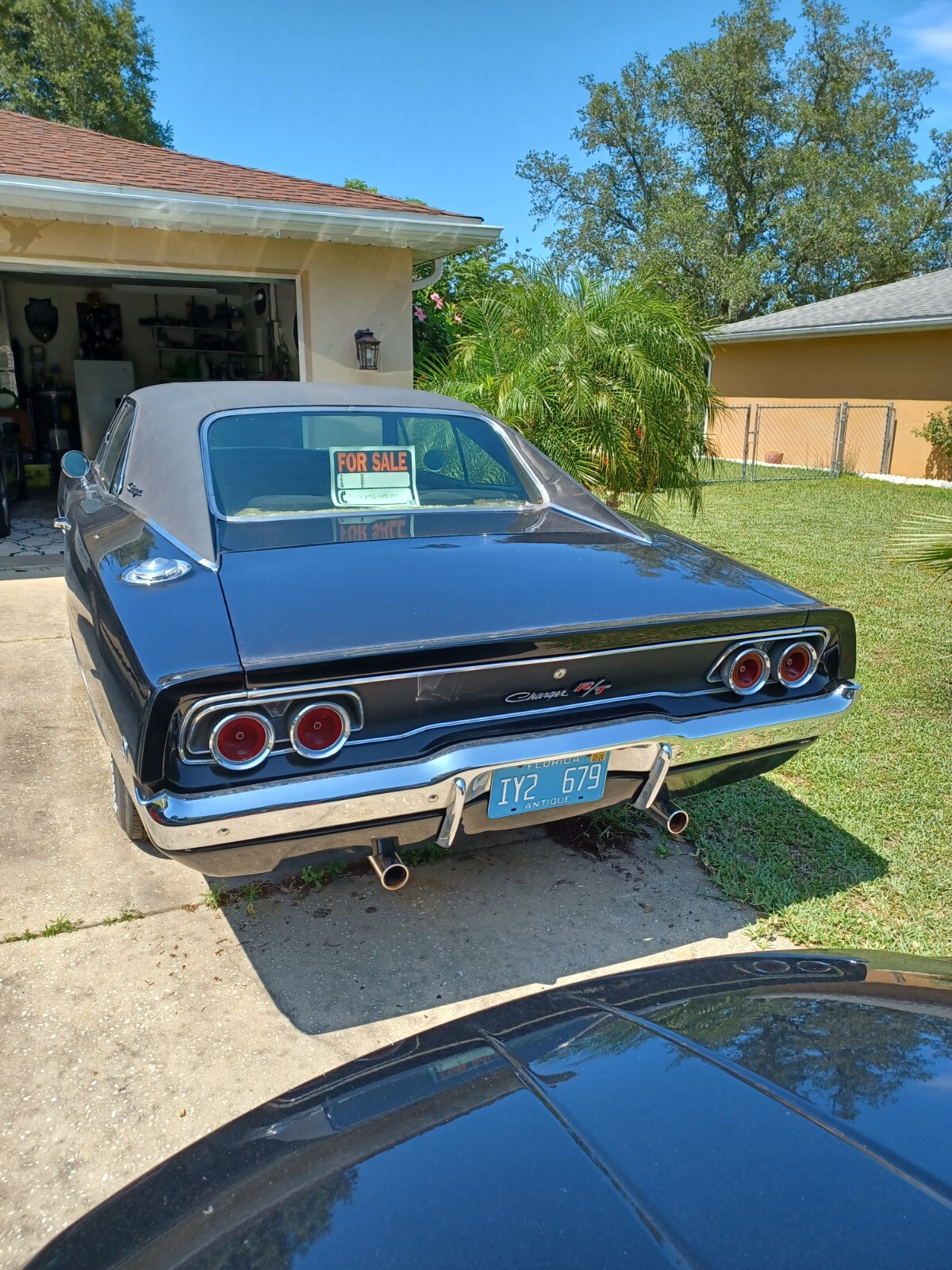 1968 Dodge Charger R/T. Low mileage car, was previously race car. Original 440 is long gone, now has 1967 383 engine. 2 barrel. Older restoration done approximately early 2000's. Had new quarters welded in, because wheel wells were radiused (cut out). Will need new front floor plans, rear floor plans are solid. Trunk is solid, body overall very well for it's age. Has console automatic, power disc brakes. Runs, drives, and stops. Has been driven to local car shows, where it always attracts attention.. Headlight doors were converted to electric several years ago. Seats will need to be recovered. Driver's seat has hole in seat cushion, and back bolster. All gauges, speedo and tach working. After market stereo.