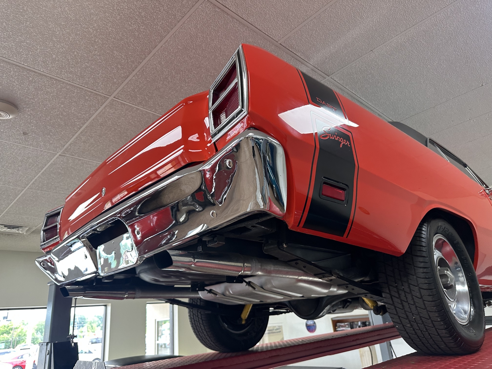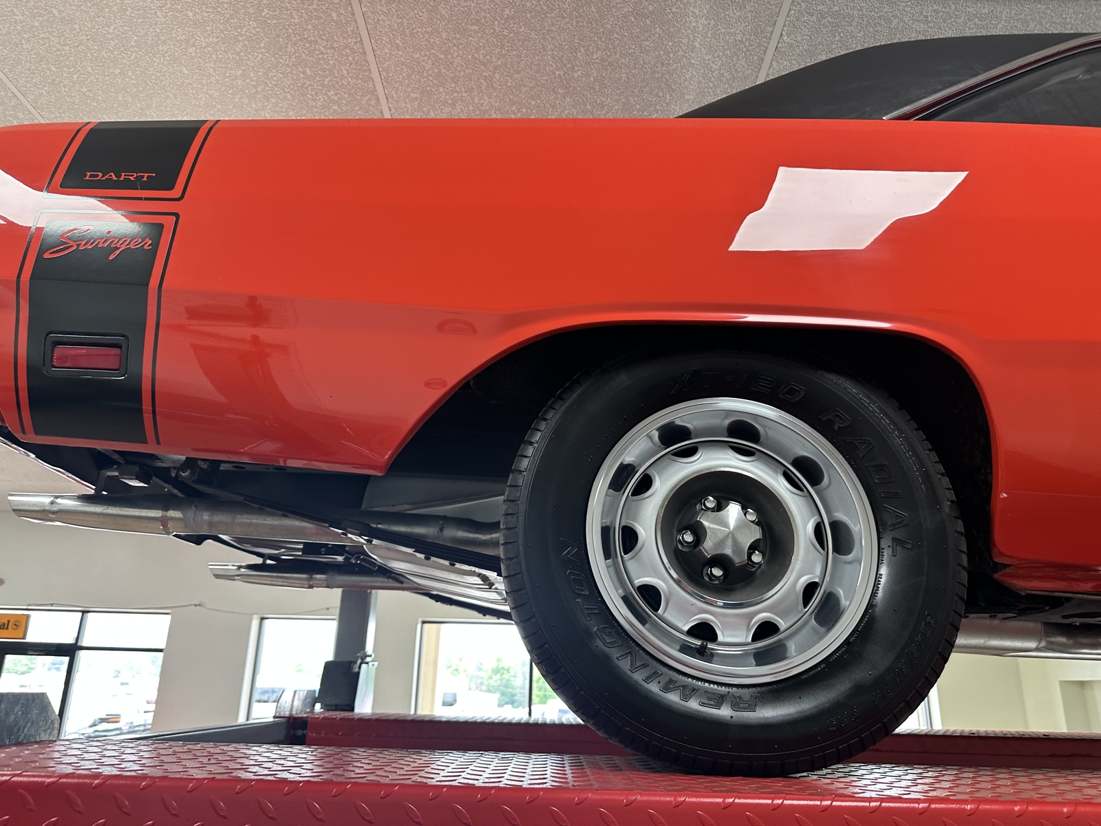 340 1971 Engine 4-Speed Manual Hurst Shifter 8 3/4 Pumpkin Rear End 3:23 63,256 odometer Bench Seat with Headrest Black Stripes Black Vinyl Top Edelbrock 4 Barrel Carburator M&T Valve Covers Headers Actual Mileage on Odometer