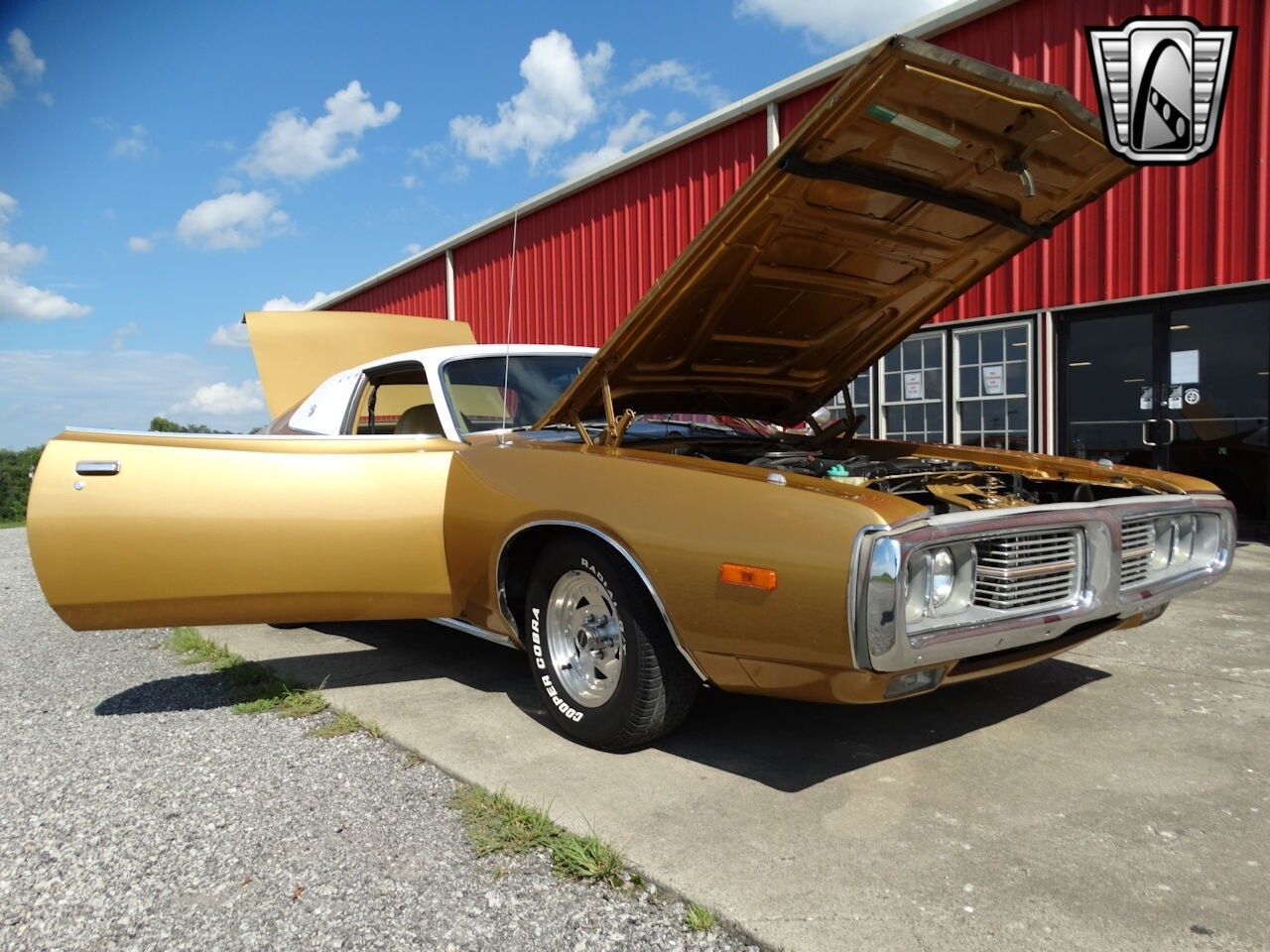 Gateway Classic Cars of Louisville is proud to present this 1974 Dodge Charger SE w/Landau Top! By 1974 Dodge was well into the 3rd generation of the iconic Charger. Mid 70s was a tough time for muscle and the masses were looking for more comfortable luxury cars. 1974 would be the last year that Dodge would offer performance options on a Charger. After nearly 50 years, this slick Charger is still ready to cruise down the road! The gold paint is sharp and not a color we have had very often. The white Landau top adds a lot of character and is also in good shape. Inside looks like a time capsule, the gold cloth seats look hardly used. Under the hood, per the owner, is the original 318ci V8 backed by an automatic transmission. Odometer only shows 24k miles elapsed but unsure if original, so we are NOT claiming actual. The overall condition of the car coupled with the owner believing it has only been painted it could be true mileage. Current owner has had her for 3 years, acquired from a private owner. She is titled as a 1974 Dodge Charger Special Edition. [ omitted ]. [ omitted ]. [ omitted ].