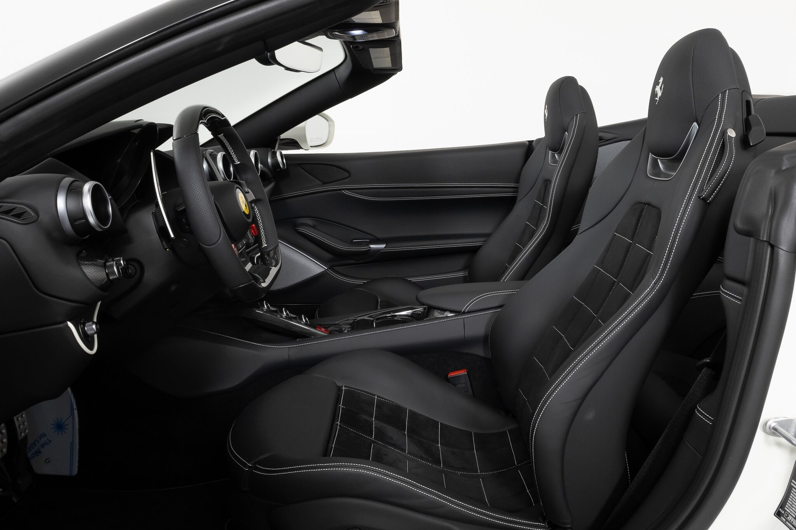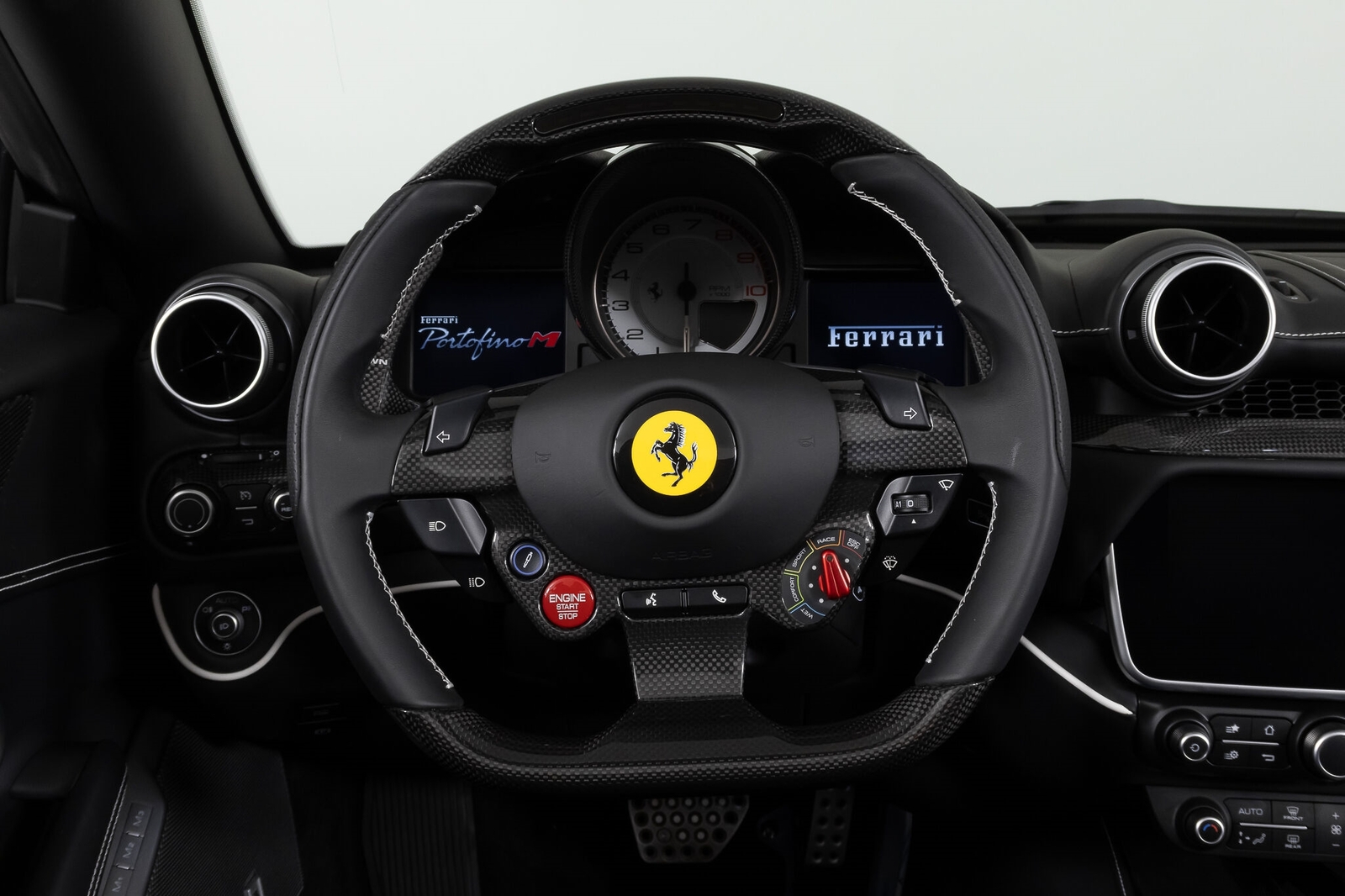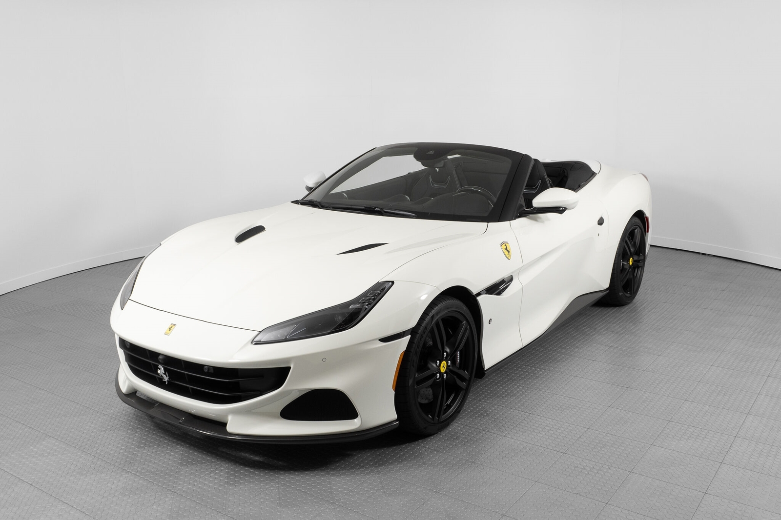Ferrari South Bay is pleased to offer this highly optioned Portofino M finished in Bianco Avus with Nero Black leather contrasted with white stitching, featuring a wide array of Carbon Fiber and special equipment. Open air sophistication conspires with thrilling performance in the Portofino M to ensure you'll enjoy tasteful luxury and classic elegance along with the sensational driving experience which has been the foundation of Ferrari's iconic road cars for over seventy years.The exterior is finished in Two-Tone Bianco Avus with Nero Black Roof to accentuate the fighter jet look. The 20" Forged Matte Black Wheels surround Carbon Ceramic Brakes sporting Black Calipers. Carbon Fiber finishes the Rear Air Ducts, Rear Diffuser, Front Air Intakes, Underdoor Cover, Front Splitter and Exterior Sill Kicks. Scuderia Ferrari Shields adorn the fenders, while the Dual Mode Magneride Suspension smooths out rough roads, and sharpens up when taking on a set of curves. Inside, you'll find the cabin trimmed in Nero Leather and Alcantara, including the Fully-Electric Quilted Style Seats. There is Bianco White stitching and piping throughout the cabin, including the Cavallinos Embroidered on the seat headrests. The Steering Wheel is Carbon Fiber with Ferrari's now-signature LED Shift Lights, in front of Carbon Fiber Shift Paddles and a Tachometer finished appropriately in White. The Instrument Binnacle, Cup Holder(!), Dashboard Inserts, and the Central Bridge are Carbon Fiber as well. The Carbon Fiber Shift paddles are highlighted with White Dreamlines. Welcome conveniences are the Foldable Rear Seat Backrests, Smartphone Interface, and Electrochromic Rear-View Mirror. An Advanced Front Driving Camera as well as 360-degree Surround View Camera help with tight maneuvers, and a JBL Hi-Power Audio System and Passenger Display keep your companion entertained when you can't drive the car in an entertaining way!This Ferrari Certified Pre-Owned Portofino M is offered with both original keys, books, battery tender, and cover. It is covered by its original Factory Warranty through January 22, 2027 (and can easily be extended by two years at time of purchase); Ferrari's Genuine Maintenance Program covers annual maintenance through January 22, 2031, making this beautiful Portofino M as easy to own as it is fun to drive. If you'd like to know more about this car or others in our inventory, please reach out to our knowledgeable sales staff to arrange a viewing!