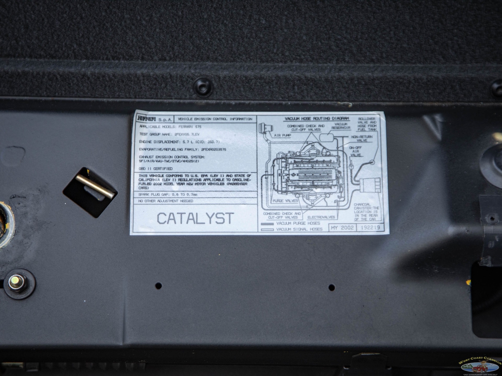Two six-speed transmissions were available, a conventional manual gearbox and, for the first time on a Ferrari V12, the "F1" automated manual gearbox. The 575 model number refers to total engine displacement in centiliters, whilst the 'M' is an abbreviation of modificata ("modified").
