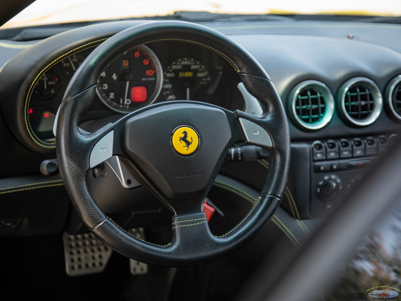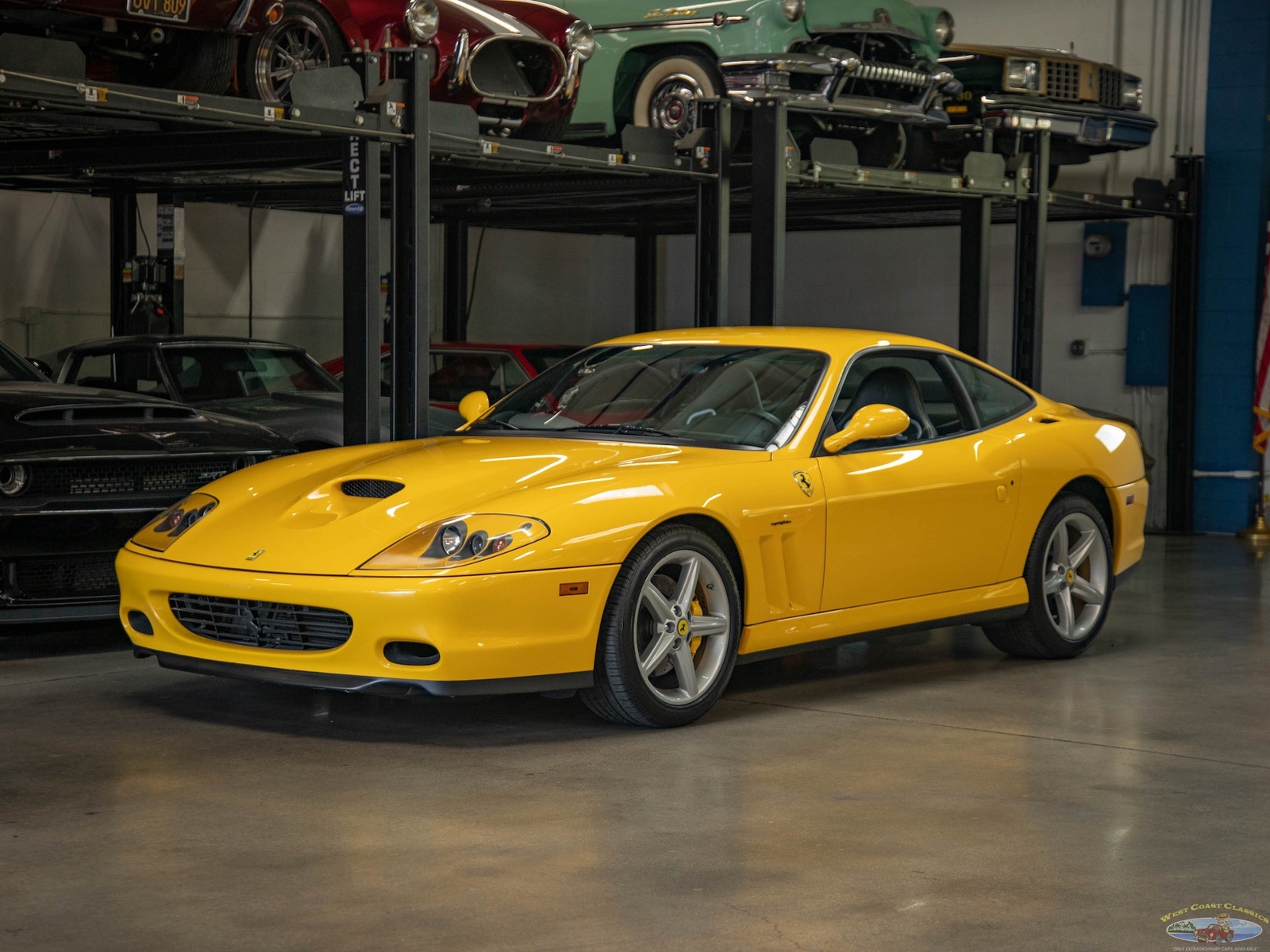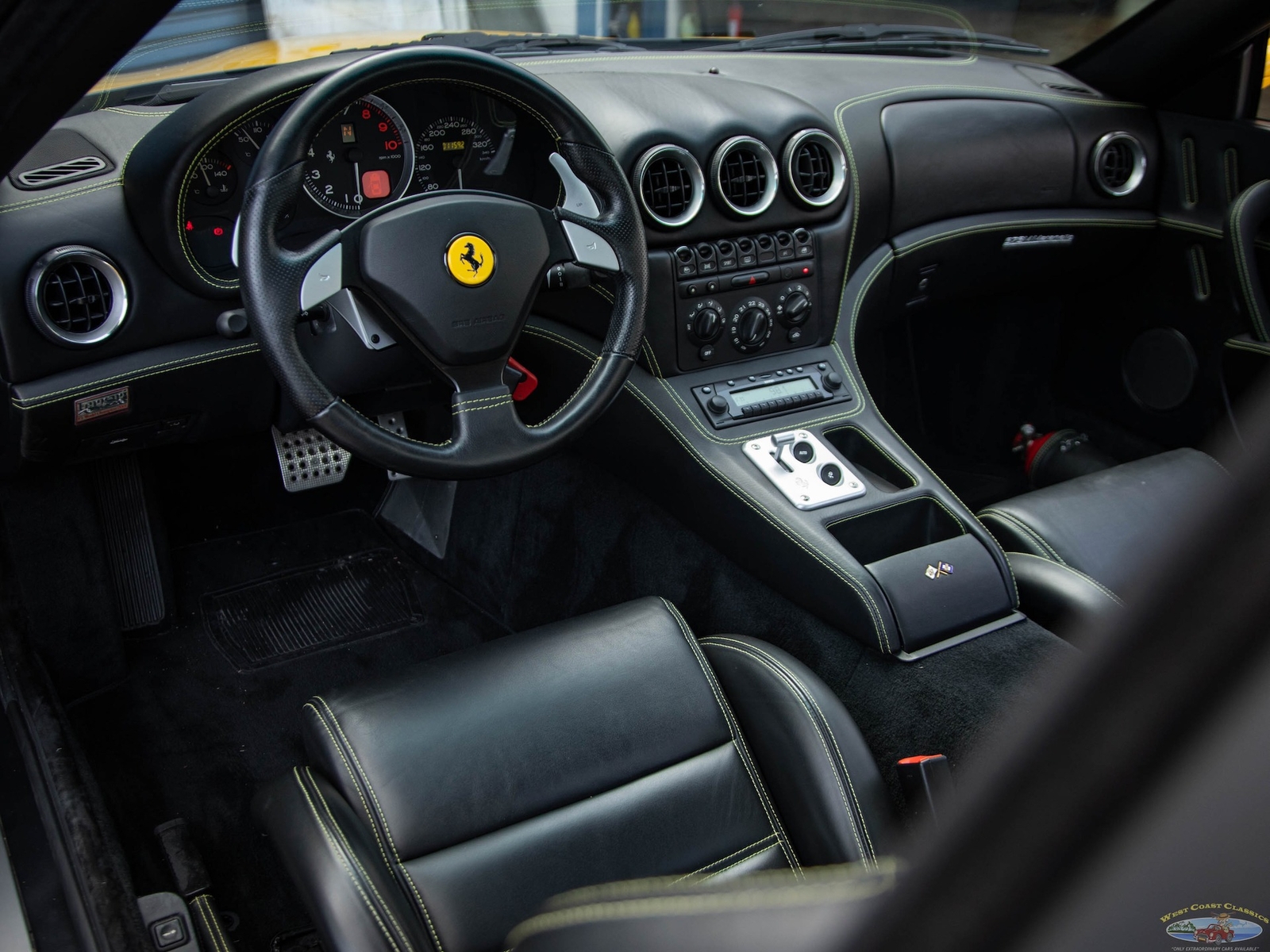 This must be one of the finest examples anywhere of a 2002 Ferrari 575M Marenello F1 5.7L V12 Coupe in the most striking and rare classic 'Giallo Modena' (Fly Yellow) color with 'Nero' leather and with only 7,202 original miles!