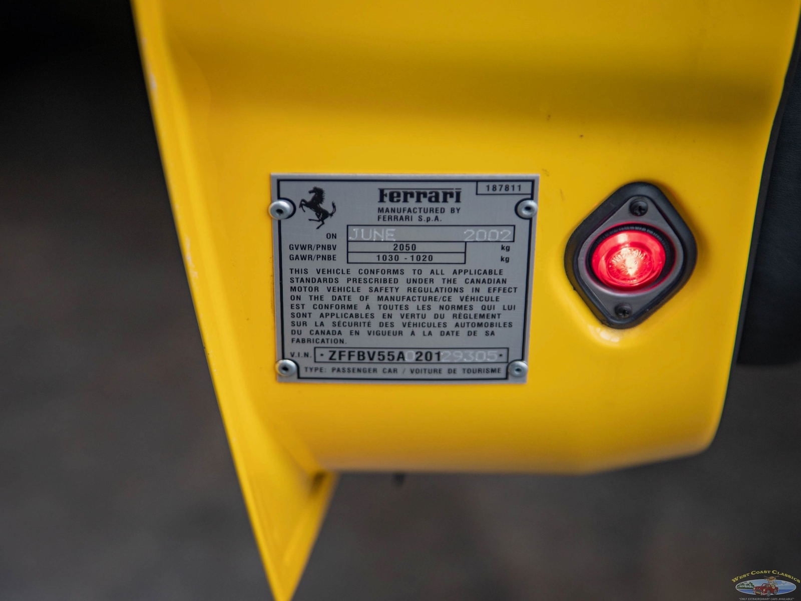 Purchased new at 'Ferrari of Ontario' in Toronto, Canada on 9/11/2002 and recently imported to the U.S with 11,592 kms (only 7,202 miles)!