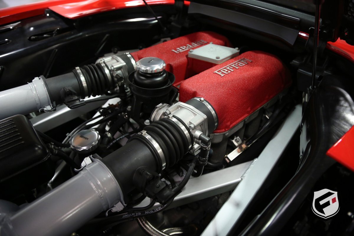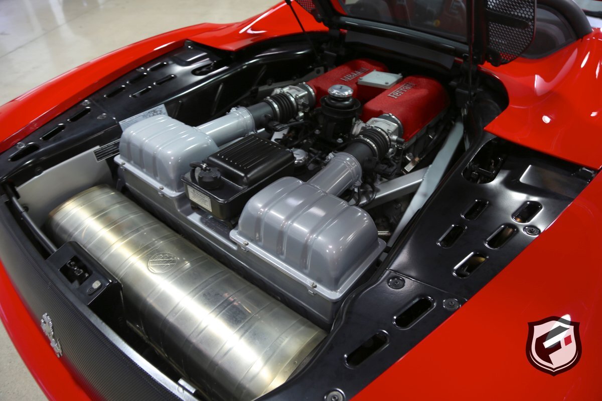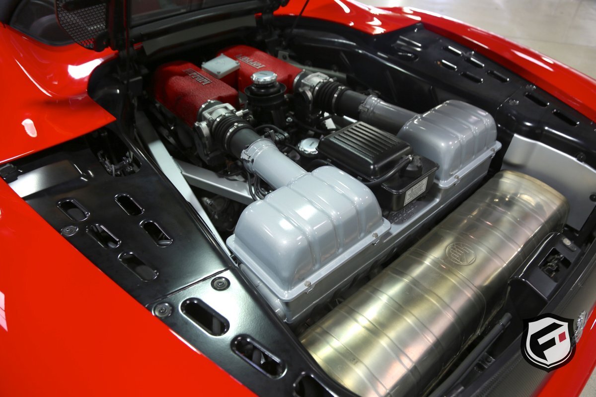 The new V8 engine, utilizes a 3.6 liter capacity, flat plane crankshaft, titanium connecting rods and generates 395 HP. Despite what on paper, looked like modest gains, in reality, the power-to-weight ratio was significantly improved on over the F355, due to the combination of both reduction in weight and more power. According to Ferrari weight was reduced by 60 kg and the 0 to 60 mph acceleration time improved to 4.5 seconds.