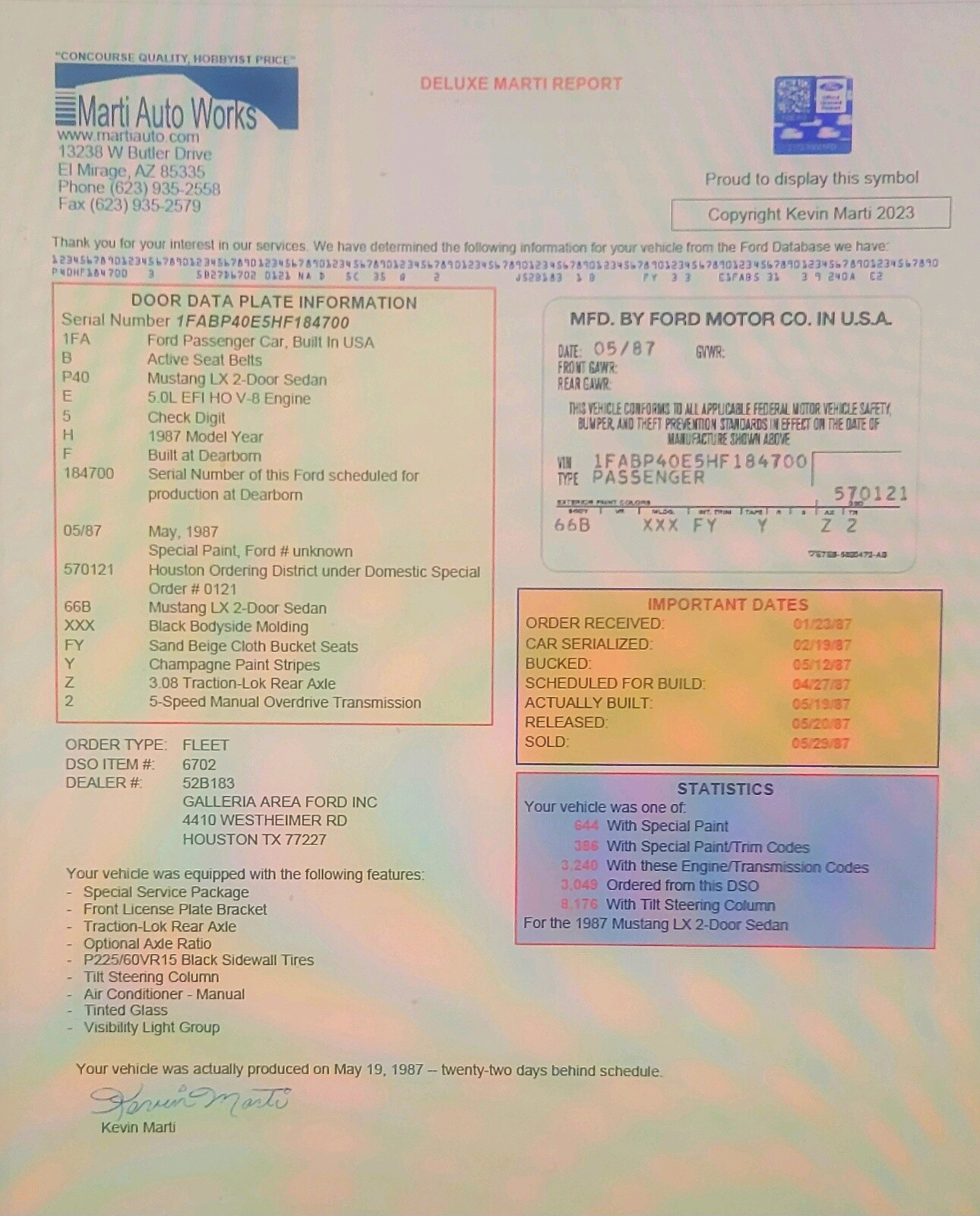 RARE - 1987 TEXAS SSP MUSTANG 5.0