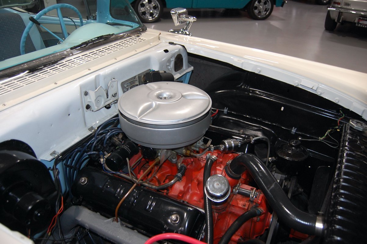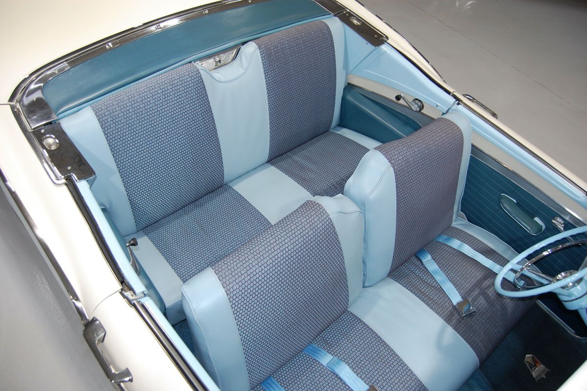 This 1957 Ford Fairlane 500 Skyliner Retractable is a super cool retractable hardtop with a fantastic 50s look. Debuting in 1955, Ford's Fairlane was an instant hit, so much so that Ford left the majority of the design of the '56 Fairlanes alone except for a few minor changes. In its 3rd year, Ford completely redesigned the look of its top-of-the-line model, the Fairlane, giving it a more updated, sleeker look. The bodies became longer and narrower, and the rear quarters featured a new winged look, which together simulated a more aerodynamic appearance. The front ends on Ford's 1957 products were also redesigned in 1957 which gave the cars a streamlined look. 1957 was also a big deal for Ford because it marked the introduction of the retractable hardtop, which had been under development for a number of years. Originally slated for the Continental Mark II, Ford incorporated the revolutionary retractable design into its Fairlane. The retractable hardtop is a mechanical sensation comprised of 10 solenoids, 7 high-torque motors, 610 feet of wire, along with numerous relays and microswitches, and it allows the hardtop to be mechanically lifted off (and on) the Fairlane and stowed completely retracted into the trunk area. When the new retractable hardtops debuted to the public at the New York Auto Show on December 8, 1956, they were an instant success with critics. It is also believed that despite selling nearly 21,000 units, Ford was probably unable to recoup its entire investment into the research and development of the retractable. Under the hood on this '57 Skyliner is a 312 Cubic Inch V8 engine with a single 2 barrel carburetor which is hooked up to an Automatic Transmission that anybody can drive. Dual exhaust gives this classic Ford retractable a nice throaty sound. With Power Steering, getting in and out of tight spaces is made much easier and the overall driving experience is much improved. The exterior on this 1957 Ford has been refinished in a beautiful two-tone color scheme comprised of Starmist Blue with Colonial White. Sitting on whitewall radial tires with full Ford wheelcovers, this '57 Skyliner has a great look and an even better ride. The rear wheels are also tucked behind a pair of beautiful fender skirts for that classic 50s appearance. The front and rear bench seats have been reupholstered in a beautiful Blue Vinyl with Blue Airweave Cloth Inserts complementing the overall look of the car. The dash, door panels, and steering wheel are all in nice shape as well and appear to be in their stock configuration. The dash is equipped with a 120 MPH speedometer, temperature gauge and fuel gauge, along with an AM radio and clock. A Sunpro oil pressure gauge has also been tucked neatly under the dash for additional information. Whether you're looking for your very first classic car or you're a retractable aficionado, this 1957 Ford Fairlane 500 Skyliner Retractable would be an excellent choice. Give us a call today!