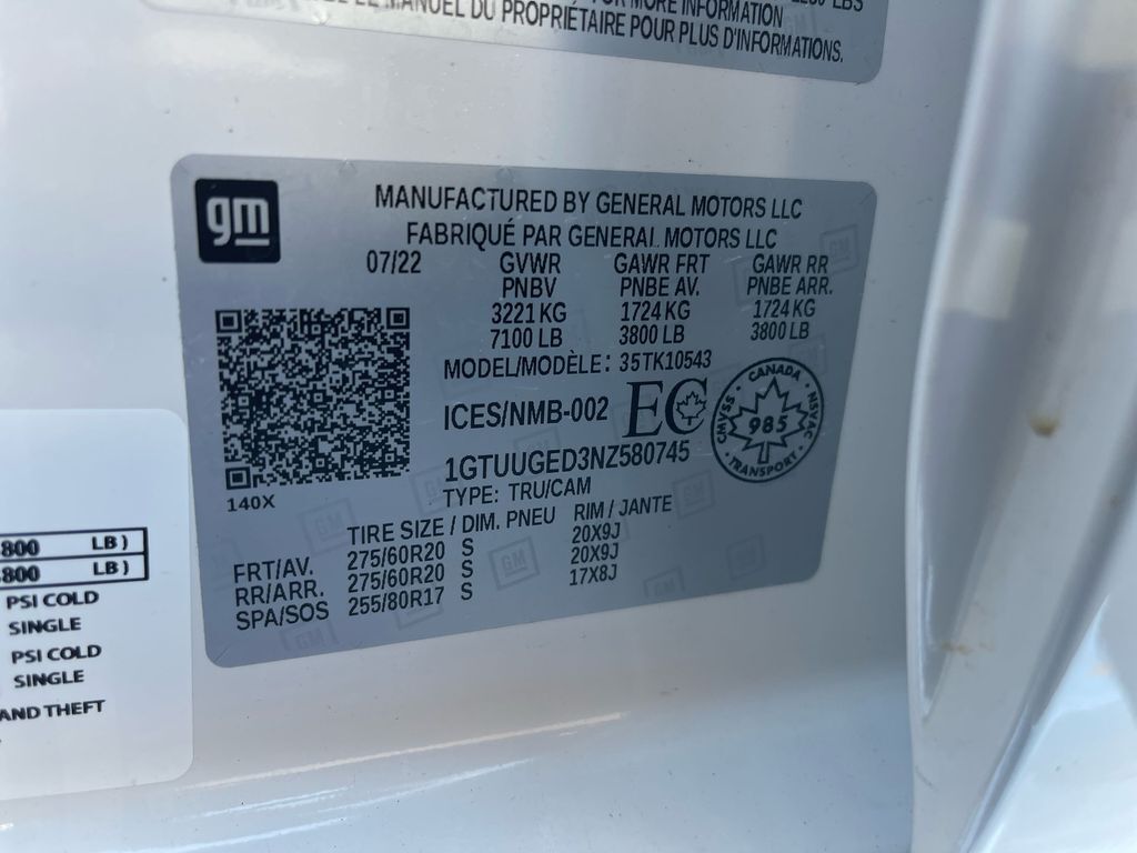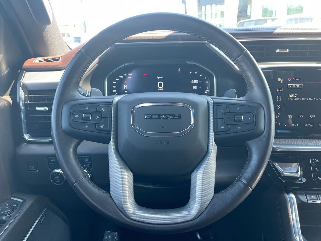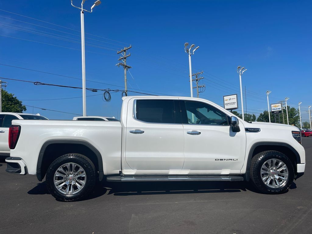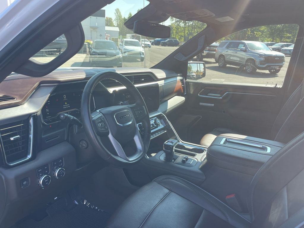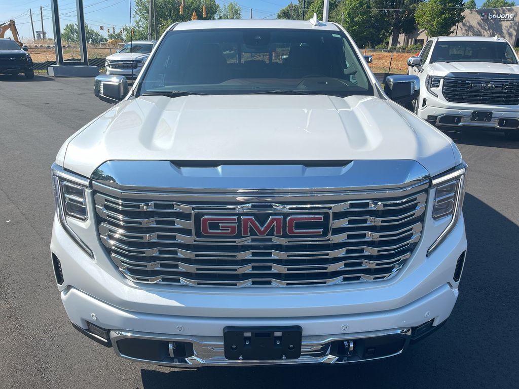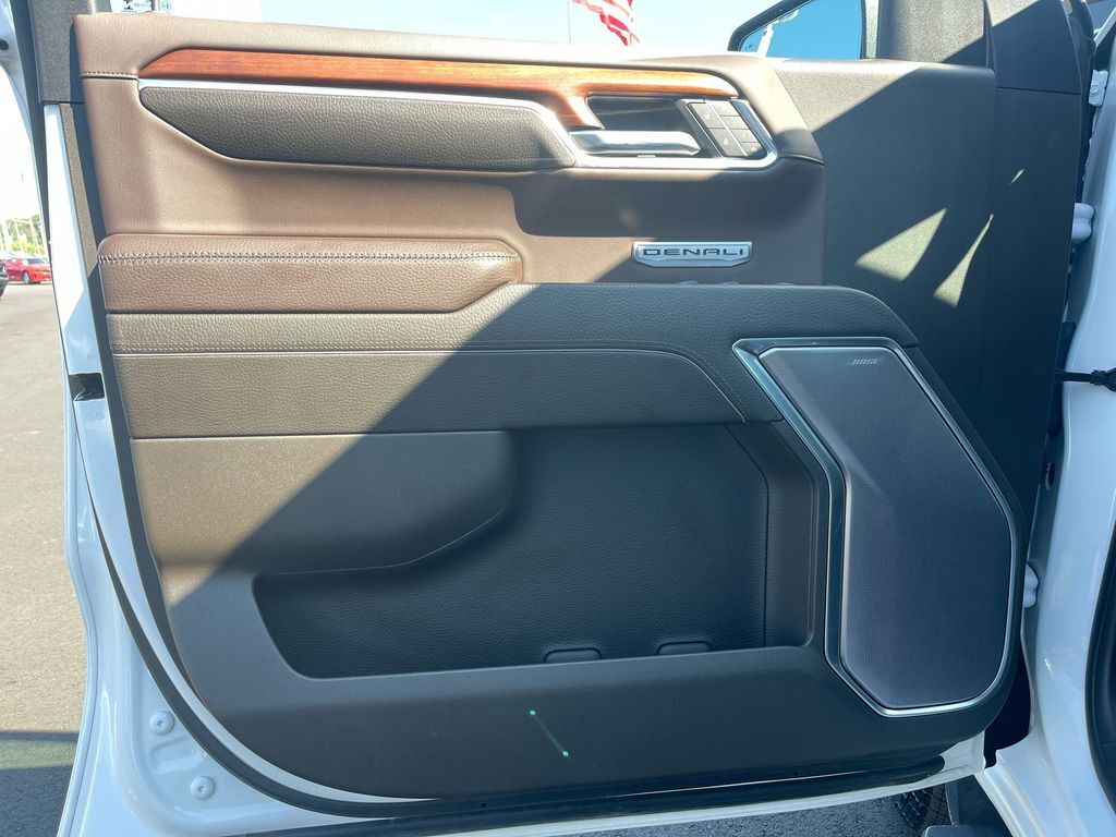 THIS VEHICLE INCLUDES THE FOLLOWING FEATURES AND OPTIONS: Trailering Package (Hitch Guidance), Sierra 1500 Denali 4WD, 10-Way Power Driver Seat Adjuster w/Lumbar, 10-Way Power Passenger Seat Adjuster w/Lumbar, 120-Volt Bed Mounted Power Outlet, 120-Volt Instrument Panel Power Outlet, 170 Amp Alternator, 2 Charge/Data USB Ports Inside Center Console, 2 Type-C Charge-Only Rear USB Ports, 2 USB Ports, 3.23 Rear Axle Ratio, 4-Wheel Disc Brakes, 7 Speakers, ABS brakes, Adaptive suspension, Air Conditioning, Alloy wheels, AM/FM radio: SiriusXM with 360L, Apple CarPlay/Android Auto, Auto High-beam Headlights, Auto-dimming door mirrors, Auto-dimming Rear-View mirror, Auto-Locking Rear Differential, Automatic Emergency Braking, Automatic temperature control, Auxiliary External Transmission Oil Cooler, Bed View Camera, Brake assist, Buckle to Drive, Bumpers: body-color, Chrome Header w/Signature Denali Chrome Grille, Chrome Recovery Hooks, Chrome Wheel To Wheel Assist Steps, Color-Keyed Carpeting Floor Covering, Compass, Cruise Control, Deep-Tinted Glass, Delay-off headlights, Denali Premium Suspension w/Adaptive Ride Control, Driver door bin, Driver Memory, Driver vanity mirror, Dual front impact airbags, Dual front side impact airbags, Electric Rear-Window Defogger, Electrical Steering Column Lock, Electronic Stability Control, Emergency communication system: OnStar and GMC Connected Services capable, Floor-Mounted Center Console, Following Distance Indicator, Forge Perforated Leather Seat Trim, Forward Collision Alert, Front anti-roll bar, Front Bucket Seats, Front Center Armrest, Front dual zone A/C, Front fog lights, Front Pedestrian Braking, Front Rainsensing Wipers, Front reading lights, Front wheel independent suspension, Fully automatic headlights, Garage door transmitter, Genuine wood console insert, Genuine wood dashboard insert, Genuine wood door panel insert, GMC Connected Access Capable, HD Surround Vision, Heated 2nd Row Outboard Seats, Heated door mirrors, Heated Driver & Front Outboard Passenger Seating, Heated front seats, Heated rear seats, Heated Steering Wheel, Heated steering wheel, Heavy-Duty Air Filter, Hill Descent Control, Hitch Guidance w/Hitch View, Illuminated entry, In-Vehicle Trailering App, Integrated Trailer Brake Controller, IntelliBeam Automatic High Beam On/Off, Keyless Open & Start, Lane Keep Assist w/Lane Departure Warning, LED Cargo Area Lighting, Low tire pressure warning, Memory seat, Navigation System, Occupant sensing airbag, OnStar & GMC Connected Services Capable, Outside temperature display, Overhead airbag, Overhead console, Panic alarm, Passenger door bin, Passenger vanity mirror, Perimeter Lighting, Power Door Locks, Power door mirrors, Power driver seat, Power Front Passenger Windows w/Express Up/Down, Power Front Windows w/Driver Express Up/Down, Power passenger seat, Power Rake & Telescoping Steering Column, Power Rear Windows w/Express Down, Power Sliding Rear Window w/Rear Defogger, Power steering, Power windows, Premium audio system: GMC Infotainment System, Premium Bose 7-Speaker Sound System, Push Button Start, Radio data system, Radio: Premium GMC Infotainment Audio System, Rain sensing wipers, Rear Cross Traffic Braking, Rear Pedestrian Detection, Rear reading lights, Rear seat center armrest, Rear step bumper, Rear Wheelhouse Liners, Rear window defroster, Remote keyless entry, Remote Vehicle Starter System, Safety Alert Seat, Security system, SiriusXM w/360L, Speed-sensing steering, Split folding rear seat, Spray-On Pickup Bed Liner w/Denali Logo, Steering Wheel Audio Controls, Steering wheel mounted audio controls, Tachometer, Telescoping steering wheel, Theft Deterrent System (Unauthorized Entry), Tilt steering wheel, Traction control, Trailer Camera Provisions, Trailer Side Blind Zone Alert, Trip computer, Ultrasonic Front & R