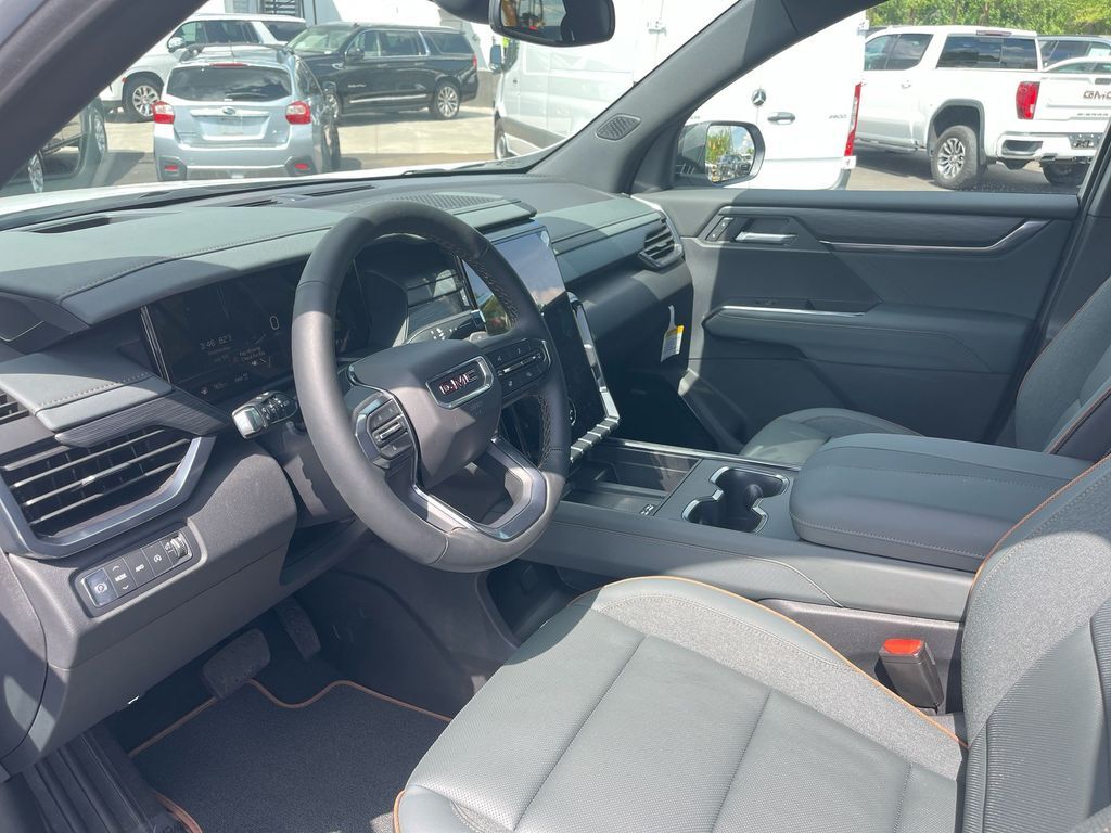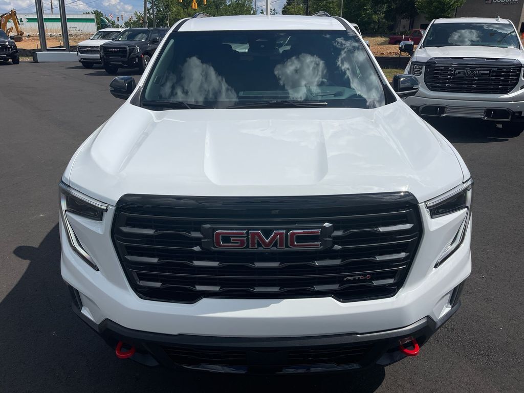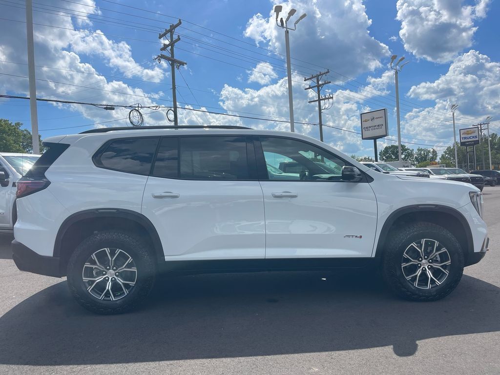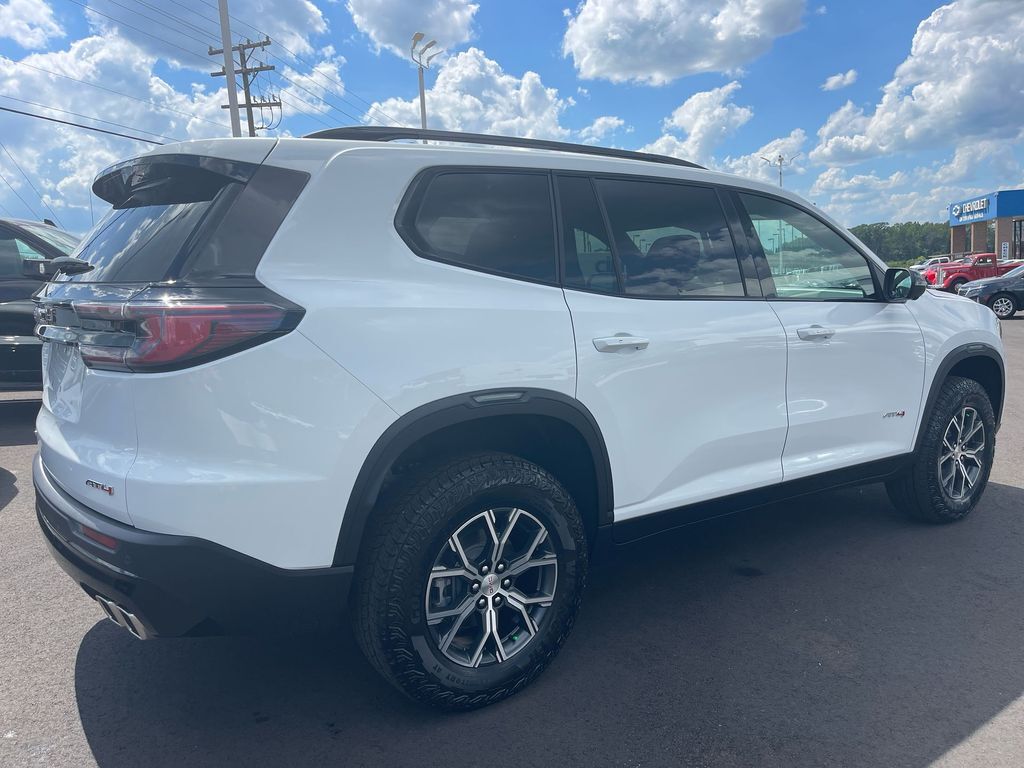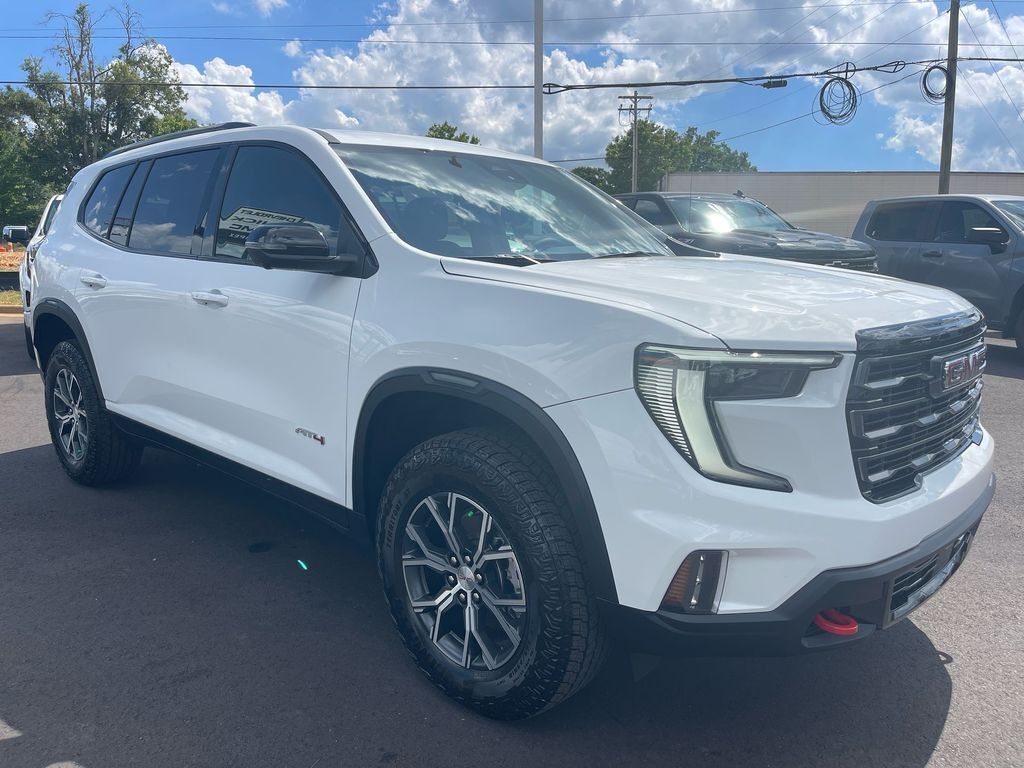 THIS VEHICLE INCLUDES THE FOLLOWING FEATURES AND OPTIONS: Luxury Package (8 Diagonal Head-Up Display, Heated & Ventilated Driver & Front Passenger Seats, Heated Rear Outboard Seating Positions, Heated Wiper Park, and Laminated Acoustic Glass), Preferred Equipment Group 4SB, Acadia AT4 AWD, 12 Speakers, 3.49 Final Drive Axle Ratio, 3rd row seats: split-bench, 4-Wheel Disc Brakes, 6-Way Power Front Passenger Seat Adjuster, 7-Passenger Seating (2-2-3 Seating Configuration), 8-Way Power Driver Seat Adjuster, ABS brakes, Air Conditioning, Alloy wheels, AM/FM radio: SiriusXM with 360L, Apple CarPlay/Android Auto, Auto High-beam Headlights, Auto-dimming Rear-View mirror, Automatic temperature control, Bodyside moldings, Bose Performance 12-Speaker System w/Sub-woofer, Brake assist, Bumpers: body-color, Cloth/CoreTec Seat Trim, Compass, Cruise Control, Delay-off headlights, Driver 4-Way Power Lumbar Seat Adjuster, Driver door bin, Driver vanity mirror, Dual front impact airbags, Dual front side impact airbags, Electronic Stability Control, Emergency communication system: OnStar and GMC connected services capable, Exterior Parking Camera Rear, Four wheel independent suspension, Front anti-roll bar, Front Bucket Seats, Front Center Armrest, Front dual zone A/C, Front fog lights, Front Passenger 4-Way Power Lumbar Seat Adjuster, Front reading lights, Fully automatic headlights, Garage door transmitter, Genuine wood console insert, Genuine wood dashboard insert, Genuine wood door panel insert, Heated door mirrors, Heated Driver & Front Passenger Seats, Heated front seats, Heated steering wheel, Illuminated entry, Low tire pressure warning, Navigation System, Not Equipped w/Heated Wiper Park, Occupant sensing airbag, Outside temperature display, Overhead airbag, Overhead console, Panic alarm, Passenger door bin, Passenger vanity mirror, Power door mirrors, Power driver seat, Power Liftgate, Power passenger seat, Power steering, Power windows, Radio data system, Radio: 15 Premium GMC Infotainment System, Rear air conditioning, Rear anti-roll bar, Rear reading lights, Rear side impact airbag, Rear window defroster, Rear window wiper, Remote keyless entry, Roof rack: rails only, Security system, SiriusXM w/360L, Speed-sensing steering, Split folding rear seat, Spoiler, Sport steering wheel, Steering wheel mounted audio controls, Tachometer, Telescoping steering wheel, Tilt steering wheel, Traction control, Trip computer, Turn signal indicator mirrors, Variably intermittent wipers, Voltmeter, and Wheels: 18 x 8 Dark Machined Aluminum.