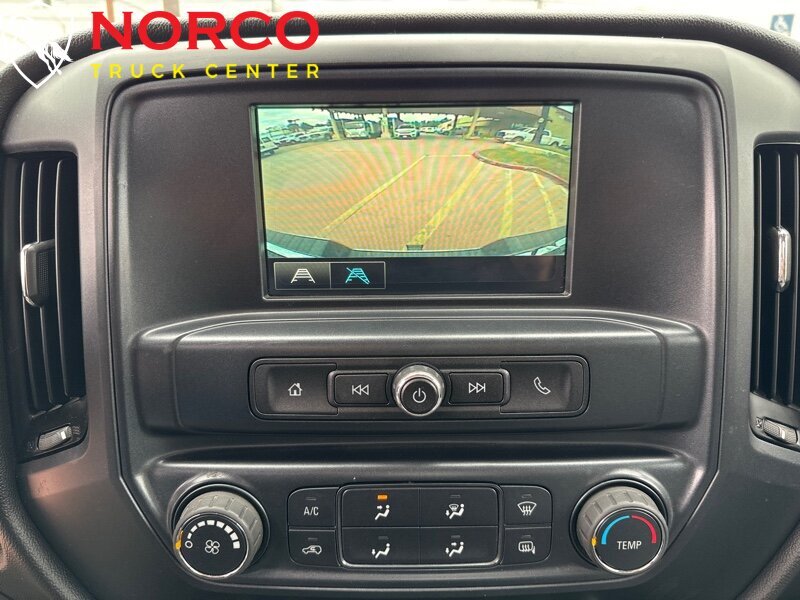 INSTALLED FEATURES: Air filtration, Front air conditioning, Front air conditioning zones: single, Airbag deactivation: passenger switch, Front airbags: dual, Antenna type: mast, Auxiliary audio input: Bluetooth / USB / iPod/iPhone / jack, Internet radio app: Pandora, Radio: AM/FM / touch screen display / voice operated, Radio data system, Speed sensitive volume control, Total speakers: 6, ABS: 4-wheel, Braking assist, Electronic brakeforce distribution, Front brake diameter: 14.0, Front brake type: ventilated disc, Front brake width: 1.57, Power brakes, Rear brake diameter: 14.0, Rear brake type: ventilated disc, Rear brake width: 1.57, Armrests: front center, Floor material: rubber/vinyl, Steering wheel trim: urethane, Assist handle: front, Capless fuel filler system, Cruise control, Cupholders: front, Overhead console: front, Power outlet(s): two 12V, Power steering, Reading lights: front, Rearview mirror: manual day/night, Steering wheel: tilt, Steering wheel mounted controls: cruise control, Storage: door pockets / sunglasses holder, Sun visors, Axle ratio: 4.10, Locking differential: rear, Alternator: 150 amps, Auxiliary oil cooler, Battery: heavy duty / maintenance-free, Battery rating: 720 CCA, Battery saver, Bumper detail: rear step, Door handle color: black, Exhaust tip color: stainless steel, Front bumper color: chrome, Grille color: chrome / chrome surround, Mirror color: black, Pickup bed light, Rear bumper color: chrome, Tailgate: removable, Window trim: black, Infotainment: IntelliLink, Infotainment screen size: 7 in., Clock, Digital odometer, External temperature display, Fuel economy display: MPG / range, Gauge: oil pressure / tachometer, Multi-function display, Trip odometer, Warnings and reminders: coolant temperature warning / lamp failure / low battery / low fuel level / low oil pressure / maintenance due / turn off headlights, Daytime running lights: LED, Headlights: HID/Xenon / auto delay off / auto on/off, Roof-mounted lights, Side mirror adjustments: manual / manual folding / manual telescoping, Towing mirrors, Camera system: rearview, Programmable safety key, Rearview monitor: in dash, Emergency locking retractors: front, Front seatbelts: 3-point, Seatbelt pretensioners: front, Seatbelt warning sensor: front, Driver seat manual adjustments: height / reclining, Front headrests: adjustable / 2, Front seat type: 40-20-40 split bench, Passenger seat manual adjustments: reclining / 4, Upholstery: vinyl, Anti-theft system: vehicle immobilizer, Power door locks: anti-lockout / auto-locking, Hill holder control, Roll stability control, Stability control, Traction control, Trailer stability control, Steering ratio: 16.1, Turns lock-to-lock: 3.6, Front shock type: twin-tube gas, Front spring type: torsion bars, Front stabilizer bar: diameter 33 mm, Front suspension classification: independent, Front suspension type: short and long arm, Rear shock type: twin-tube gas, Rear spring type: leaf, Rear suspension classification: solid live axle, Rear suspension type: multi-leaf, Hands-free phone call integration: voice operated, Wireless data link: Bluetooth, Dual rear wheels, Spare tire mount location: underbody, Spare tire size: full-size, Spare wheel type: steel, Tire type: all season, Wheels: painted steel, Auxiliary transmission fluid cooler, Pickup bed cargo management: tie-down anchors, Tow hooks: front, Tow/Haul mode, Trailer brake controller, Trailer hitch, Trailer wiring: 4-pin / 7-pin, Front wipers: variable intermittent, Solar-tinted glass