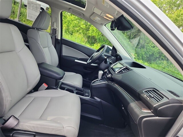 * The Honda CR-V has a modern aerodynamic look, with sweeping lines, exciting body sculpting, and a dramatic profile. It has enough attitude and ability to get you around town and then tackle the open road and the great outdoors. The CR-V comes equipped with a 2.4-Liter i-VTEC 4-Cylinder engine with 185hp and a Continuously Variable Transmission. It has a rigid unit-body structure, coupled with taut suspension tuning, which give it impressive handling characteristics. For ultimate 4-season security, the CR-V is available with Honda's Real Time All-Wheel Drive with Intelligent Control System that smoothes out initial acceleration and can transfer up to 100% of torque to the rear wheels. The CR-V is very fuel-efficient and can get up to an EPA estimated 34 MPG Highway when in two-wheel drive. Hit the green ECON button, and the vehicle makes adjustments to its systems so they can be more efficient. Then you get feedback as you drive from Eco Assist to let you know how efficient your driving is. Honda has placed bars around the speedometer, and the longer you keep them in the green, the farther you can go on a tank of gas. The 5-passenger CR-V is extremely roomy inside, with a rear seat that accommodates adults and a proper-sized cargo area. Special attention is paid to driver comfort, with supportive front seats that flank an accommodating center console punctuated by two big cup holders. A large covered center stow bin houses USB and auxiliary inputs as well as a 12-volt power point. Available lane keeping assist and adaptive cruise control add to assisted features. Finally, its large single-piece liftgate, coupled with a significantly lower lift-over height, eases loading and unloading chores. Source: The Manufacturer Summary