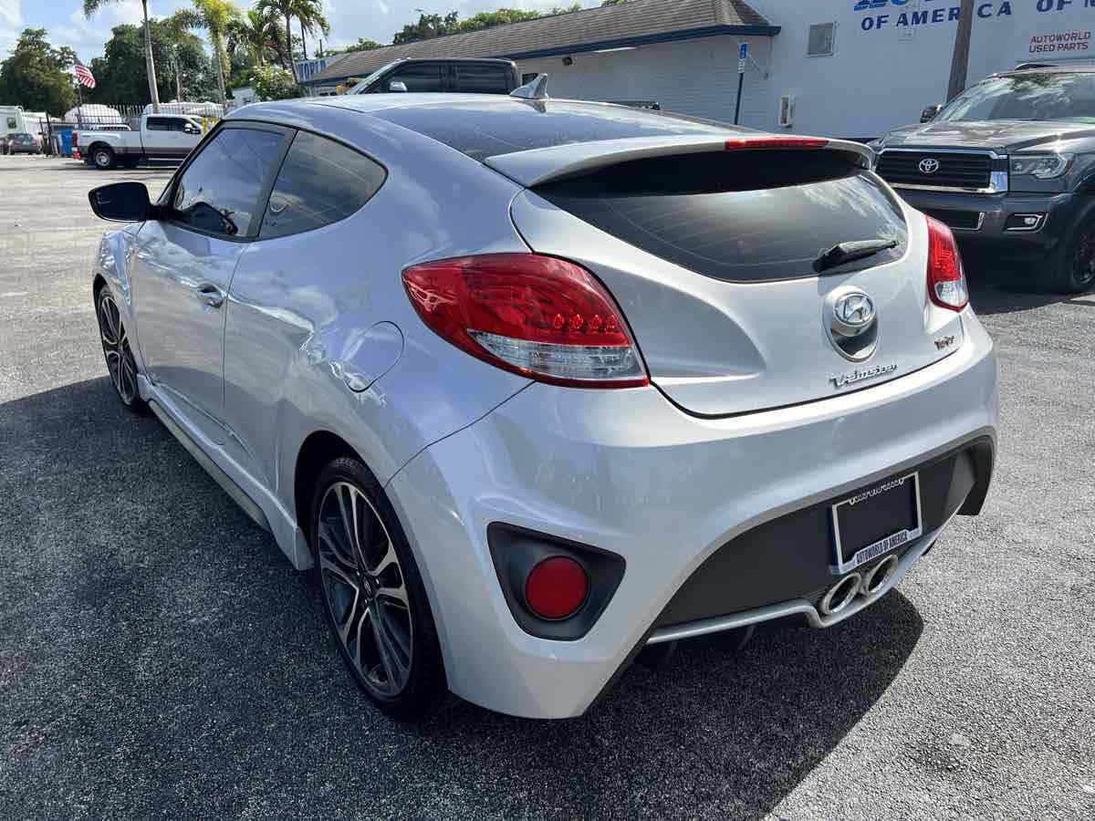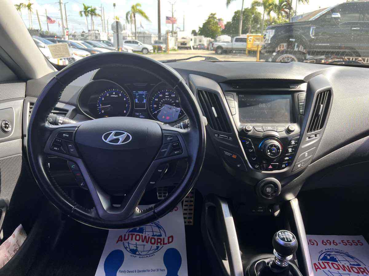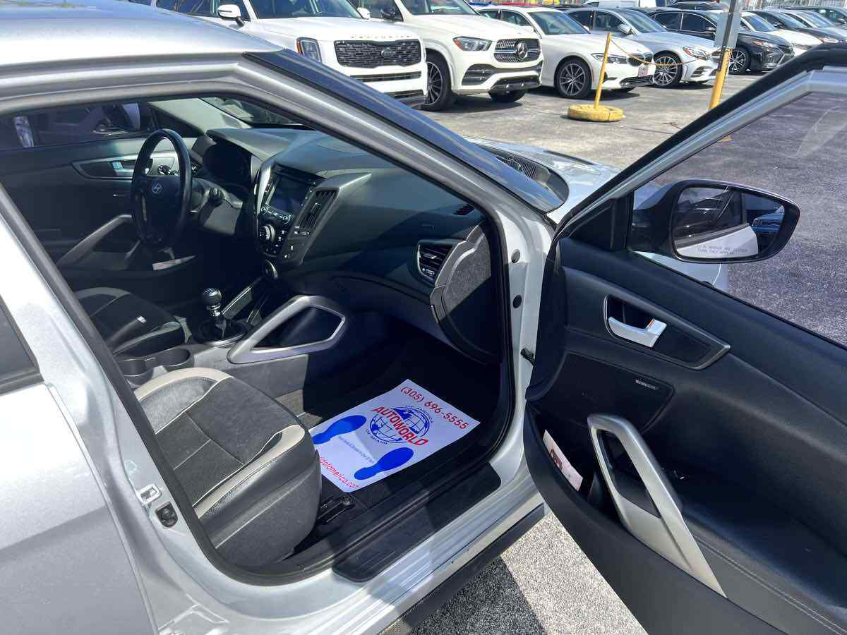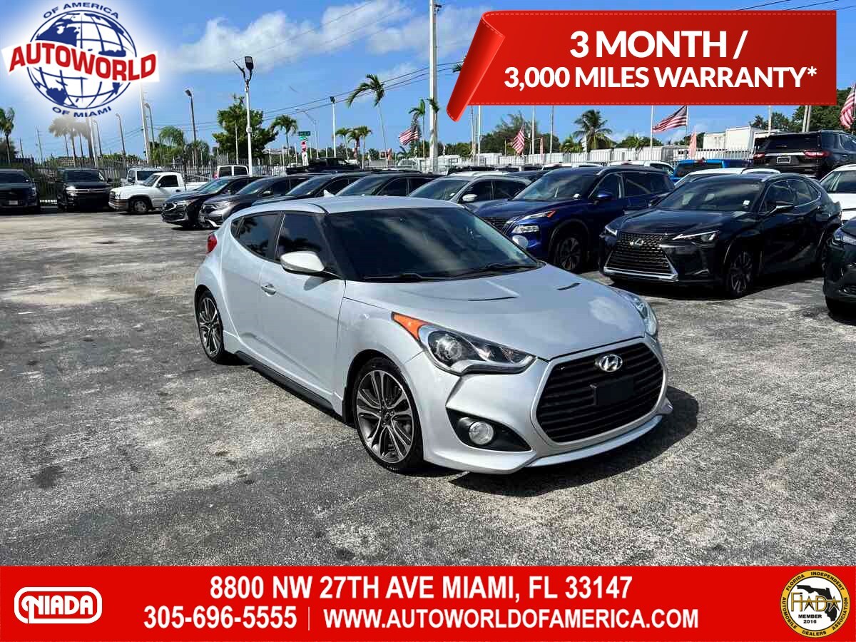 Put some stand-out style in your daily commute with our 2015 Hyundai Veloster Turbo in Ironman Silver. Powered by a TurboCharged 1.6 Liter 4 Cylinder that generates 201hp connected to a 6 Speed Manual transmission and a sport-tuned suspension. With this Front Wheel Drive team - you will enjoy your daily commute while still scoring nearly 33mpg on the highway. This Veloster offers a distinct style and personality that makes people take notice! The athletic stance of our Veloster Turbo is enhanced with unique 18-inch alloy wheels - a chrome dual center exhaust outlet and daytime running lights. Step over to the passenger side and check out the hidden third door that makes access into the backseat a breeze! The 3-door design and glass rear hatch give the Veloster Turbo a roomy interior packed with features such as keyless ignition/entry - a great stereo - and heated leather seats. Meanwhile - a 7-inch high-resolution LCD touchscreen with a rearview camera - integrated Bluetooth connectivity - as well as Hyundai's intuitive Blue Link telematics system mean you are always connected. The advanced features from Hyundai don't stop there. With six airbags - electronic stability control - and tire pressure monitoring - the Veloster will keep you and your tech-savvy friends out of harm's way. Stop blending in and show your fun-loving personality with your Veloster. Save this Page and Call for Availability. We Know You Will Enjoy Your Test Drive Towards Ownership! This vehicle has a branded title and was DMV inspected in Florida. It is in excellent condition - and everything works perfectly - we have test driven it several times and checked to make sure all the options and features work as they should. It is priced thousands below its J.D. Power retail value based on advertised trim - miles - and options. Our vehicles go through a 151-Point Inspection and this vehicle includes a 1 Month 1 -000 Miles in-house warranty*. It is ready to go for local - nationwide - or international shipping. At Autoworld you will save thousands without sacrificing quality. You can now afford a newer model year - higher trim level - and even lower miles than what you were expecting in your price range. For more than 30 years customers worldwide agree that vehicles from Autoworld of America offer the best value and quality. $$$ DRIVE THE CAR - NOT THE TITLE - SAVE THOUSANDS $$$