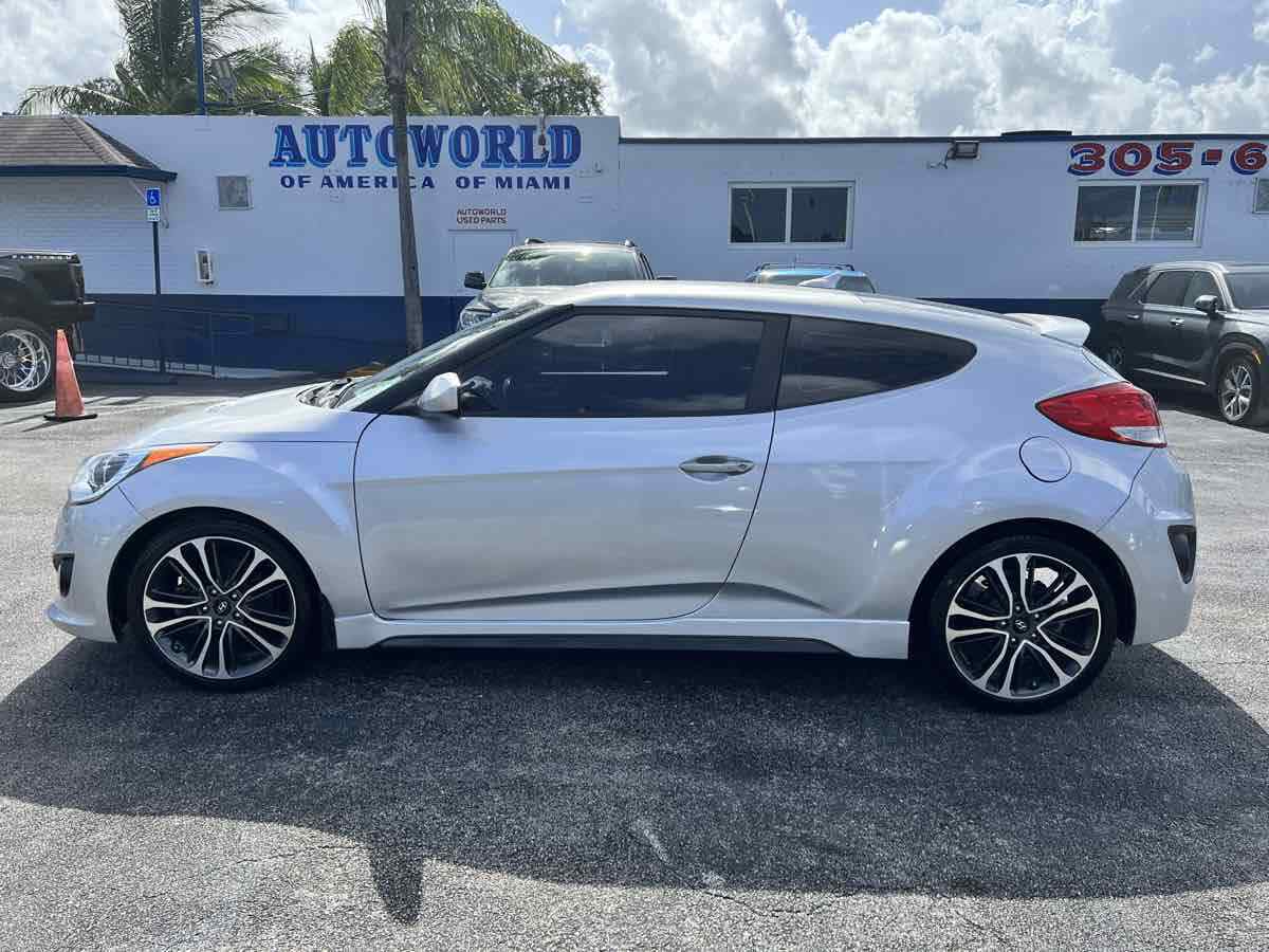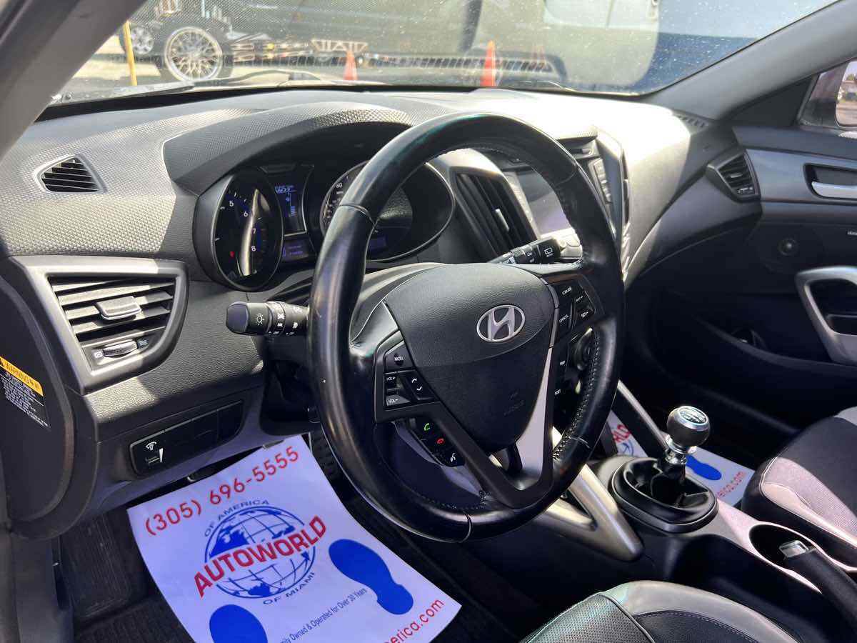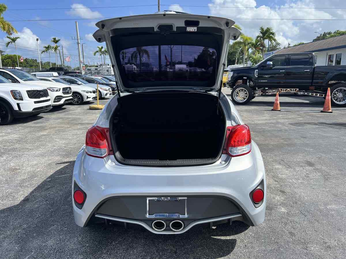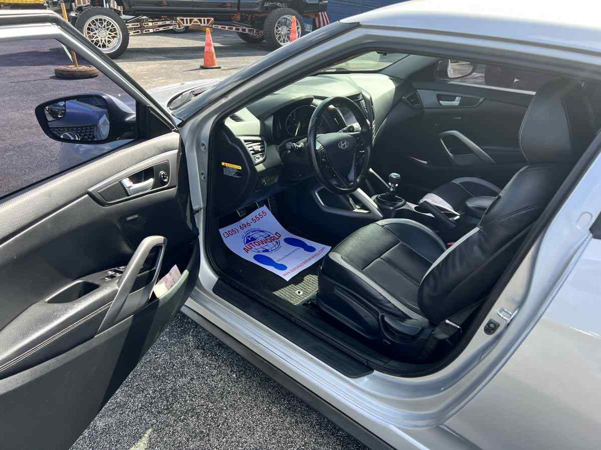 Put some stand-out style in your daily commute with our 2015 Hyundai Veloster Turbo in Ironman Silver. Powered by a TurboCharged 1.6 Liter 4 Cylinder that generates 201hp connected to a 6 Speed Manual transmission and a sport-tuned suspension. With this Front Wheel Drive team - you will enjoy your daily commute while still scoring nearly 33mpg on the highway. This Veloster offers a distinct style and personality that makes people take notice! The athletic stance of our Veloster Turbo is enhanced with unique 18-inch alloy wheels - a chrome dual center exhaust outlet and daytime running lights. Step over to the passenger side and check out the hidden third door that makes access into the backseat a breeze! The 3-door design and glass rear hatch give the Veloster Turbo a roomy interior packed with features such as keyless ignition/entry - a great stereo - and heated leather seats. Meanwhile - a 7-inch high-resolution LCD touchscreen with a rearview camera - integrated Bluetooth connectivity - as well as Hyundai's intuitive Blue Link telematics system mean you are always connected. The advanced features from Hyundai don't stop there. With six airbags - electronic stability control - and tire pressure monitoring - the Veloster will keep you and your tech-savvy friends out of harm's way. Stop blending in and show your fun-loving personality with your Veloster. Save this Page and Call for Availability. We Know You Will Enjoy Your Test Drive Towards Ownership! This vehicle has a branded title and was DMV inspected in Florida. It is in excellent condition - and everything works perfectly - we have test driven it several times and checked to make sure all the options and features work as they should. It is priced thousands below its J.D. Power retail value based on advertised trim - miles - and options. Our vehicles go through a 151-Point Inspection and this vehicle includes a 1 Month 1 -000 Miles in-house warranty*. It is ready to go for local - nationwide - or international shipping. At Autoworld you will save thousands without sacrificing quality. You can now afford a newer model year - higher trim level - and even lower miles than what you were expecting in your price range. For more than 30 years customers worldwide agree that vehicles from Autoworld of America offer the best value and quality. $$$ DRIVE THE CAR - NOT THE TITLE - SAVE THOUSANDS $$$