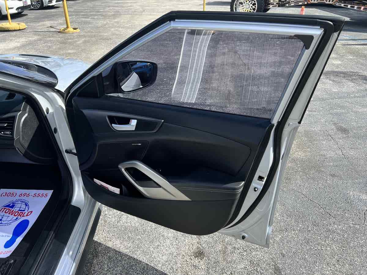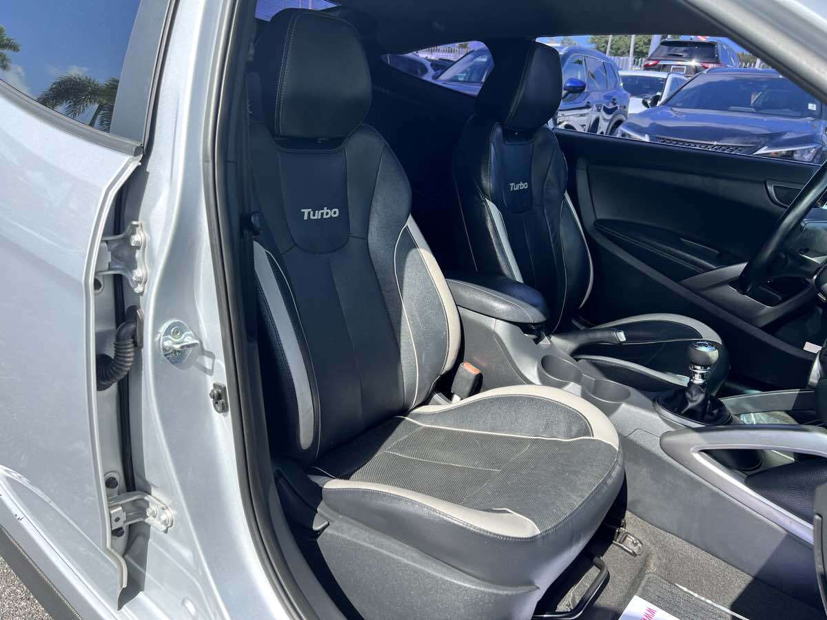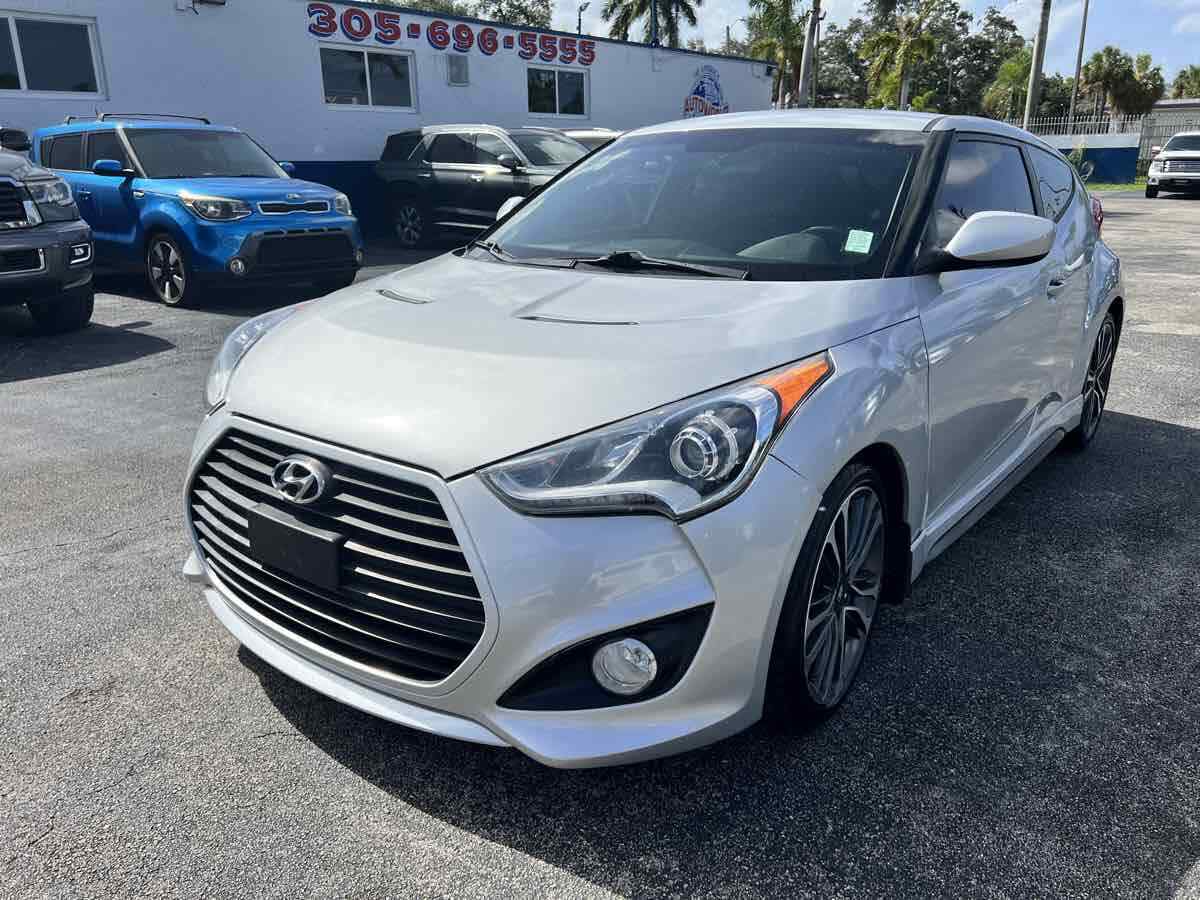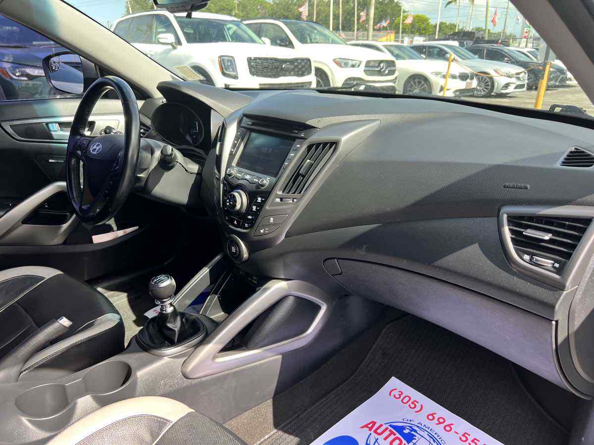 Put some stand-out style in your daily commute with our 2015 Hyundai Veloster Turbo in Ironman Silver. Powered by a TurboCharged 1.6 Liter 4 Cylinder that generates 201hp connected to a 6 Speed Manual transmission and a sport-tuned suspension. With this Front Wheel Drive team - you will enjoy your daily commute while still scoring nearly 33mpg on the highway. This Veloster offers a distinct style and personality that makes people take notice! The athletic stance of our Veloster Turbo is enhanced with unique 18-inch alloy wheels - a chrome dual center exhaust outlet and daytime running lights. Step over to the passenger side and check out the hidden third door that makes access into the backseat a breeze! The 3-door design and glass rear hatch give the Veloster Turbo a roomy interior packed with features such as keyless ignition/entry - a great stereo - and heated leather seats. Meanwhile - a 7-inch high-resolution LCD touchscreen with a rearview camera - integrated Bluetooth connectivity - as well as Hyundai's intuitive Blue Link telematics system mean you are always connected. The advanced features from Hyundai don't stop there. With six airbags - electronic stability control - and tire pressure monitoring - the Veloster will keep you and your tech-savvy friends out of harm's way. Stop blending in and show your fun-loving personality with your Veloster. Save this Page and Call for Availability. We Know You Will Enjoy Your Test Drive Towards Ownership! This vehicle has a branded title and was DMV inspected in Florida. It is in excellent condition - and everything works perfectly - we have test driven it several times and checked to make sure all the options and features work as they should. It is priced thousands below its J.D. Power retail value based on advertised trim - miles - and options. Our vehicles go through a 151-Point Inspection and this vehicle includes a 1 Month 1 -000 Miles in-house warranty*. It is ready to go for local - nationwide - or international shipping. At Autoworld you will save thousands without sacrificing quality. You can now afford a newer model year - higher trim level - and even lower miles than what you were expecting in your price range. For more than 30 years customers worldwide agree that vehicles from Autoworld of America offer the best value and quality. $$$ DRIVE THE CAR - NOT THE TITLE - SAVE THOUSANDS $$$