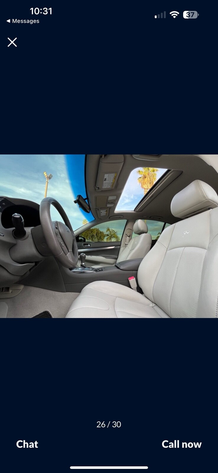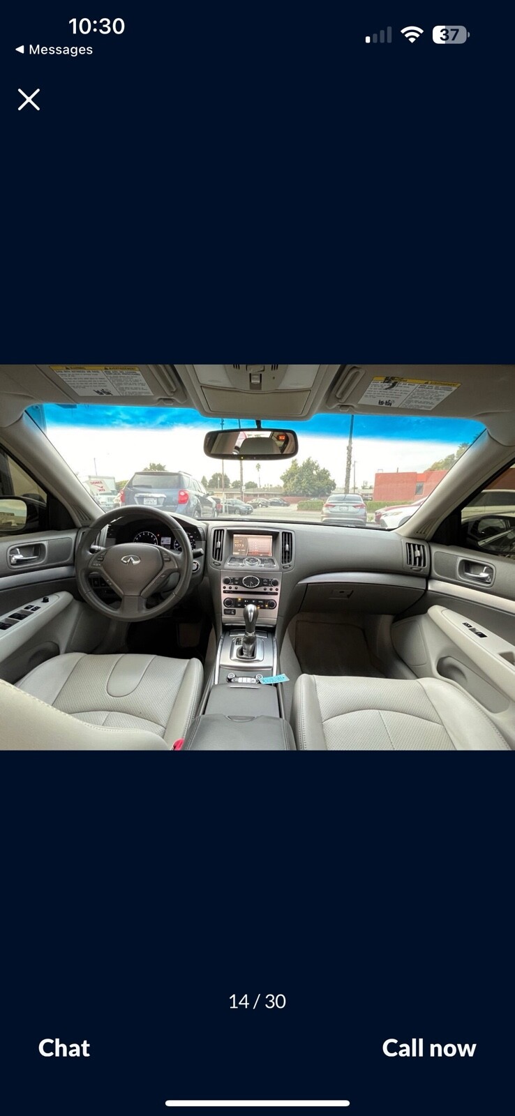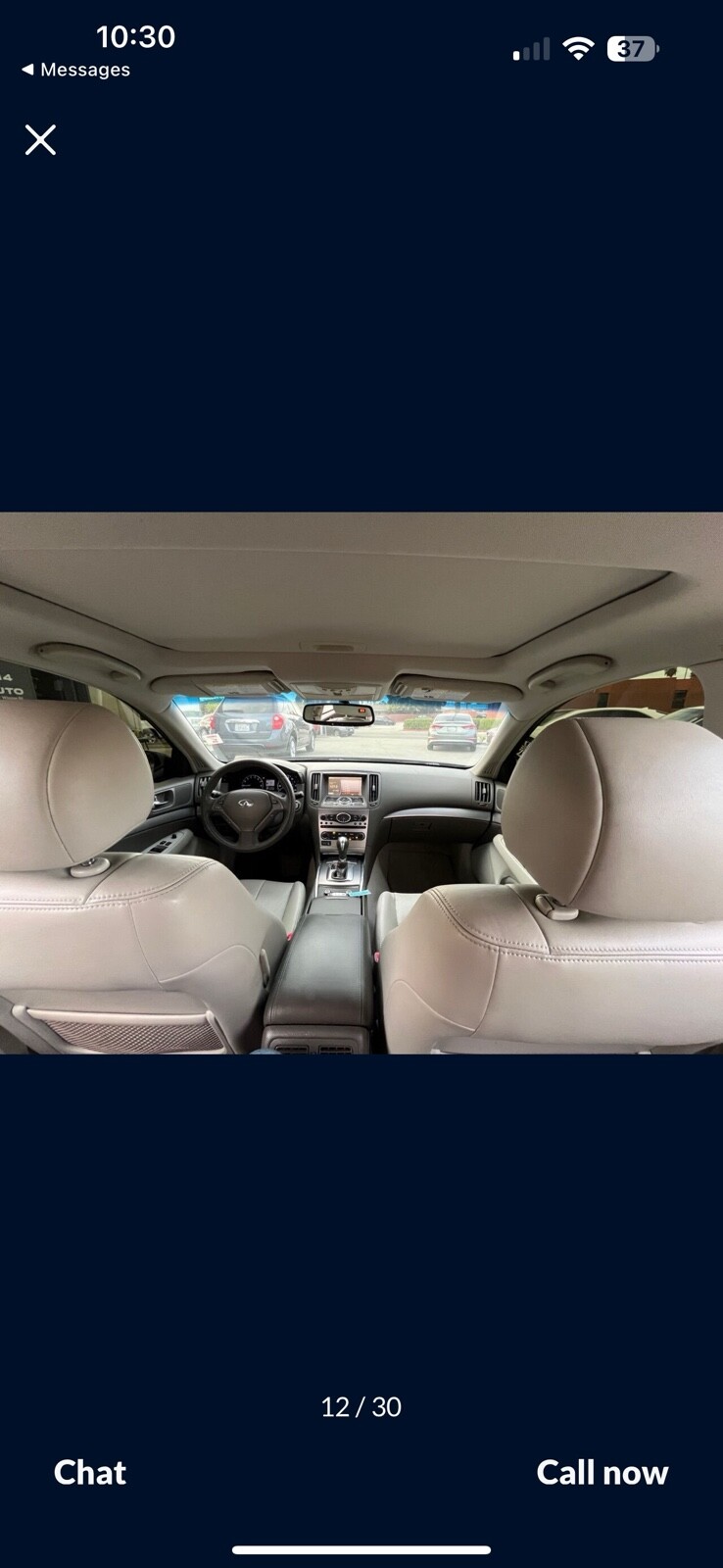 2012 Infiniti g25 super clean brand new rims alpine navigation and kicker sterio 12 inch solo Berick sub in a ported box petal comander injen dual short ram intakes programmer optional times windows tinted rear lights bad ass the only reason selling is I got a new bmw electric car