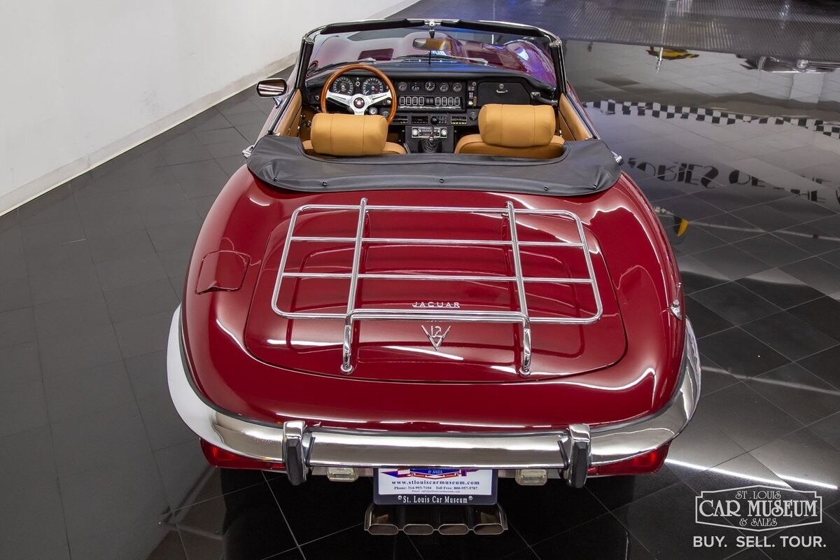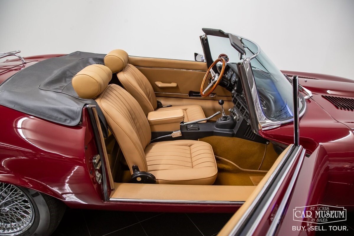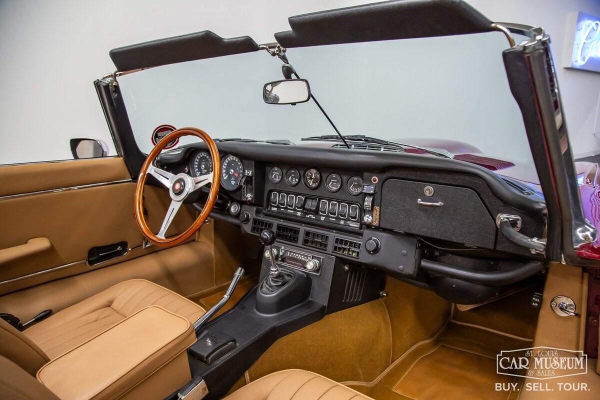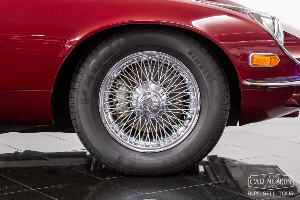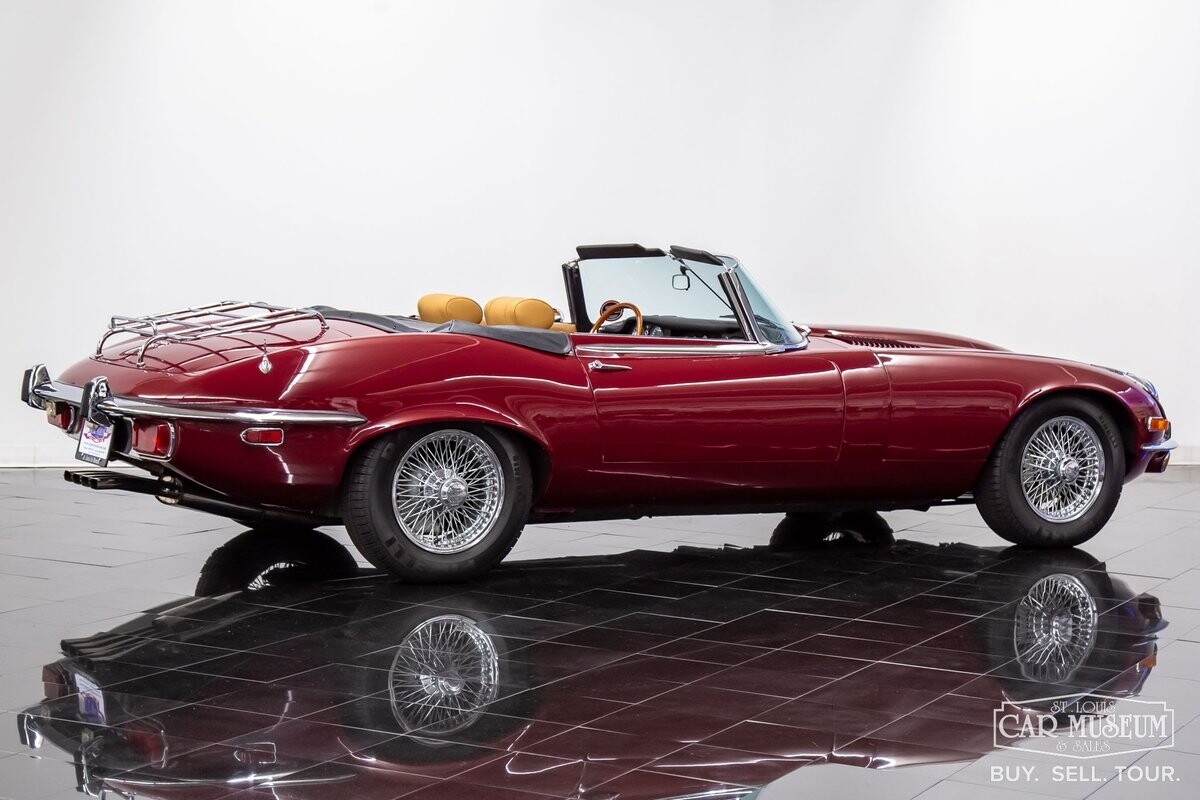 We are delighted to offer this 1974 Jaguar XKE Series III convertible finished in correct Regency Red over beautiful Cinnamon Leather interior with matching Wilton wool carpets and Black Everflex soft top! Options include numbers matching 5.3L V12 engine producing a powerful 272 horsepower, 4-speed synchromesh manual transmission, air conditioning, chrome 15" 72-spoke wire spoke wheels with Pirelli P4000 radial tires, AM/FM/Cassette radio, fan tip chrome exhaust, Nardi wood steering wheel, telescoping steering column, remote outside mirror, luggage rack, and more! Standard options included a responsive 4-wheel independent suspension with matching disc brakes at all four corners, power steering, front & rear bumper guards, and Smiths dash instrumentation with electric dash!