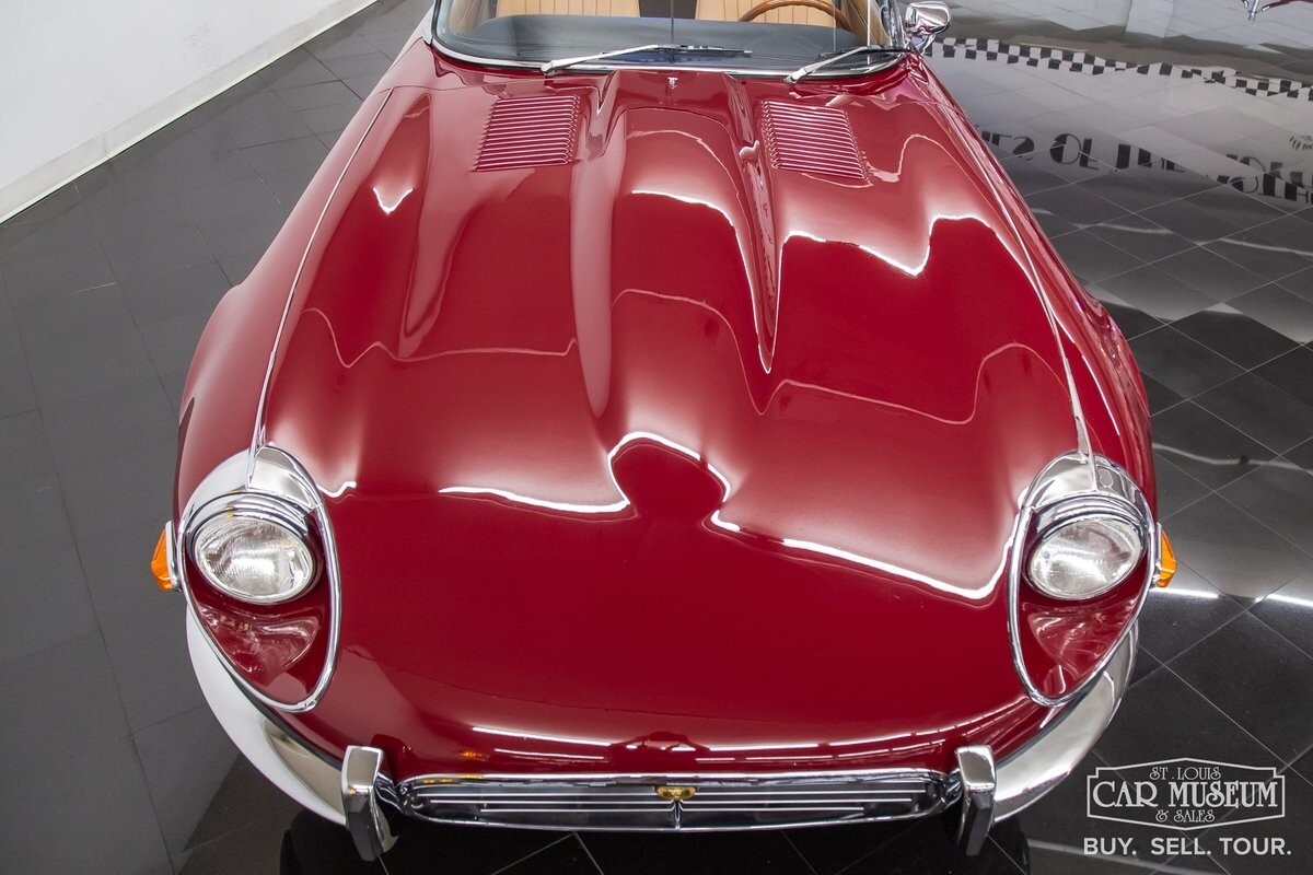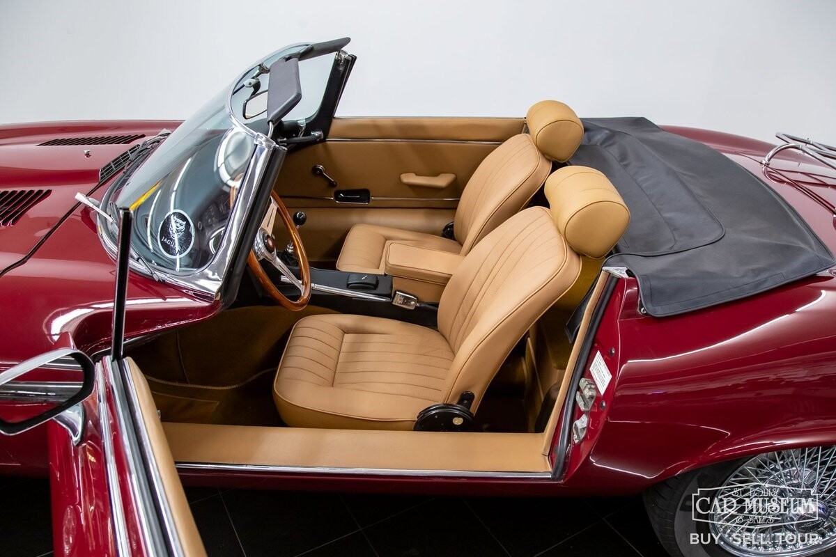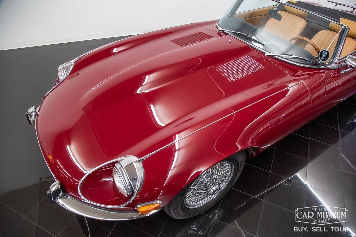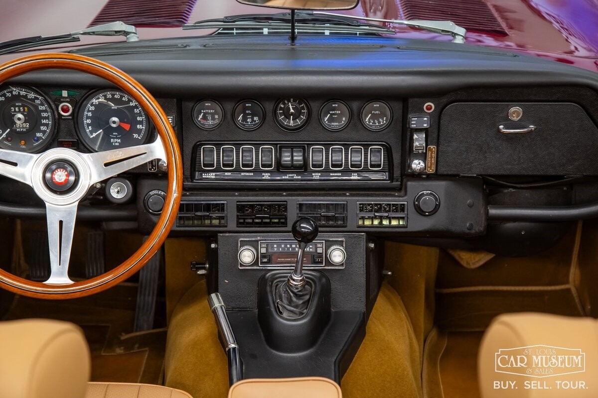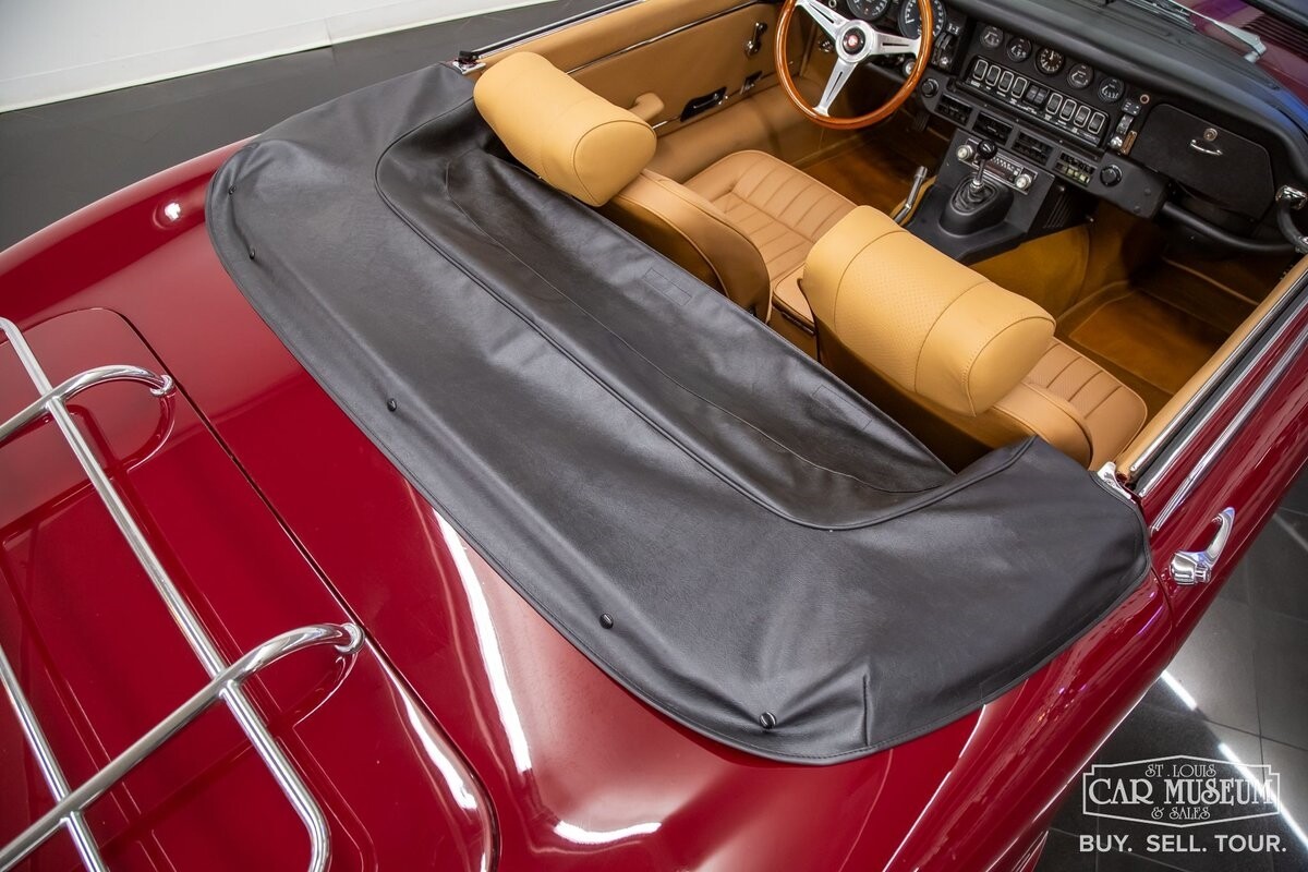 We are delighted to offer this 1974 Jaguar XKE Series III convertible finished in correct Regency Red over beautiful Cinnamon Leather interior with matching Wilton wool carpets and Black Everflex soft top! Options include numbers matching 5.3L V12 engine producing a powerful 272 horsepower, 4-speed synchromesh manual transmission, air conditioning, chrome 15" 72-spoke wire spoke wheels with Pirelli P4000 radial tires, AM/FM/Cassette radio, fan tip chrome exhaust, Nardi wood steering wheel, telescoping steering column, remote outside mirror, luggage rack, and more! Standard options included a responsive 4-wheel independent suspension with matching disc brakes at all four corners, power steering, front & rear bumper guards, and Smiths dash instrumentation with electric dash!