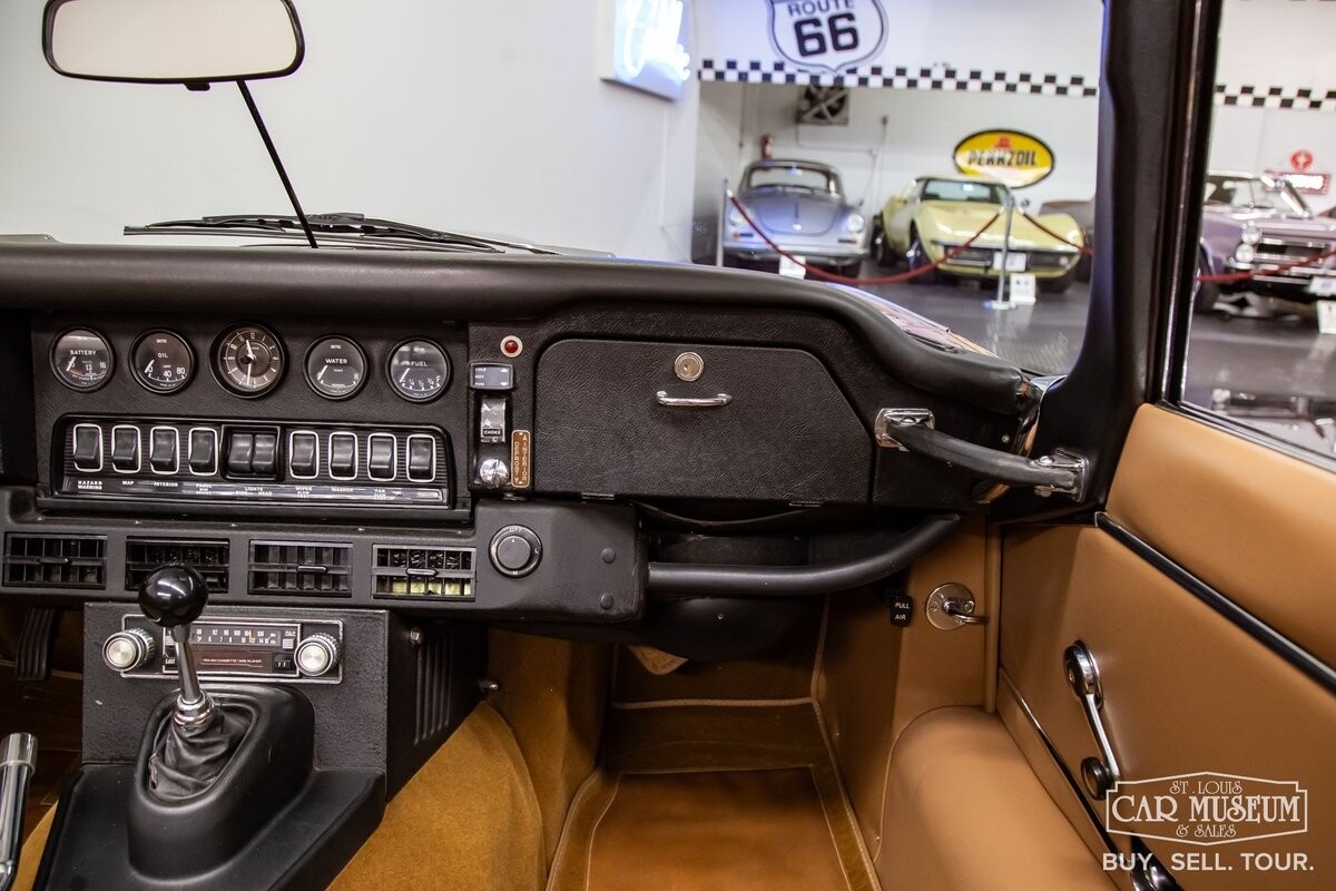 This wonderful example is showing only 19,592 miles which are believed to be original from new, as the St. Louis Car Museum was provided past sale evidence to help support a true mileage claim. Ownership history had this Jaguar right here in St. Louis, MO during the 1989 Jaguars on the Riverfront Competition when it was honored 2nd Place in the Concours Class- Series 3 E-Type Convertibles with only 13,700 miles on the odometer. It was already professionally repainted once in its original color by this time. It would later sell through a Kruse International Auction with 14,898 miles, and finally to the enormous collection of Jim Taylor and moved to upstate New York in 2010 with just over 19k miles showing on the odometer. It was exercised infrequently by Mr. Taylor, but he did opt for the large bumper overriders to be removed in favor of the earlier 1971 design to better suit the car's original factory presentation. This came at great expense with Donovan Motorcar Service in Lenox, MO performing the transformation in December 2010 when the car showed 19,398 miles. They would also install a performance aluminum radiator to replace the original.