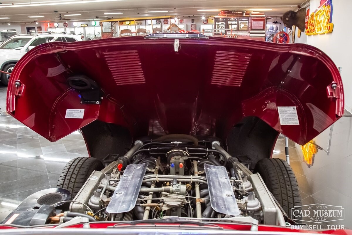 Upon arrival to our Museum, we performed a full inspection and replaced the following items: spark plugs & wires, all drive belts (a/c compressor, alternator, power steering, water pump), all new coolant & radiator hoses/clamps, braided stainless steel brake line kit, rebuilt all Zenith carburetors, oil pressure sender, fuel filter, front sway bar bushings, upper ball joints, lower control arm bushings, air intake trumpet bellows, new air filters, new engine oil & filter, thermostat/gasket, new coolant, radiator cap, among a few smaller items in the process. The air conditioning system was converted to modern R134a and it continues to perform very well! Additionally, the front seat leathers, headrests, sun visors, and underlying foams were all replaced simply due to deterioration with upholstery provided by Engel Imports.