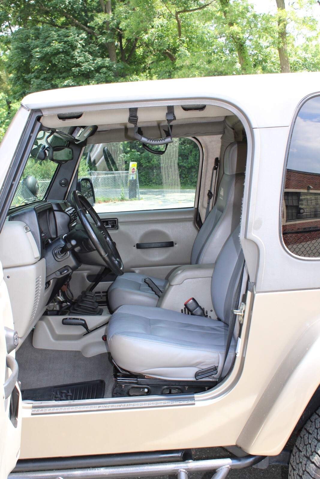 Up for sale is my 2003 Jeep TJ Wrangler Sahara 4.0 straight six, with 5 speed manual. This TJ is a low mileage gem (67,937 miles) and spent most of its life in Texas. This TJ is rust free, has clean title, and is accident free. The Jeep comes with a set of full and half doors, along with several tasteful modifications listed below. Lots of recent maintenance listed below, this TJ has a very long life ahead of it. Clean Title in hand. No low balls. Clean TJ’s are hard to find and going up in value fast, here is a link to another 03 TJ with the same spec, but double the mileage. It sold for $23,500: https://bringatrailer.com/listing/2003-jeep-wrangler-100/ Parts/Modifications: Matching Half Doors Alpine Radio with subwoofer and Lifetimes Sirius XM (installed by previous owner) Power windows in Full Doors (installed by previous owner) Custom Leather Interior with OEM Look (installed by previous owner) Mammoth Boulder 15x7 Wheels Falken Wildpeak 31-in Tires (like new installed in November) JKS Adjustable Trackbar JKS Quick Release Sway Bar End Links Old Man Emu Steering Stabilizer Aftermarket Front Bumper with Bull Bar (installed by previous owner) Aftermarket Rear Bumper with Tow Hitch (installed by previous owner) Aftermarket Rock Rails (installed by previous owner) KC Hi Lights on Bumper and Windshield 2.5in lift brand unknown (installed by previous owner) ARB Dana 30 and Dana 44 Diff Covers Roll Bar Mounted Fire Extinguisher Roll Bar Mounted Storage Bag All Season Floor Mats Black Lug Nuts K&N Air Intake (installed by previous owner) Stubby Antenna Recent Maintenance/Repairs: New Muffler at 62,500 miles Oil and Filter at 63,202 miles Clean K&N Air Filter at 63,202 miles Spark Plugs at 63,610 miles Transmission Fluid at 63,789 miles Replace Tires at 63,809 miles Steering Tie Rod End at 64,352 miles Oil and Filter Change at 66,126 miles Front and Rear Diff Fluid change at 67,212 miles New Starter at 67,386 milesVehicle Details
