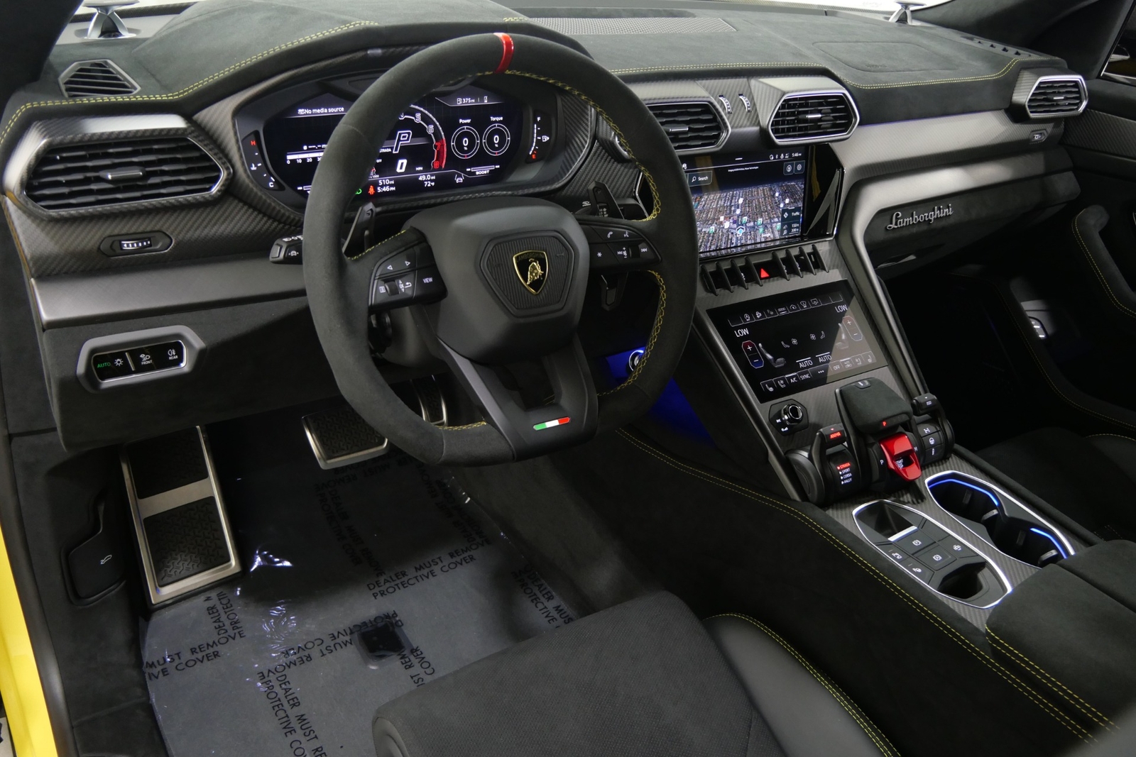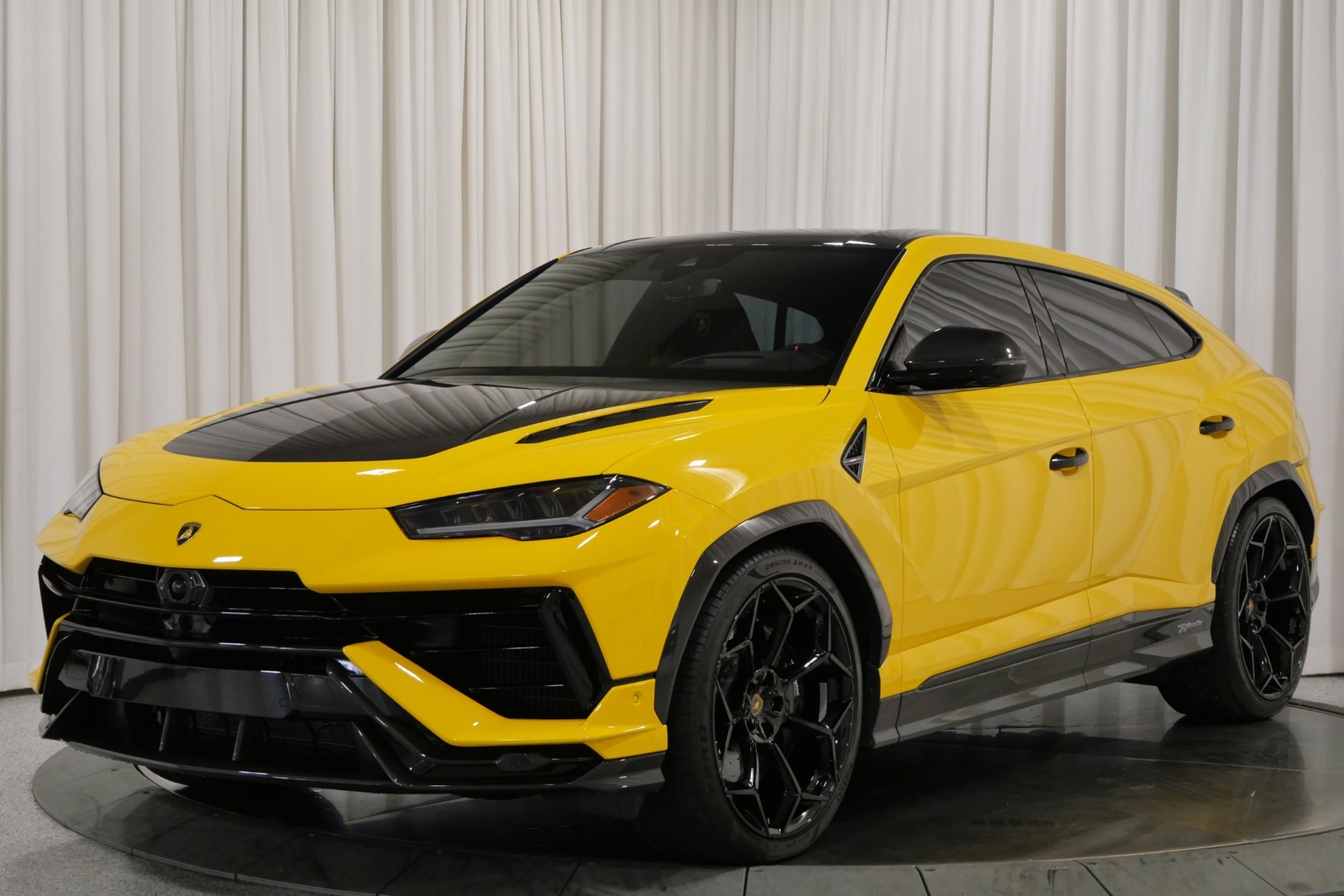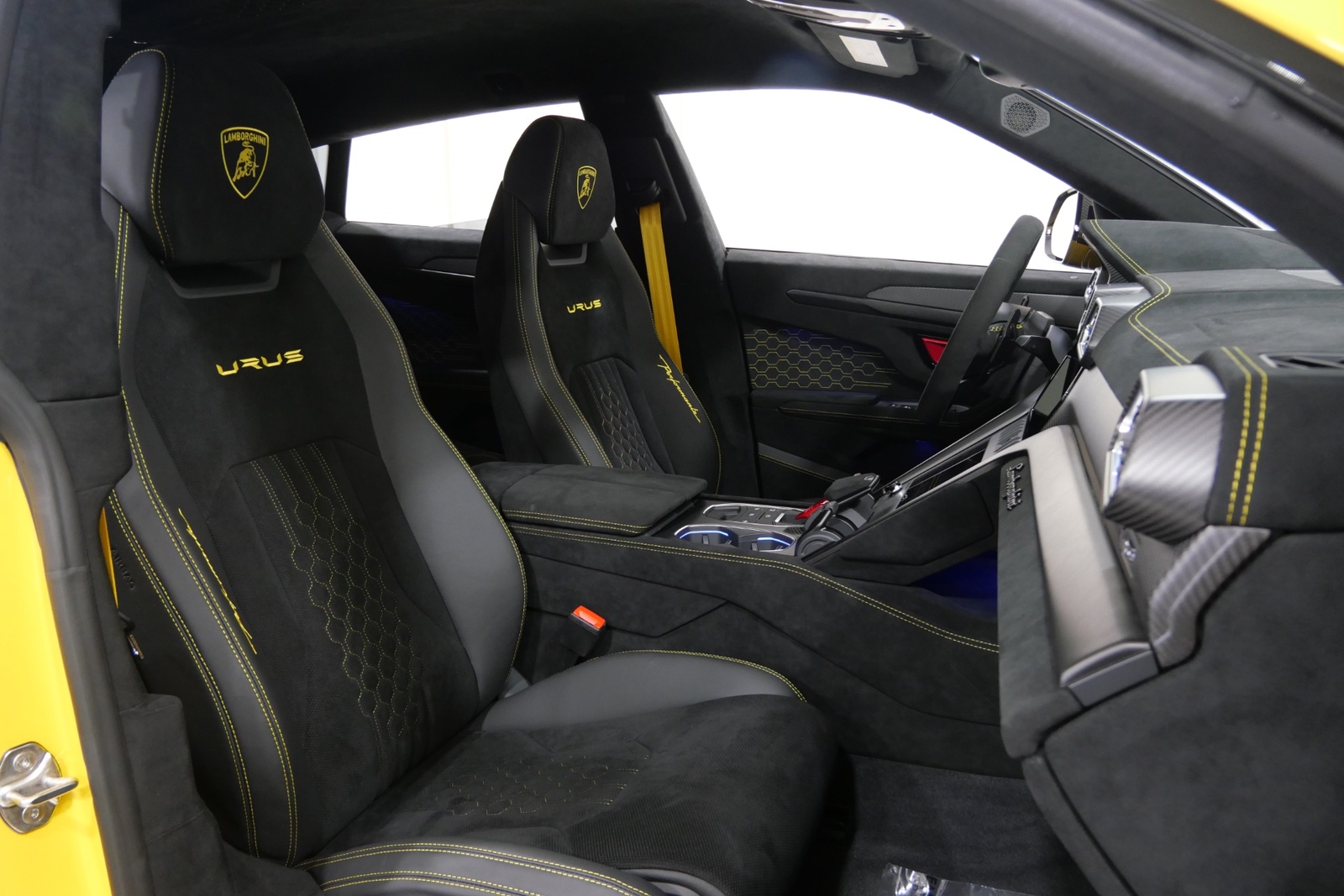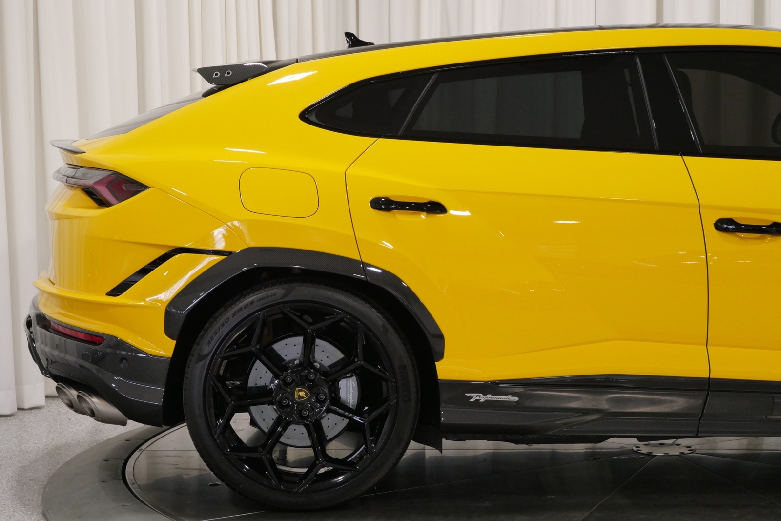 We have just added to our extensive exotic car inventory a beautiful 2023 Lamborghini Urus Performante in Giallo Auge over Nero Cosmus interior and only 510 original miles. This Urus is loaded with: 4.0 liter twin turbo V8 with 657 horsepower, 8 speed automatic, 23 inch Pelope wheels in gloss black, black brake calipers, full exterior carbon fiber package, carbon fiber bonnet, visible carbon fiber hood, rear Lamborghini logo in black, dark tint acoustic privacy glass, ADAS package (adaptive cruise control, active lane keep assist, braking assistance, rear cross traffic alert, more), big interior carbon fiber package, Giallo contrasting stitching, Giallo Taurus seat belts, dark package on leather, interior door handles in red, heated and ventilated full electric front seats, ambient light package, sport steering wheel in Alcantara, Bang and Olufsen premium 3D audio, night vision, kick plates in matte carbon, Lamborghini emblems embroidered in headrests, sport suspension with track and rally modes, satellite radio, parking assistance package, extended Performante trim, 21 inch spare tire, floor mats with leather edging, all weather mats, car cover, battery charger and much more. The original MSRP was $329,913 with nearly $64,000 in options.
