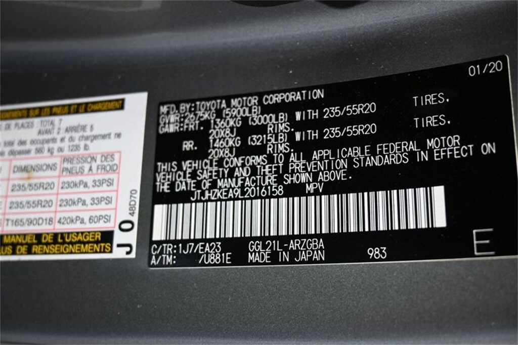 White 2020 Lexus RX 350L FWD 8-Speed Automatic 3.5L V6 DOHC 24V 19/26 City/Highway MPG