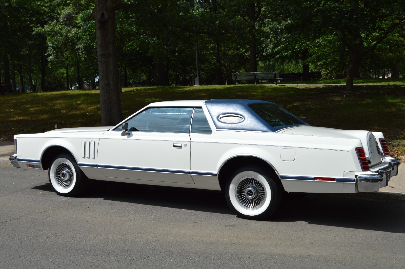 1979 Lincoln Mark V- This car is a natural beauty with approximately 15,000 original miles at $26,500 this car speaks for itself. So read on if this is your type of ride. I purchased this car from the original owner, making me only the second owner. This Mark V is 95% original, never driven in snowy weather and always garaged. This Lincoln is well equipped as the following description will show. This car features: The original factory white paint which is in very good condition as is the brand new dark blue Landau Roof with Opera Windows. The dark blue body moldings and new roof also match the beautiful original dark blue leather seats. The dashboard has no cracks, blemishes or discoloring. The door panels look like new as well as the headliner and the matching blue carpet, making the interior overall very, very good.The power seats, power windows, power door locks, power antenna, cruise control and tilt steering wheel all work as they did when the car left the showroom. The only issue is with the original quartz clock not working properly. The factory a/c is working very well blowing iced cold air. All other dash gauges and new LED dash lights are working properly. What I have added is a new am/fm touch screen radio with all the modern-day amenities such as: Back up camera and Apple Car Play/Android Auto.This beauty rides on two-year-old wide white walled tires, which are mounted on the original factory turbine style rims secured by McGard wheel locks. There are also brand new shock absorbers and brand new coil springs all around. New rear brake pads and brand-new rear calipers have been installed recently. In the trunk is the full-size spare tire and the original factory bumper jack. All wheel well trim is in very nice condition. Both headlight doors are vacuum operated and fully functional with no issues. New HID sealed beam headlights have been added. Now about the mechanics of this beautiful rolling work of art. The original 6.6 Liter V-8 engine has plenty of power to move this big body Lincoln. The original 3-speed select shift automatic transmission shifts through the gears seamlessly. Both engine and transmission have no issues. This Mark V idles and runs smoothly. Included will also be a new original owner’s Manual. I will also be including a full tank of 91 octane premium gas. (The manufacturer recommends to use 91 octane gas minimum for best results), so you can cruise this Lincoln around town and show it off immediately. **Shipping and/or pickup will be the responsibility of the buyer****Vehicle is being sold as is, and is available for inspection**I do encourage any questions, so please call Charlie (home) at 1-(718-894-8702).Thank you for your interest.