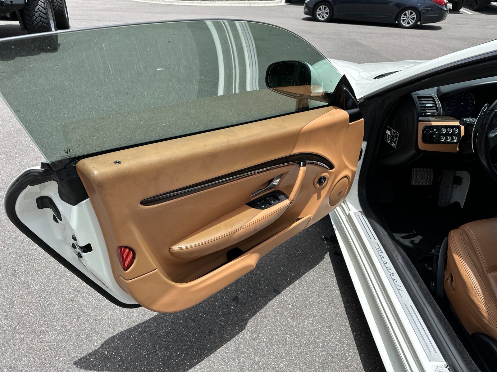 GranTurismo Sport, 2D Convertible, 4.7L V8, 6-Speed Automatic with Overdrive, RWD, Bianco Fuji Pearlescent, Cuoio w/Poltrona Frau Leather Seat Trim, 12 Speakers, 4-Wheel Disc Brakes, ABS brakes, Adaptive suspension, Air Conditioning, Alloy wheels, AM/FM radio, Auto tilt-away steering wheel, Auto-dimming door mirrors, Auto-dimming Rear-View mirror, Auto-leveling suspension, Automatic temperature control, Brake assist, Bumpers: body-color, CD player, Compass, Convertible roof lining, Driver door bin, Driver vanity mirror, Dual front impact airbags, Dual front side impact airbags, Electronic Stability Control, Four wheel independent suspension, Front anti-roll bar, Front Bucket Seats, Front Center Armrest, Front dual zone A/C, Front fog lights, Front reading lights, Fully automatic headlights, Garage door transmitter, Genuine wood dashboard insert, Genuine wood door panel insert, Glass rear window, Headlight cleaning, Heated door mirrors, Heated front seats, Heated Sport Bucket Seats, High intensity discharge headlights: Bi-Xenon, Illuminated entry, Integrated roll-over protection, Leather Shift Knob, Leather steering wheel, Low tire pressure warning, Memory seat, Navigation System, Occupant sensing airbag, Outside temperature display, Overhead console, Passenger door bin, Passenger vanity mirror, Poltrona Frau Leather Seat Trim, Power convertible roof, Power door mirrors, Power driver seat, Power passenger seat, Power steering, Power windows, Radio data system, Radio: Maserati Multimedia System w/Navigation, Rain sensing wipers, Rear anti-roll bar, Rear reading lights, Rear seat center armrest, Rear window defroster, Remote keyless entry, Security system, Speed control, Speed-sensing steering, Sport steering wheel, Steering wheel memory, Steering wheel mounted audio controls, Tachometer, Telescoping steering wheel, Tilt steering wheel, Traction control, Trip computer, Variably intermittent wipers, Wheels: 20" Astro Design Silver Painted Alloy, GranTurismo Sport, 2D Convertible, 4.7L V8, 6-Speed Automatic with Overdrive, RWD, Bianco Fuji Pearlescent, Cuoio w/Poltrona Frau Leather Seat Trim, 12 Speakers, 4-Wheel Disc Brakes, ABS brakes, Adaptive suspension, Air Conditioning, Alloy wheels, AM/FM radio, Auto tilt-away steering wheel, Auto-dimming door mirrors, Auto-dimming Rear-View mirror, Auto-leveling suspension, Automatic temperature control, Brake assist, Bumpers: body-color, CD player, Compass, Convertible roof lining, Driver door bin, Driver vanity mirror, Dual front impact airbags, Dual front side impact airbags, Electronic Stability Control, Four wheel independent suspension, Front anti-roll bar, Front Bucket Seats, Front Center Armrest, Front dual zone A/C, Front fog lights, Front reading lights, Fully automatic headlights, Garage door transmitter, Genuine wood dashboard insert, Genuine wood door panel insert, Glass rear window, Headlight cleaning, Heated door mirrors, Heated front seats, Heated Sport Bucket Seats, High intensity discharge headlights: Bi-Xenon, Illuminated entry, Integrated roll-over protection, Leather Shift Knob, Leather steering wheel, Low tire pressure warning, Memory seat, Navigation System, Occupant sensing airbag, Outside temperature display, Overhead console, Passenger door bin, Passenger vanity mirror, Poltrona Frau Leather Seat Trim, Power convertible roof, Power door mirrors, Power driver seat, Power passenger seat, Power steering, Power windows, Radio data system, Radio: Maserati Multimedia System w/Navigation, Rain sensing wipers, Rear anti-roll bar, Rear reading lights, Rear seat center armrest, Rear window defroster, Remote keyless entry, Security system, Speed control, Speed-sensing steering, Sport steering wheel, Steering wheel memory, Steering wheel mounted audio controls, Tachometer, Telescoping steering wheel, Tilt steering wheel, Traction control, Trip computer, Variably intermittent wipers, Wheels: 20" Astro Design Silver Painted Alloy. 2015 Maserati GranTurismo Sport Bianco Fuji