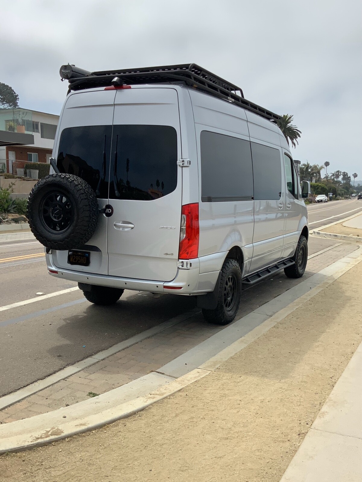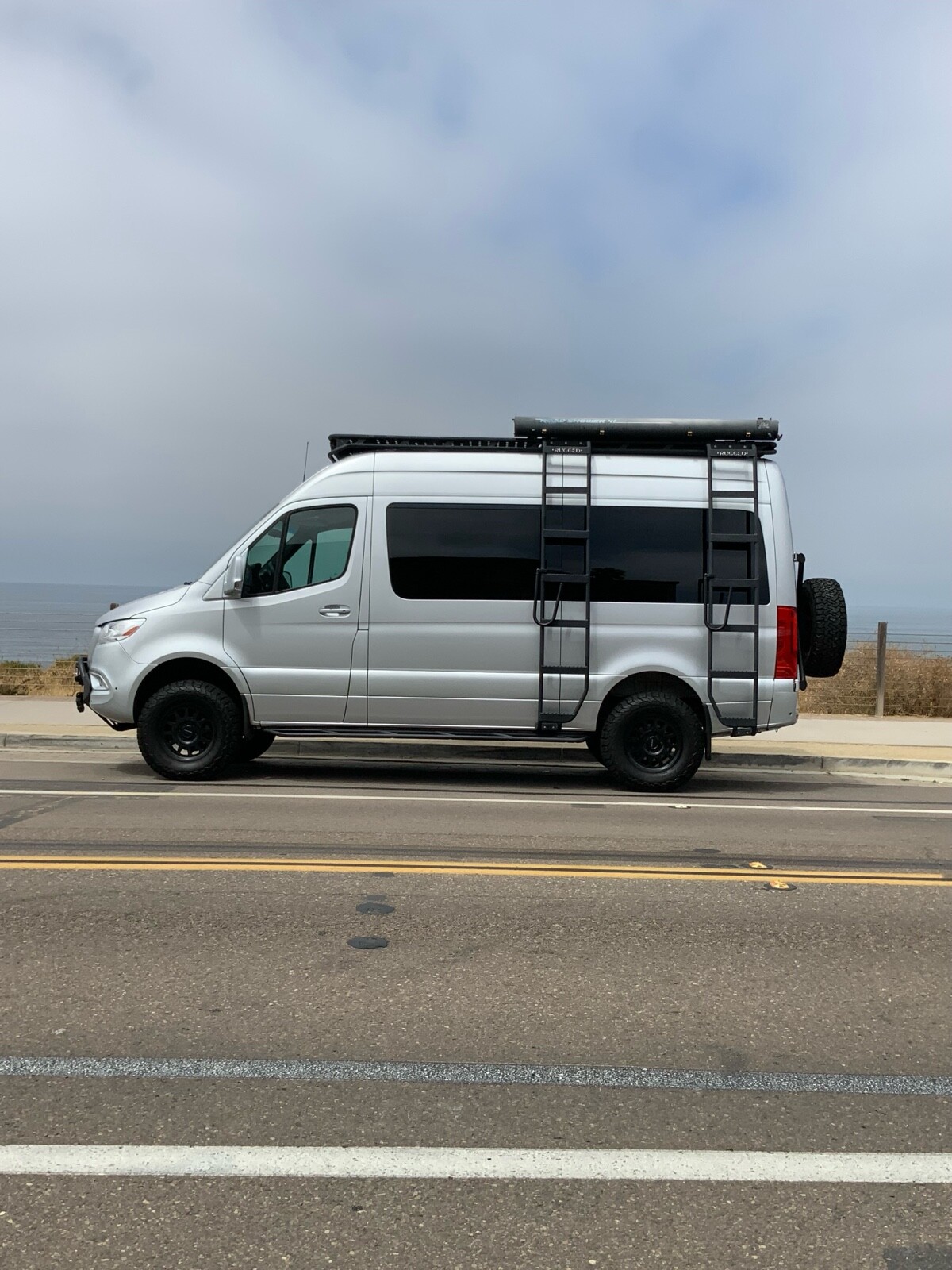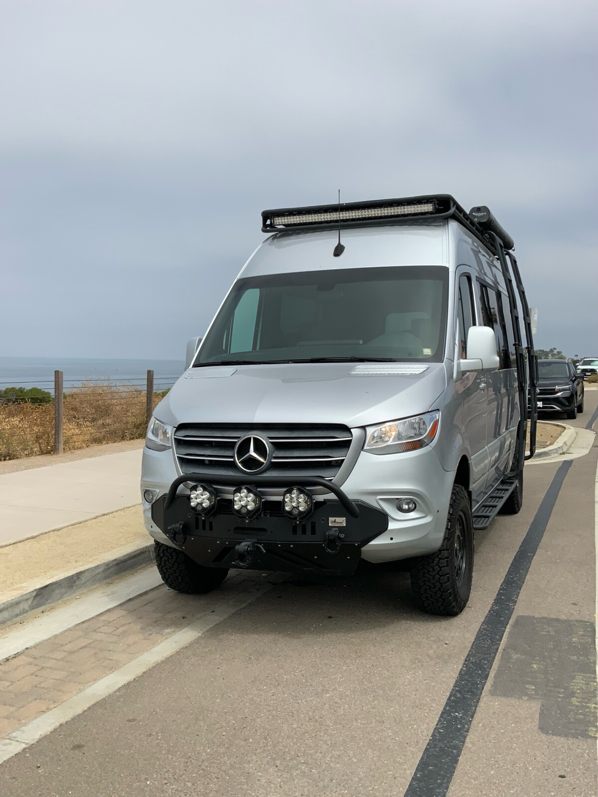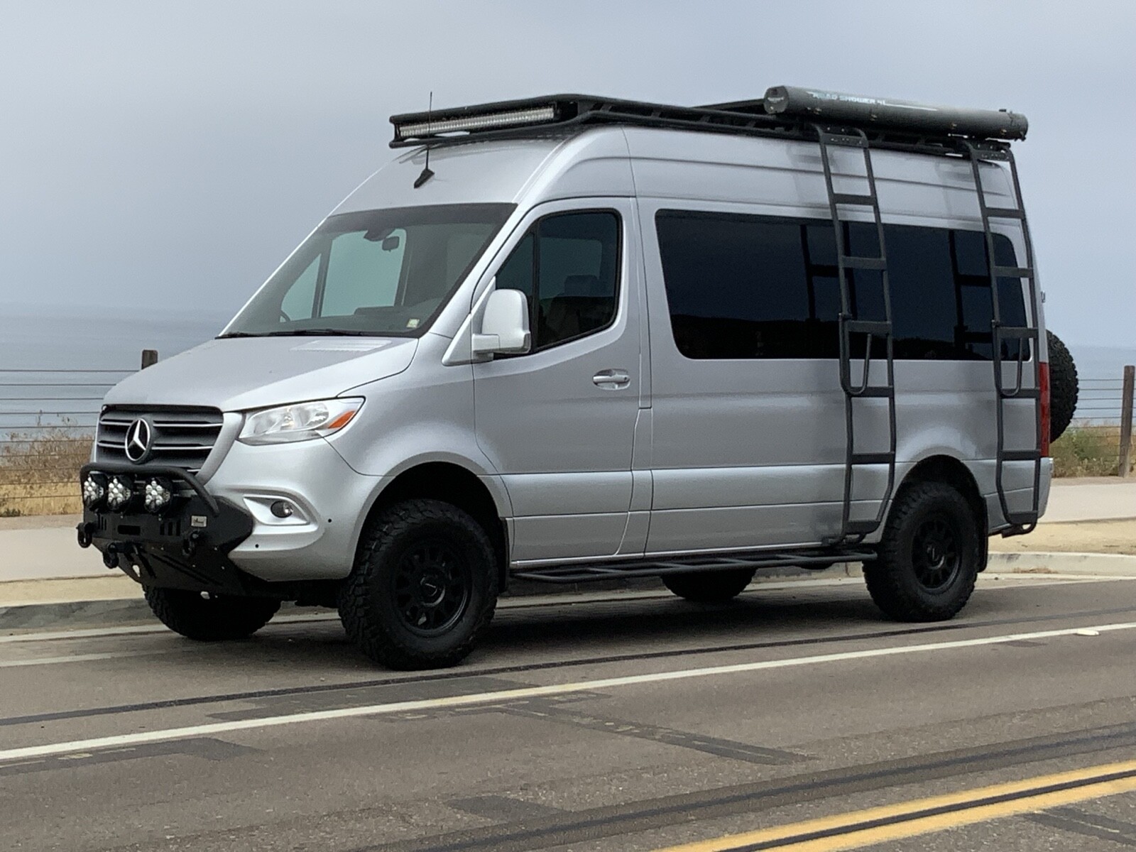 This 2019 Mercedes Benz Sprinter van is sure to impress. Customized for luxury on the interior and beach / snow sports on the exterior. Bought brand on the 4WD Diesel passenger platform equipped with the largest air conditioner available for long drives through all conditions. The van comfortably seats 9 people with 6 captains chairs and a motorized bench which moves it front and backwards and lays down into a bed. It also has a TV, Apple TV, DVD player and auxiliary/power outlets. The entertainment system is also equipped with headphones to allow passengers to watch a movie or TV while the driver listens to the sound system. The exterior was fully customized with the largest off-road tires that fit, front bumper with driving lights, running boards, surfboard racks, roof rack (to accomadate full cargo and the air conditioners, road shower and rear mounted spare tire. It’s the perfect van for cross country drives, ski trips and days at the beach. Very low mileage of 21k and impeccably maintained.Seller's Notes