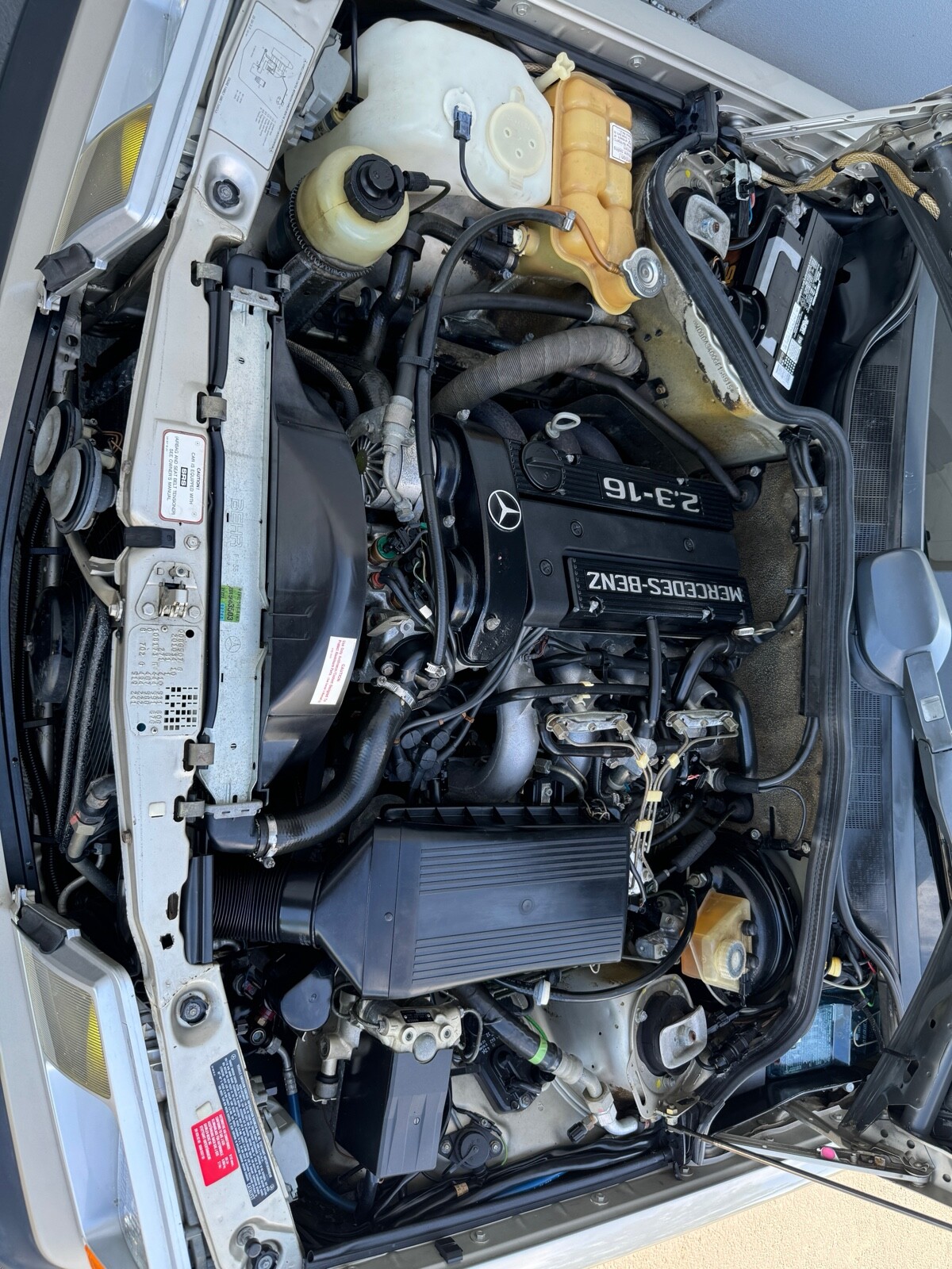 This 1986 Mercedes-Benz 190E 2.3-16 remained registered with its original owner until 2024, and it now shows 24k miles. The car is powered by a 2.3-liter inline-four paired with a dogleg five-speed manual transmission and is finished in Smoke Silver Metallic over black leather upholstery. Equipment includes a limited-slip differential, a self-leveling suspension, 15? Gullideckel wheels, an electric sunroof, power-adjustable front seats, air conditioning, and a cassette stereo. Work completed in 2023 included replacing the front and rear brake pads and rotors and the clutch cylinders. Acquired the selling dealer in 2024, this W201 is offered in Oregon with manufacturer’s literature, service records, a clean Carfax report,