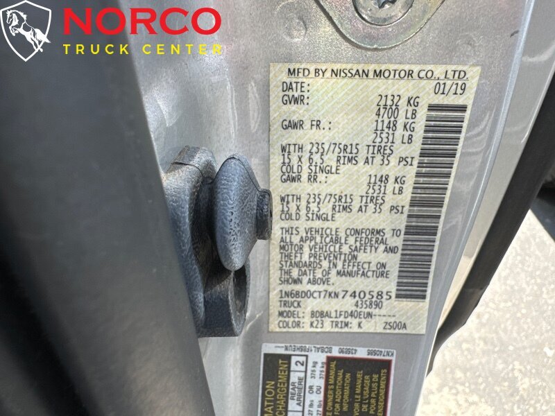 YOU ARE LOOKING AT A 2019 NISSAN FRONTIER WITH A 2 DOOR CAB; KING CAB BODY. THIS VEHICLE HAS AN TRANSMISSION, L4, 2.5L ENGINE WITH 20823 MILES. THE DRIVETRAIN IS: RWD. PLEASE CALL NORCO TRUCK CENTER INC FOR MORE INFORMATION AT 951-643-0477 OR COME SEE US AT ~ 2075 HAMNER AVE. NORCO, CA. 92860 ~