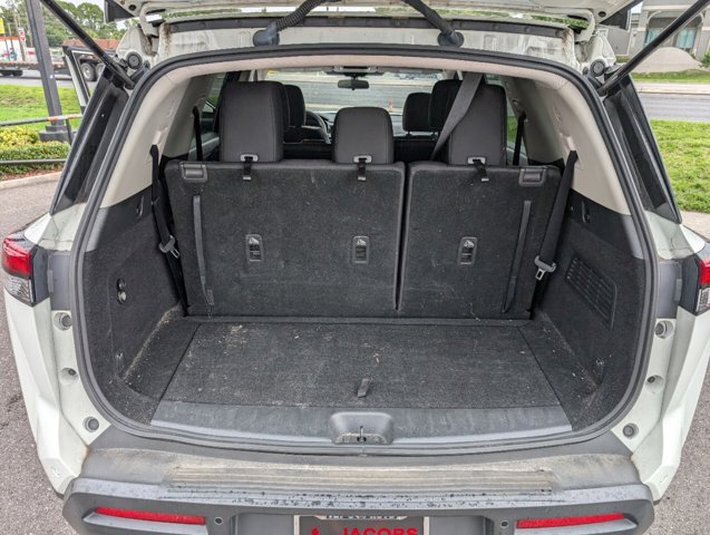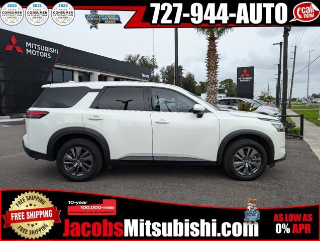 Pathfinder S, 4D Sport Utility, V6, 9-Speed Automatic, FWD, Glacier White, Charcoal Cloth, 18 Painted Alloy Wheels, 3rd row seats: bench, 4-Wheel Disc Brakes, 6 Speakers, ABS brakes, Air Conditioning, Alloy wheels, AM/FM radio: SiriusXM, Auto High-beam Headlights, Automatic temperature control, Axle Ratio: TBD, Bench Seat Carpeted Floor Mats (Set of 4), Blind Spot Warning, Brake assist, Bumpers: body-color, Cloth Seating Surfaces, Delay-off headlights, Driver door bin, Driver vanity mirror, Dual front impact airbags, Dual front side impact airbags, Electronic Stability Control, Four wheel independent suspension, Front anti-roll bar, Front Bucket Seats, Front Center Armrest, Front dual zone A/C, Front reading lights, Fully automatic headlights, Illuminated entry, Knee airbag, Low tire pressure warning, NissanConnect featuring Apple CarPlay and Android Auto, Occupant sensing airbag, Outside temperature display, Overhead airbag, Overhead console, Panic alarm, Passenger door bin, Passenger vanity mirror, Power door mirrors, Power steering, Power windows, Radio data system, Radio: AM/FM Audio System w/NissanConnect, Rear air conditioning, Rear anti-roll bar, Rear Parking Sensors, Rear reading lights, Rear seat center armrest, Rear side impact airbag, Rear window defroster, Rear window wiper, Reclining 3rd row seat, Remote keyless entry, Security system, Speed control, Speed-sensing steering, Split folding rear seat, Spoiler, Steering wheel mounted audio controls, Tachometer, Telescoping steering wheel, Tilt steering wheel, Traction control, Trip computer, Turn signal indicator mirrors, Variably intermittent wipers. CARFAX One-Owner.21/26 City/Highway MPG Glacier White 2022 Nissan Pathfinder S FWD V6Odometer is 2314 miles below market average!Here at Jacobs Mitsubishi our goal is to make you a customer for life. We want you to have the most enjoyable car buying experience possible . All prices displayed do not include additional accessories or fees and costs of closing including any government, additional packages applied to vehicle, including but not limited to Jacobs Care, Reconditioning fees,federal, dealer fees, taxes, registration, dealer document, cost of accessories, emissions testing, or any other fees. All prices, specifications and availability are subject to change at any time, without notice. Not all applicants will be approved, offers may change at any time and may not reflect accuracy online, see dealer for most updated offers. Not all offers can be combined. Applicant may qualify for partial discount displayed by financing with another approved lender through and provided by Jacobs Mitsubishi. Contact dealer for most current information, availability, or details.