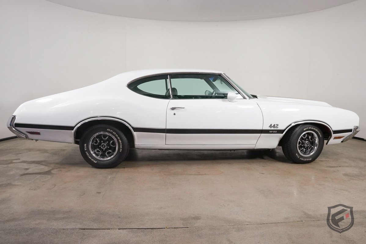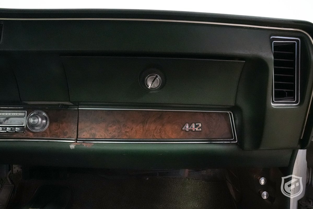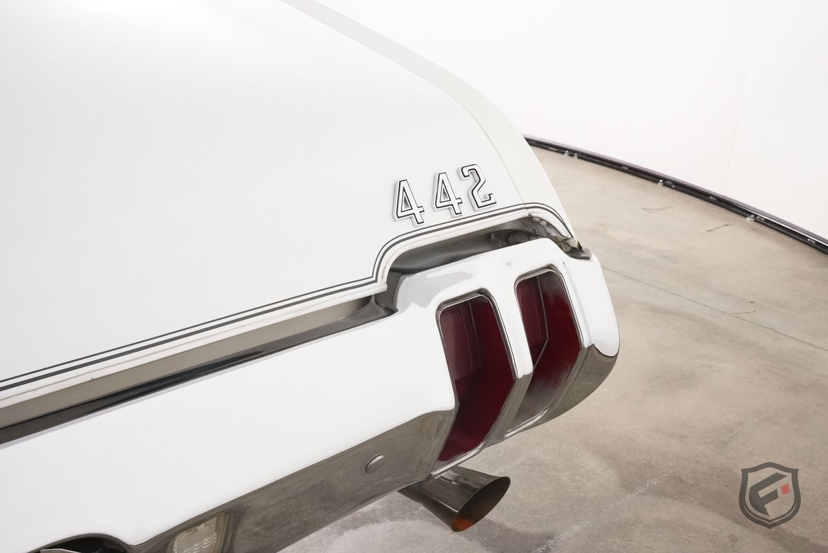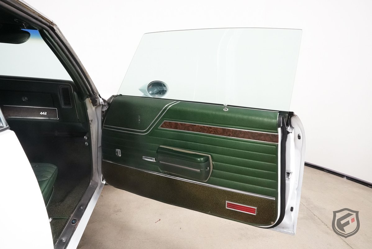 This example was reportedly delivered new to Bill Hesser Oldsmobile in Neenah, Wisconsin, complete with its original window sticker, two broadcast cards, and delivery documents. It is powered by a numbers-matching 455ci V8 paired with a three-speed Turbo Hydra-Matic 400 automatic transmission and is finished in white with black stripes over a green interior upholstery. The car was factory-equipped with the W-30 package, which includes: