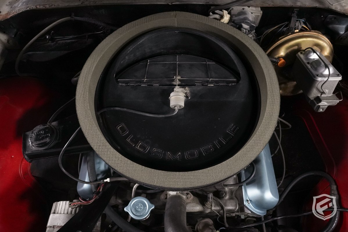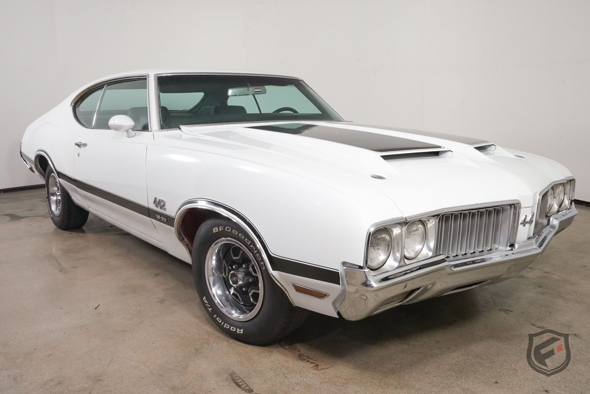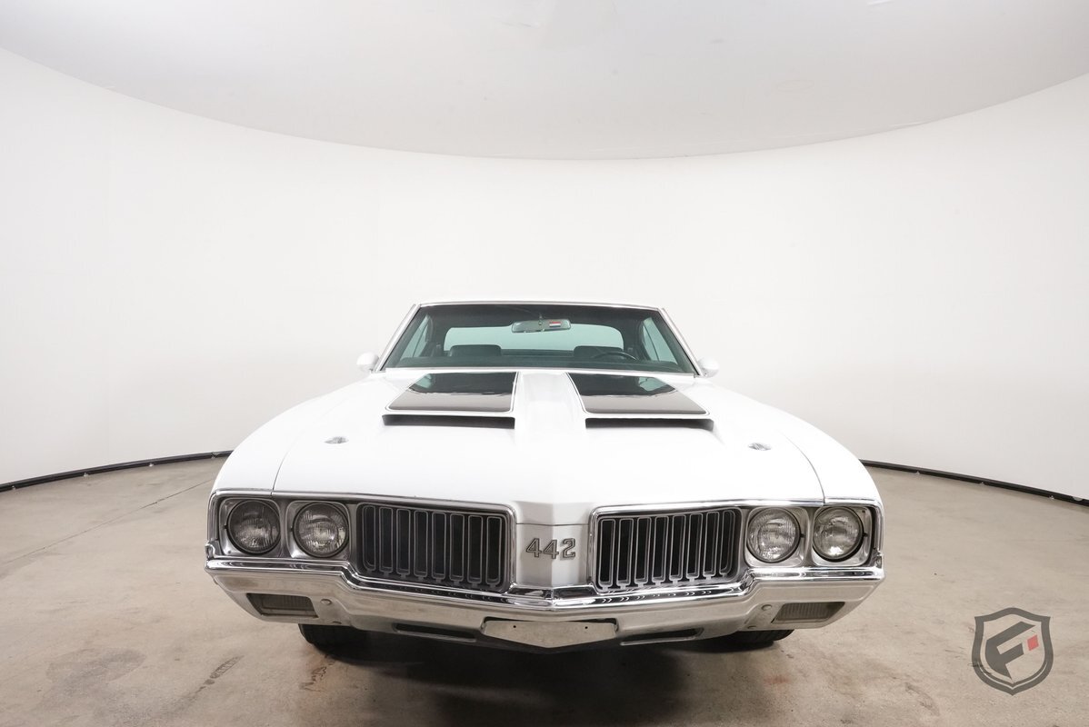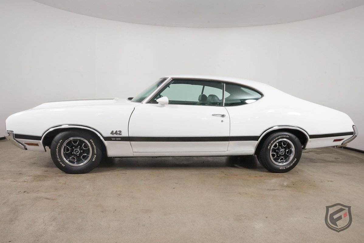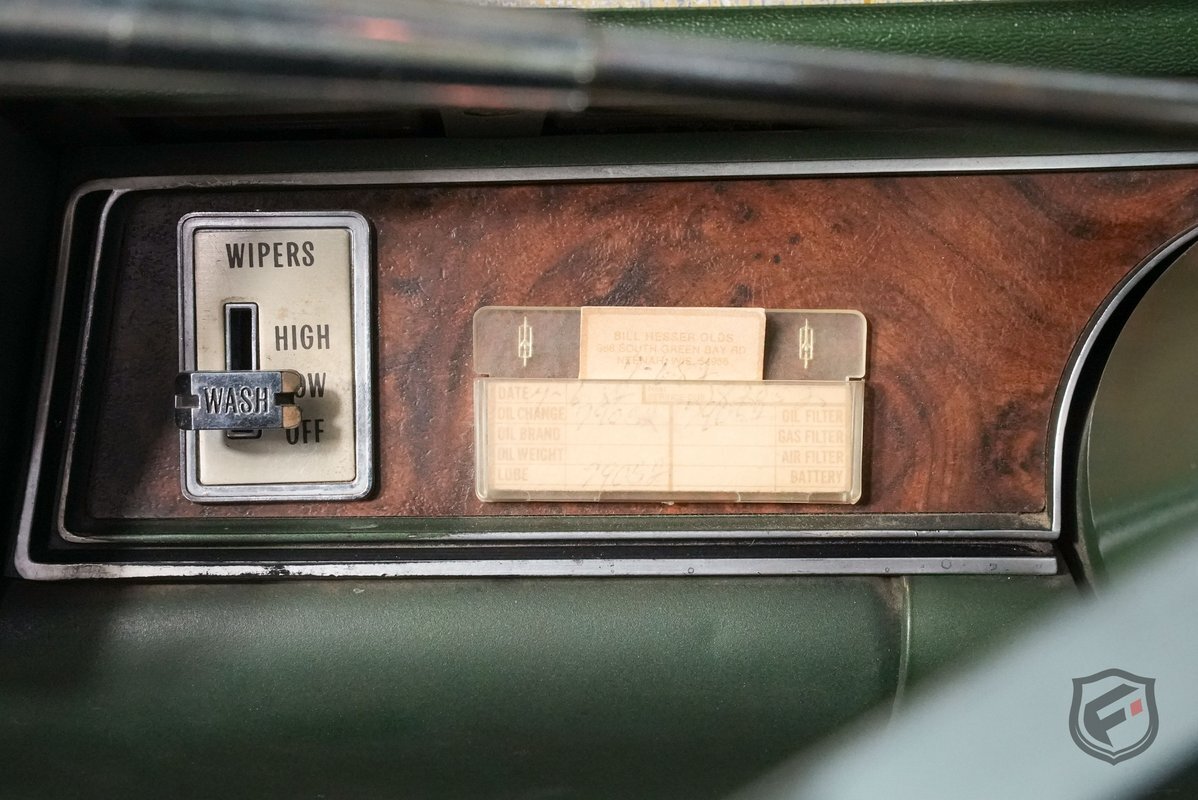 This example was reportedly delivered new to Bill Hesser Oldsmobile in Neenah, Wisconsin, complete with its original window sticker, two broadcast cards, and delivery documents. It is powered by a numbers-matching 455ci V8 paired with a three-speed Turbo Hydra-Matic 400 automatic transmission and is finished in white with black stripes over a green interior upholstery. The car was factory-equipped with the W-30 package, which includes:
