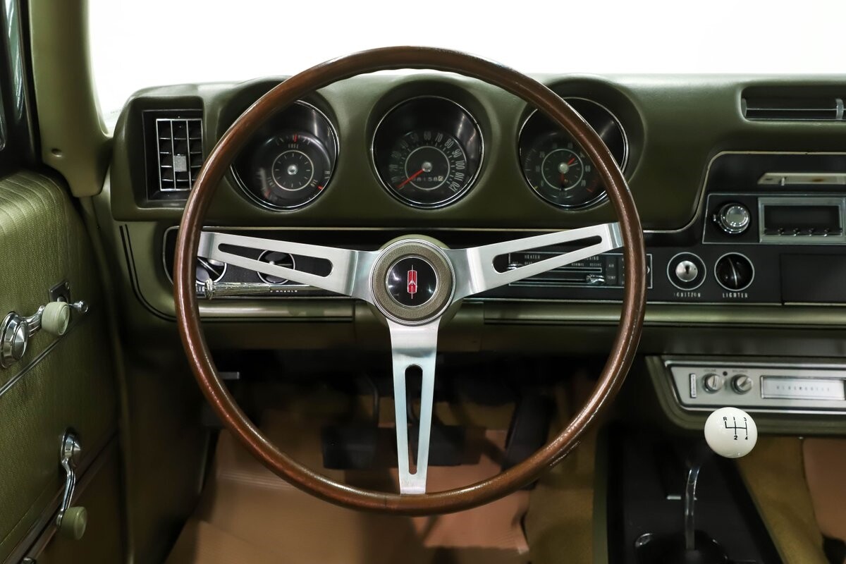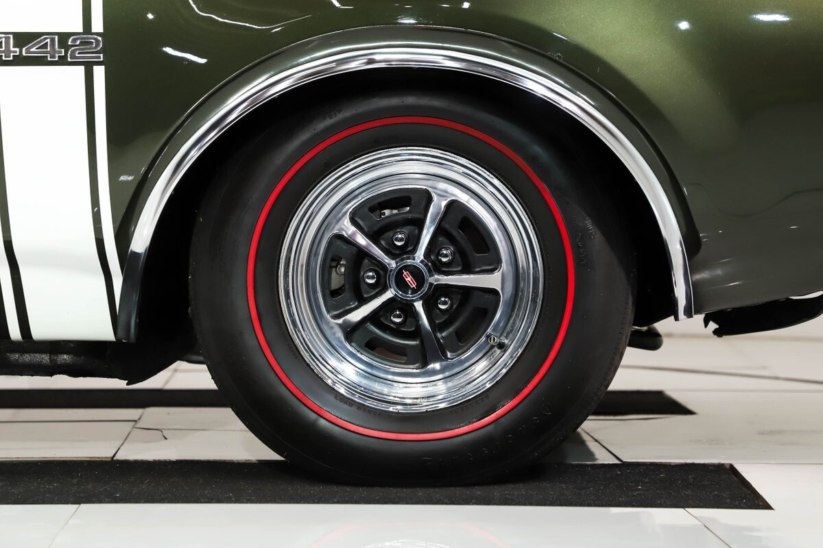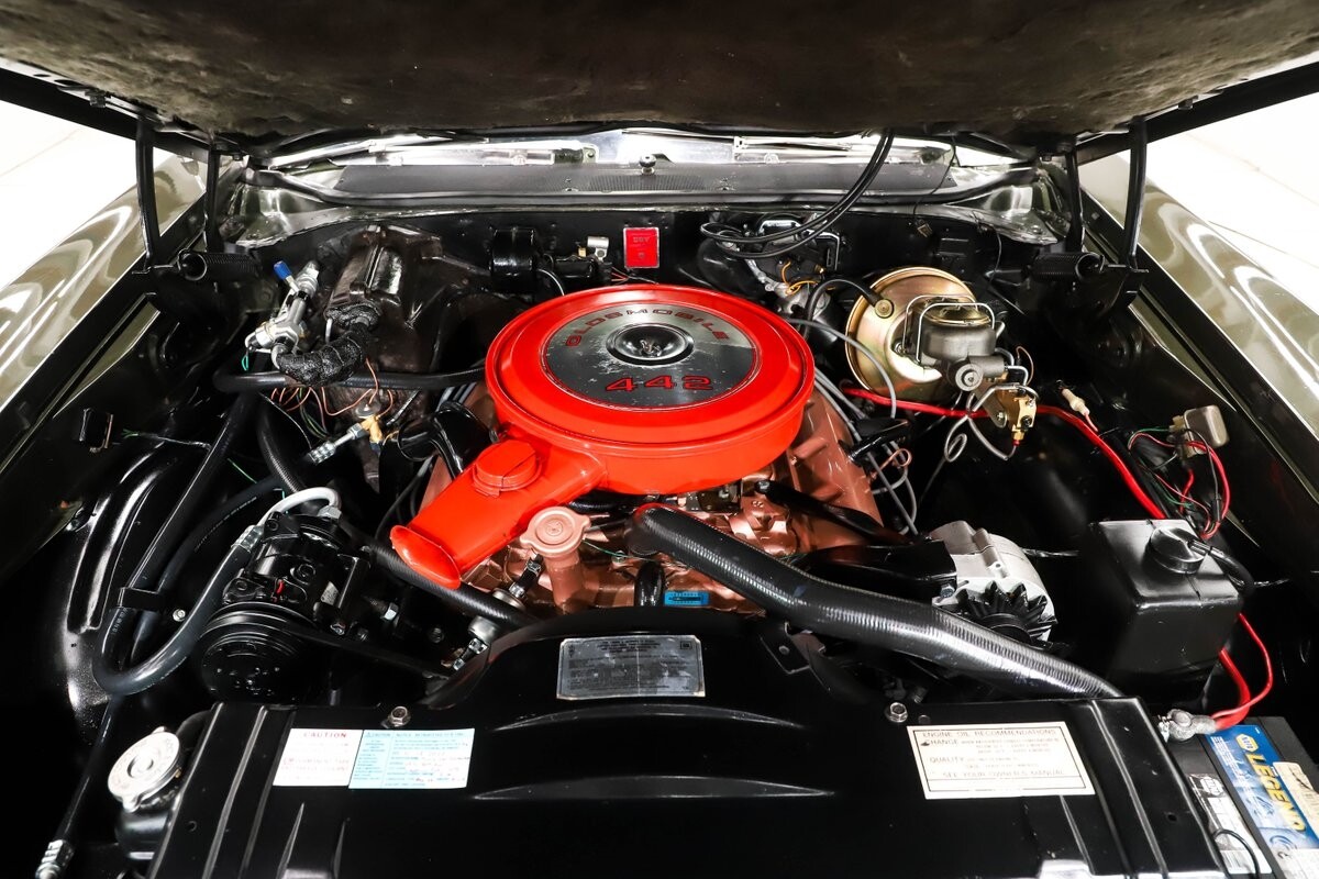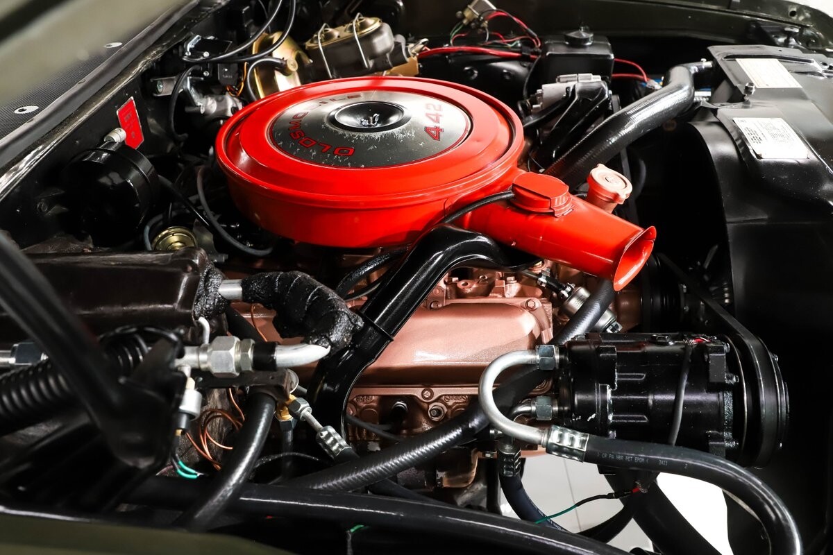 INTERIOR: This interior is 100% original with exception of the headliner, sun visors, and Retro Sound stereo (original included in the trunk)! The authentic front bucket seats are in fantastic condition and show just the slightest bit of patina. The factory center console sits proudly between the front seats and look amazing. The Hurst shifter is original and says 442 right on it! The rear seat is also in remarkable condition. It has the original seat belts all the way around. The factory door panels are in exquisite shape. The dash pad is free of any imperfections as is the rest of the dash. The original gauges are in place and there are currently 88,159 actual miles on the odometer. It is equipped with optional Tic Tok Tach and rally gauges from the factory. It still retains the very rare and original 8-track tape player. The original radio was replaced with a Bluetooth and SiriusXM capable digital radio by Retro Sound. The headliner and visors were professionally reupholstered. The carpeting and floor mats are original and in outstanding condition. The dome light and kick panel lights are in working condition.