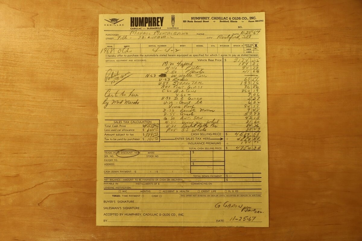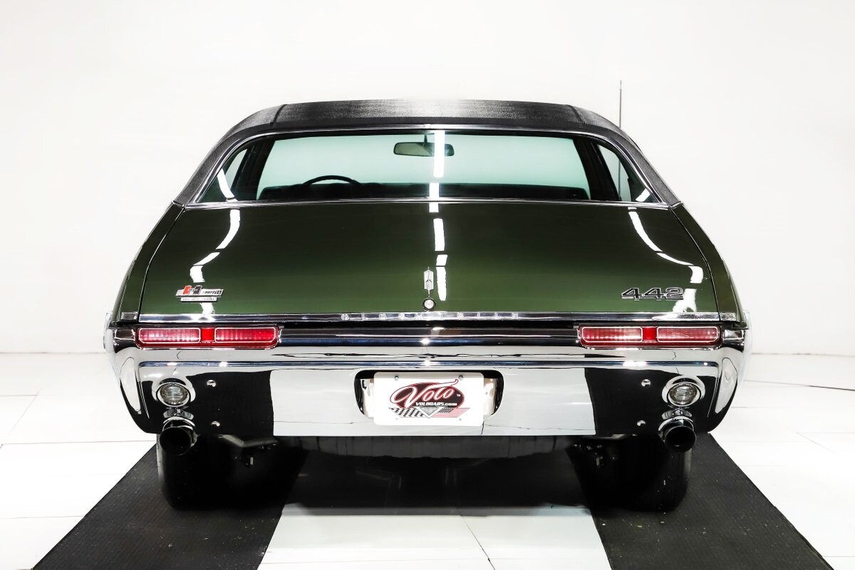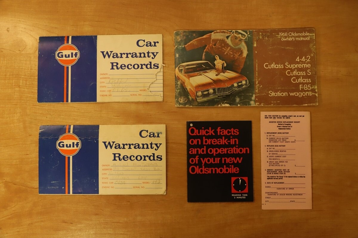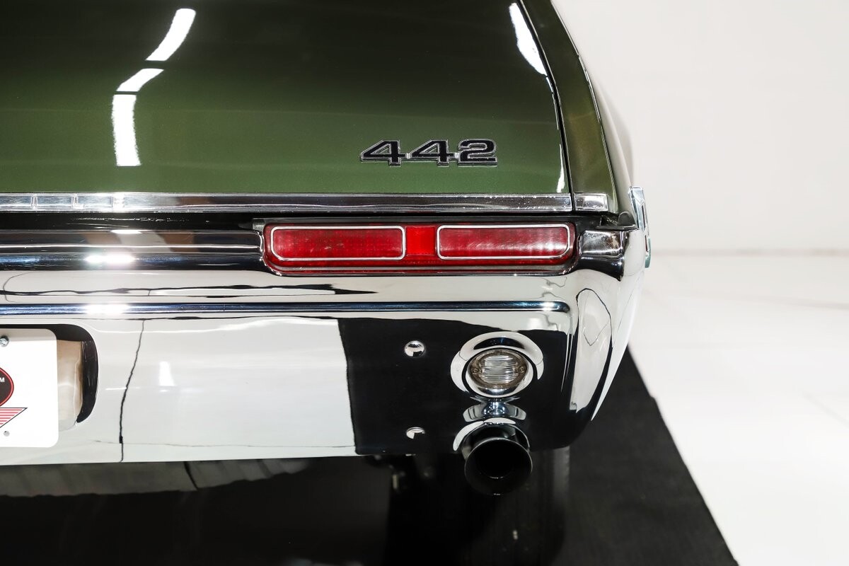 INTERIOR: This interior is 100% original with exception of the headliner, sun visors, and Retro Sound stereo (original included in the trunk)! The authentic front bucket seats are in fantastic condition and show just the slightest bit of patina. The factory center console sits proudly between the front seats and look amazing. The Hurst shifter is original and says 442 right on it! The rear seat is also in remarkable condition. It has the original seat belts all the way around. The factory door panels are in exquisite shape. The dash pad is free of any imperfections as is the rest of the dash. The original gauges are in place and there are currently 88,159 actual miles on the odometer. It is equipped with optional Tic Tok Tach and rally gauges from the factory. It still retains the very rare and original 8-track tape player. The original radio was replaced with a Bluetooth and SiriusXM capable digital radio by Retro Sound. The headliner and visors were professionally reupholstered. The carpeting and floor mats are original and in outstanding condition. The dome light and kick panel lights are in working condition.