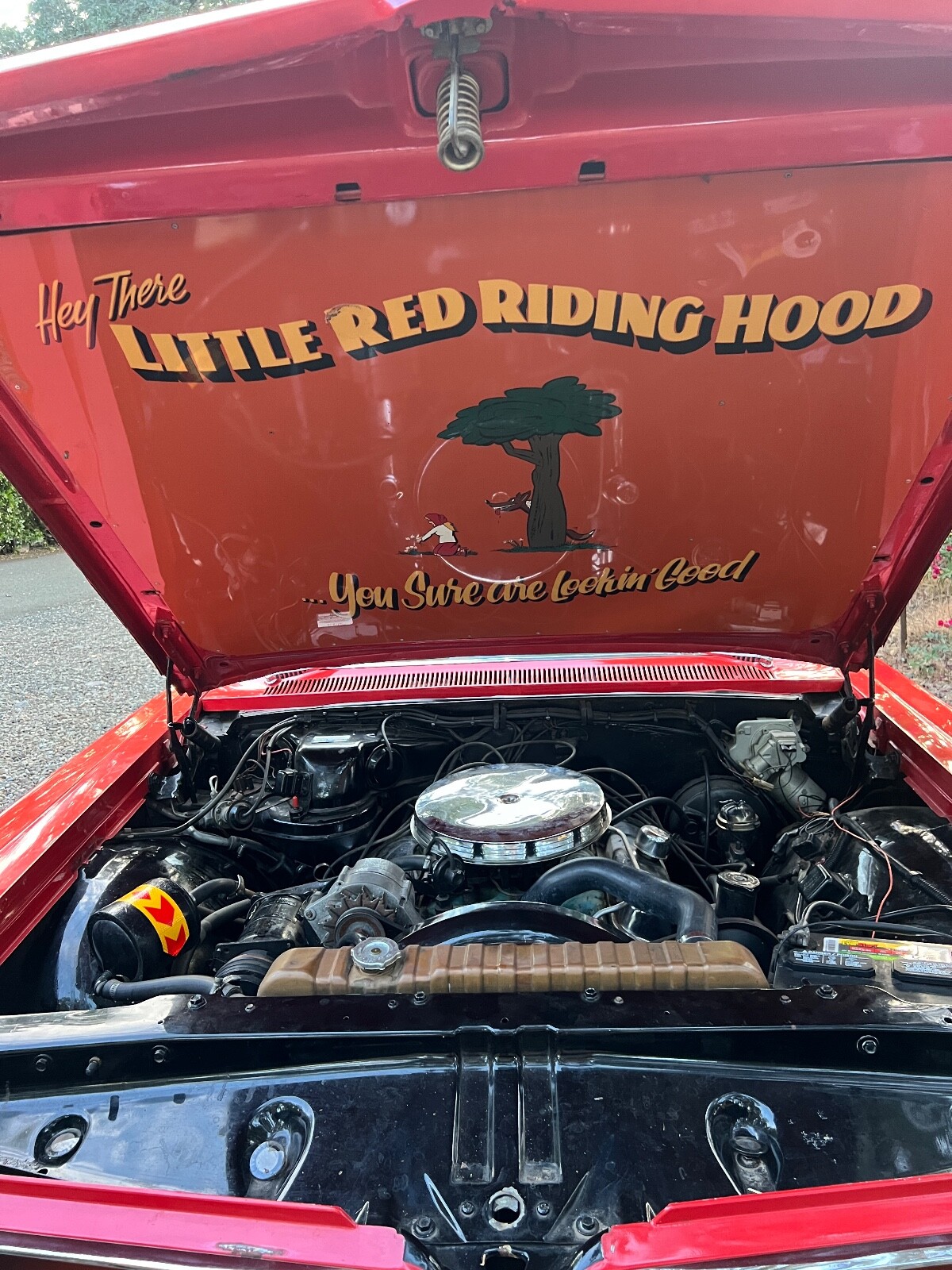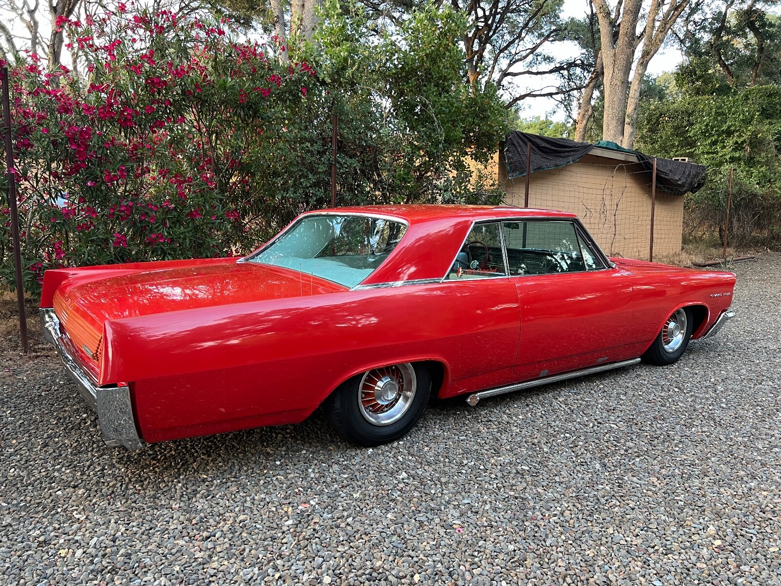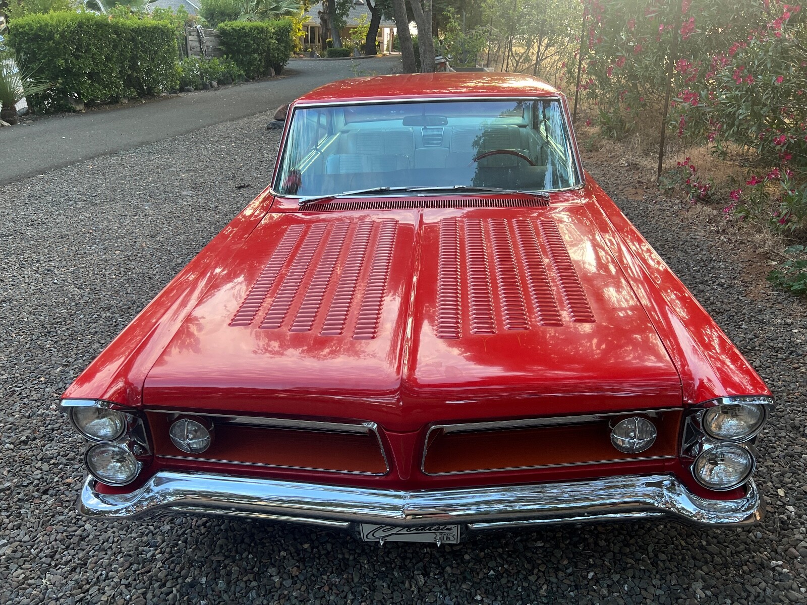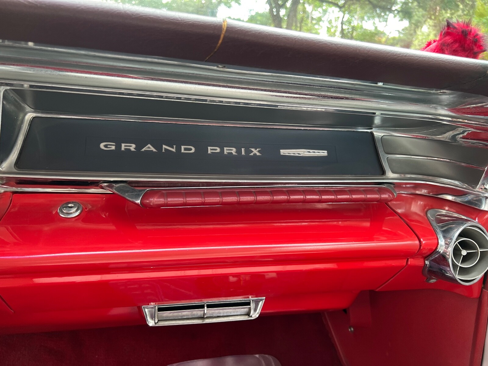 Old Skool mild custom 63 GP. 8 lug wheels. This car was built back in the 60s and 70s so its heated coils and blocks on leaf springs in the back. Original 389 4bbl motor that run's good. Factory AC car with gorgeous White bucket seat interior. Console and floor shifter. Louvered hood, laker's and double antennae. Great graphics under the hood referring to the 50s song little red riding hood. Body and paint are old and we consider the car driver quality with some rust showing around wheel lips. Gauge package is working. Radio is non op. AC is not cold but may just require a charge. Transmission is shifting strong but slipping out of high gear around 55 mph. Brakes and steering are all good. Overall a smooth old Custom that with some elbow grease could be brought back to its original show winning glory. Located in Nor Cal 95451