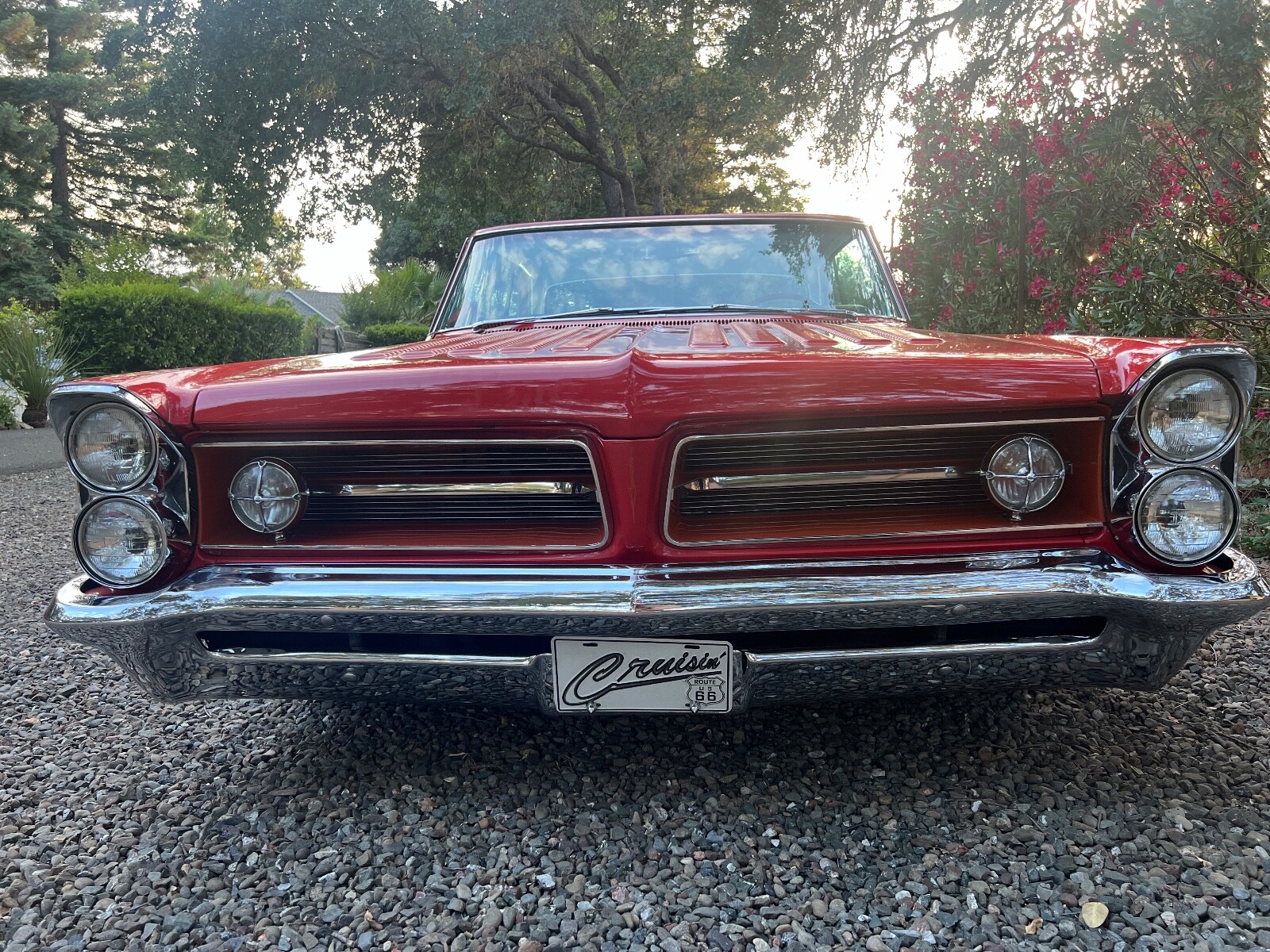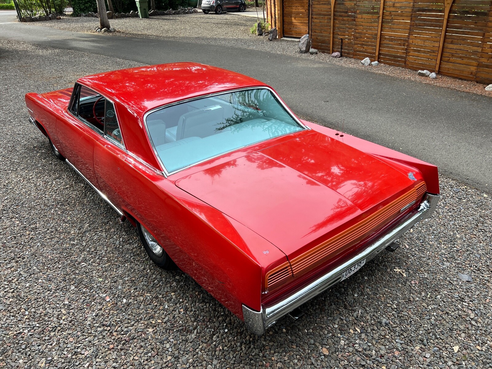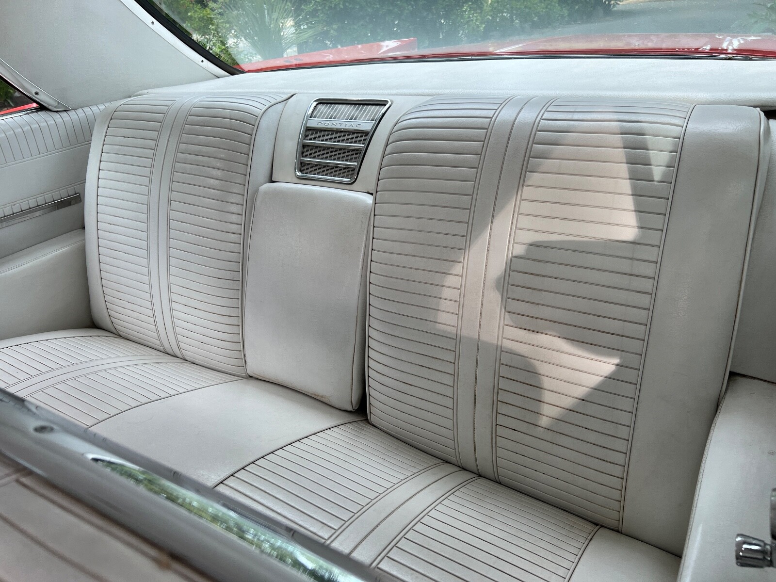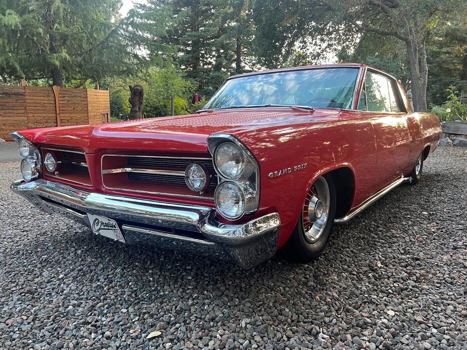Old Skool mild custom 63 GP. 8 lug wheels. This car was built back in the 60s and 70s so its heated coils and blocks on leaf springs in the back. Original 389 4bbl motor that run's good. Factory AC car with gorgeous White bucket seat interior. Console and floor shifter. Louvered hood, laker's and double antennae. Great graphics under the hood referring to the 50s song little red riding hood. Body and paint are old and we consider the car driver quality with some rust showing around wheel lips. Gauge package is working. Radio is non op. AC is not cold but may just require a charge. Transmission is shifting strong but slipping out of high gear around 55 mph. Brakes and steering are all good. Overall a smooth old Custom that with some elbow grease could be brought back to its original show winning glory. Located in Nor Cal 95451