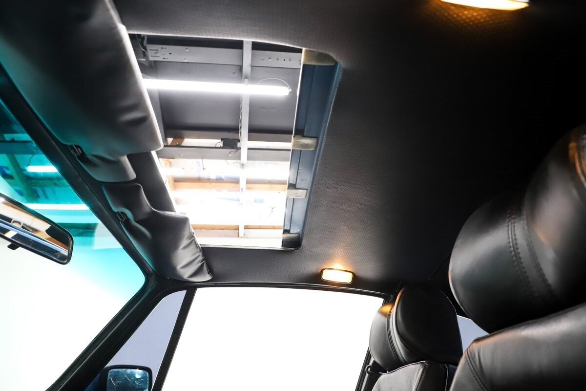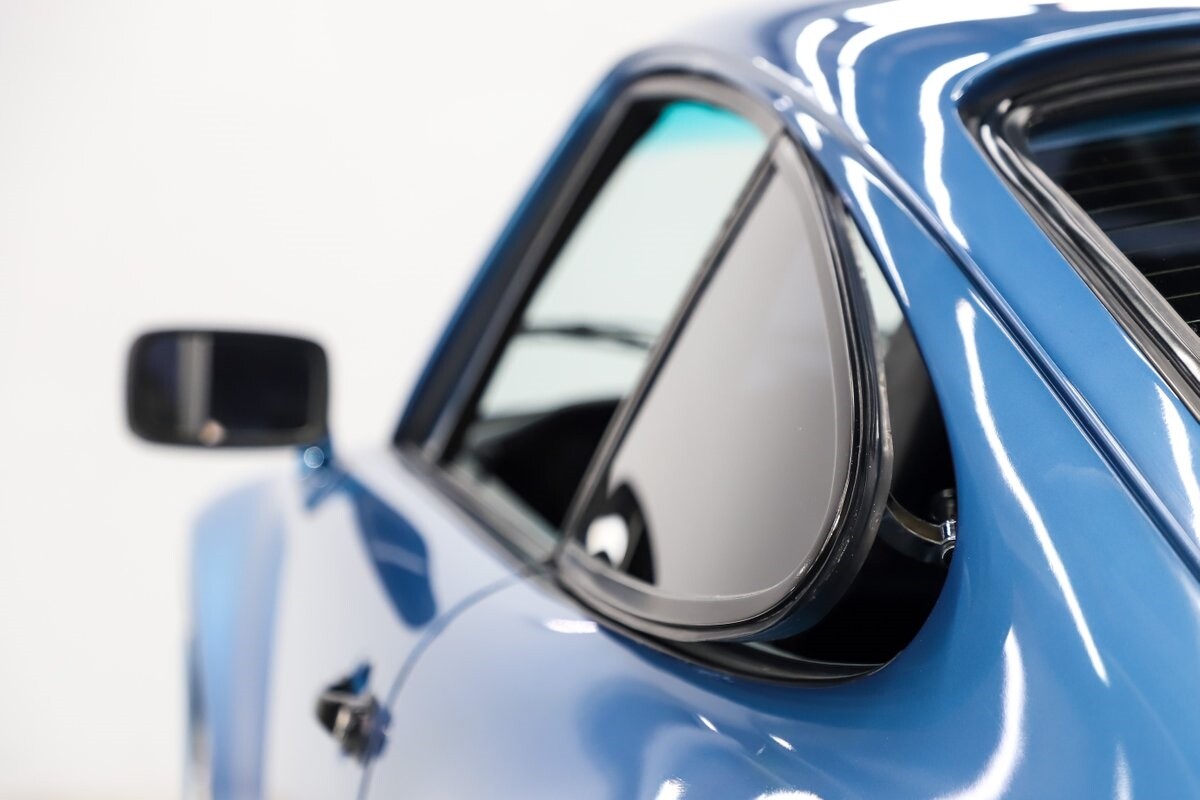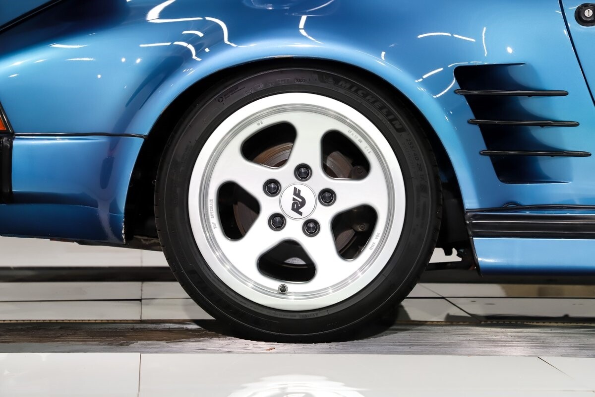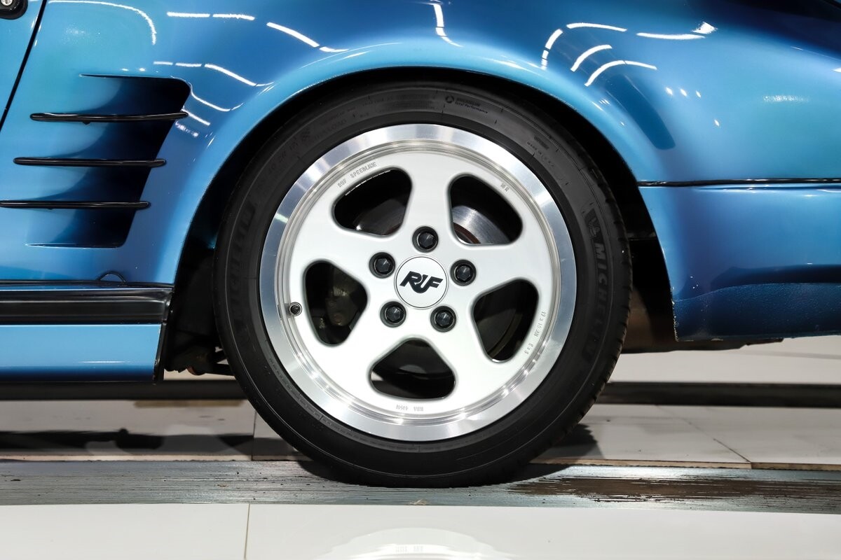 EXTERIOR: The body is stunning! RUF slantnose started in the late 80's and were made in Germany; they are very rare with under 100 made. Somehow this lucky owner was able to import a genuine RUF kit from Germany and converted his car here in the states. Take note of the steel wide body fenders, aluminum front and rear bonnet lids, and the fiberglass bumpers. They are all genuine RUF pieces. The staggered 17" RUF speed line wheels are polished aluminum and gorgeous. They are wrapped in a new Michelin pilot sport tire. Also, there is a rare sliding electric sunroof in working condition. The paint is finished in a rare early 70's Gemini blue metallic which is the original paint code of this 911. It was repainted when the conversion was done and shows very well with some small blemishes here and there. (Refer to our YouTube video to see the pointed-out flaws)