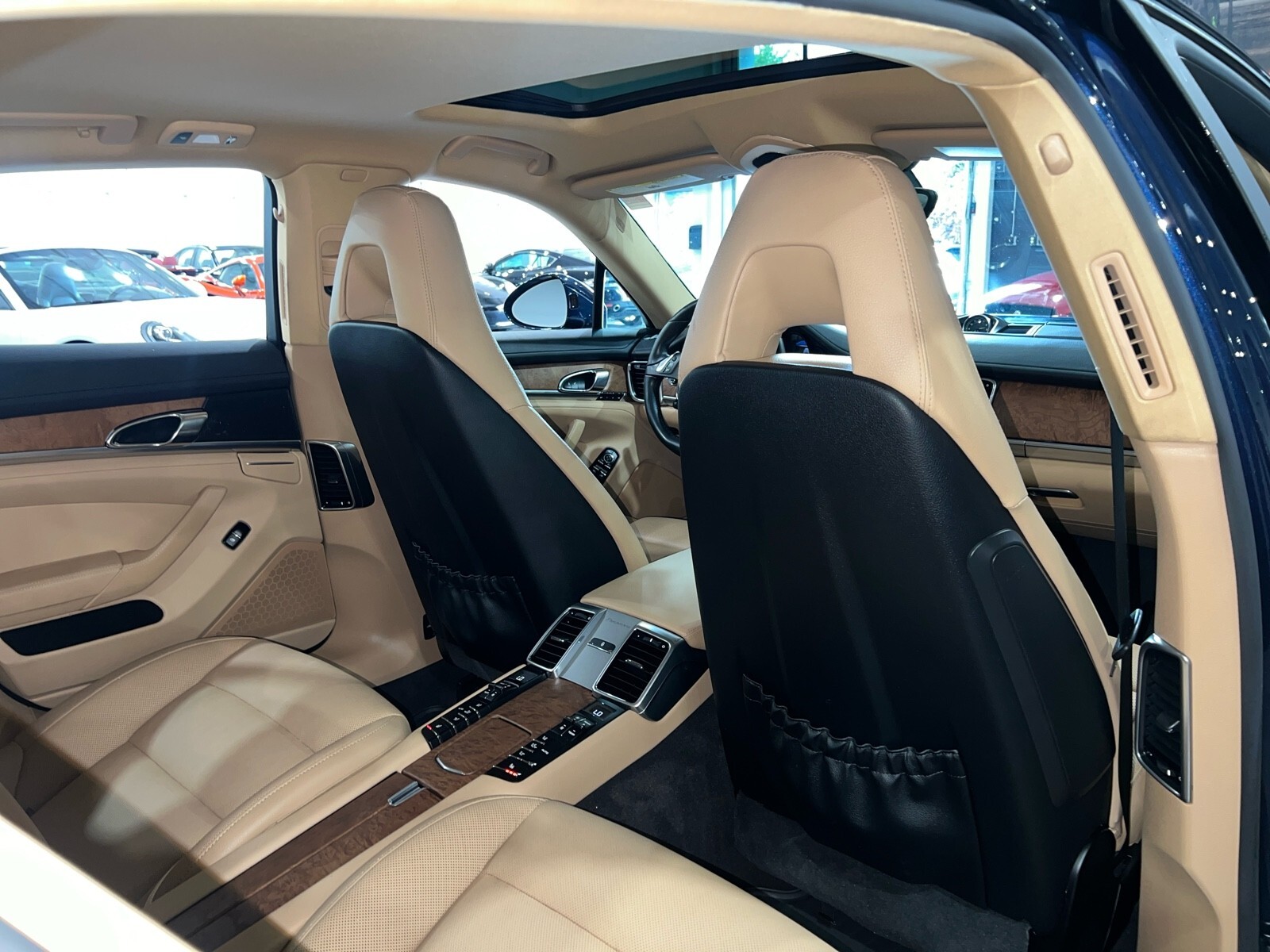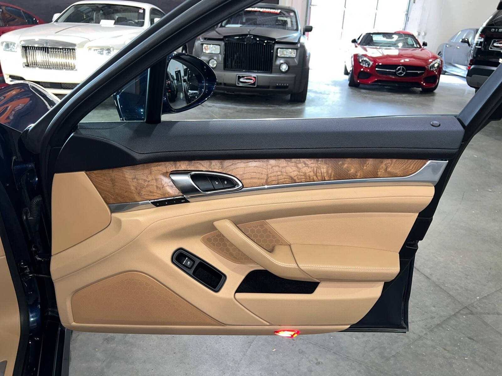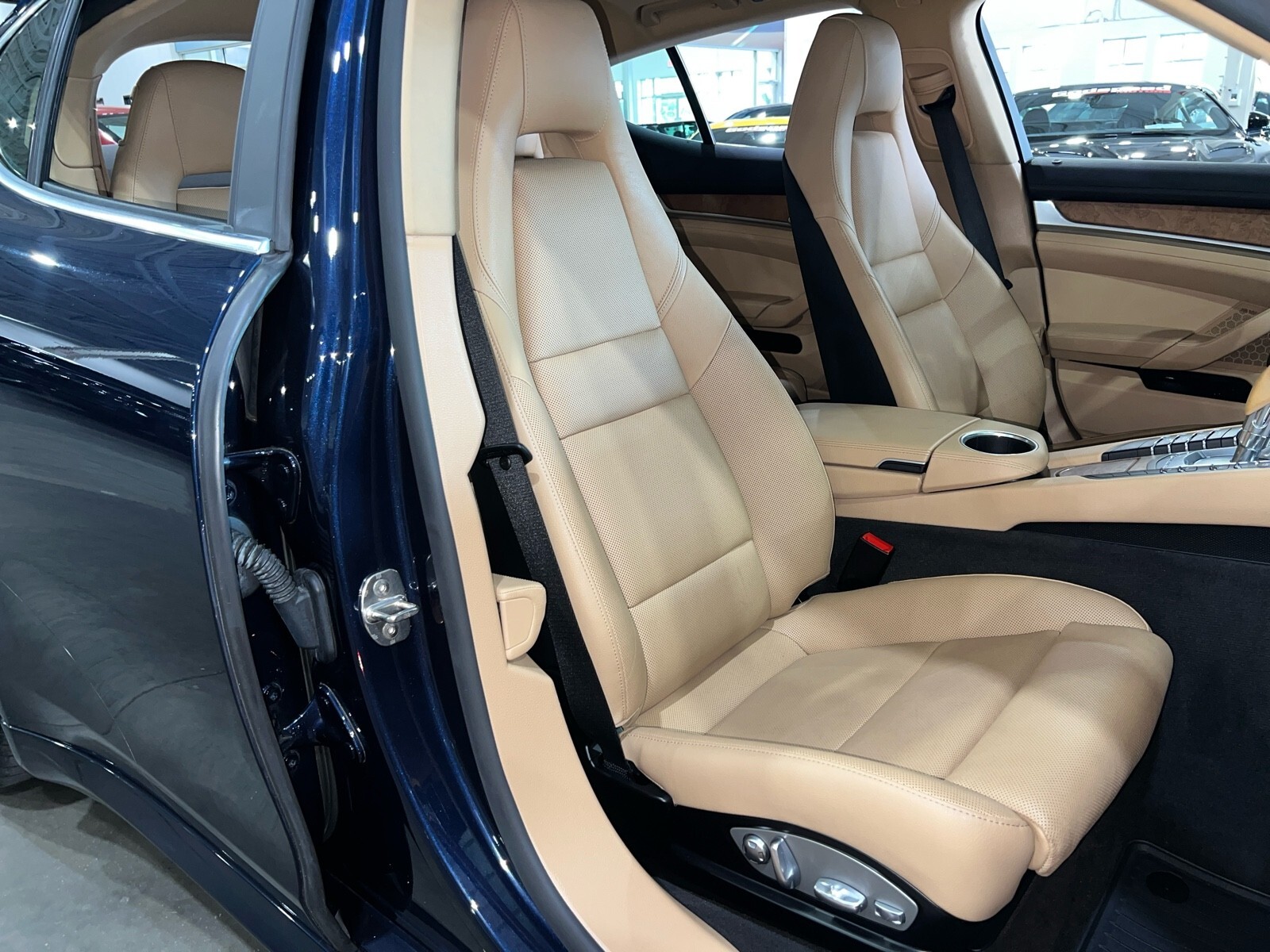 Clean carfax, S E-Hybrid, premium package plus, night blue metallic, heated and cooled seats, parking sensors, back up camera etc $105,675 MSRP When New. 22 Inch Black Panamera Turbo Style wheels and tires may be shown in pictures they are brand new and available for an additional $2495, Factory silver wheels are included in the price. MSRP $93,200.00 INSTALLED OPTIONS [429] Wheels: 20 911 Turbo Design Tires: P255/40ZR20 Fr & P295/35ZR20 Rr $3,565 [N5] Night Blue Metallic $790 [P80] 14 Way Comfort Memory Package electric seat squab length adjustment and 4-way lumbar support for driver and front passenger electric adjustment of the steering column and LED mirror courtesy lighting memory for storing personalized settings for driver and front passenger seat adjustments steering column and exterior mirror positions and settings for lights wipers air conditioning door locking instrument cluster and PCM on the key remote Settings can also be recalled using the additional memory buttons in the door included [PK0] Bi Color Black/Lux Beige, Two Tone Standard Leather $380 [P46] Premium Package Plus 14-Way Comfort-Memory-Package electric seat squab length adjustment and 4-way lumbar support for driver and front passenger electric adjustment of the steering column and LED mirror courtesy lighting memory for storing personalized settings for driver and front passenger seat adjustments steering column and exterior mirror positions and settings for lights wipers air conditioning door locking instrument cluster and PCM on the key remote Settings can also be recalled using the additional memory buttons in the door Front Seat Ventilation seat squabs and backrests in the front featuring 3-stage ventilation and separate controls for left and right Front & Rear ParkAssist w/Reversing Camera a color camera image w/superimposed dynamic guidelines on the Porsche Communication Management (PCM) screen to facilitate controlled and precise reverse parking and maneuvering $4,700 [541] Front Seat Ventilation seat squabs and backrests in the front featuring 3-stage ventilation and separate controls for left and right included [824] Natural Olive Interior Package ash wood w/olive grain on dashboard decorative trim door decorative trims front and rear center console lower section decorative plate ashtray cover front rear cupholder cover and rear center console storage compartment lid $1,990 [EH2] Vehicle Cable Length 7.5 M/25 Foot $0 [638] Front & Rear Parkassist W/Reversing Camera a color camera image w/superimposed dynamic guidelines on the Porsche Communication Management (PCM) screen to facilitate controlled and precise reverse parking and maneuvering included Original Shipping Charge $1,050 RETAIL PRICE (ORIGINALLY NEW) $105,675.00