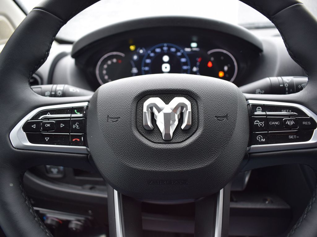 100 Amp Battery, 115V Auxiliary Power Outlet, 12V Rear Auxiliary Power Outlet, 220 Amp Alternator, 6-Way Manual Adjust Front Passenger Seat, Adaptive Cruise Control w/Stop & Go, Advanced Safety Group, Ambient LED Interior Lighting, Automatic Headlamps, Blind Spot & Cross Path Detection, Chrome Front Grille, Cluster 7 TFT Color Display, Cowl Aesthetic Cover, Digital Rearview Mirror w/Autodim, Exterior Mirrors w/Heating Element, GPS Navigation, HD Radio, Instrument Panel Bright Bezels, Integrated Voice Command w/Bluetooth, Intelligent Speed Assist (ISA), Lane Departure Warning Plus, LED Daytime Running Headlamps, LED Reflector Headlamps, Manual 2-Way Driver Lumbar Adjust, Manual 2-Way Passenger Lumbar Adjust, P&P Park & Unpark Assist System, Park-Sense Front & Rear Park Assist, Passenger Bucket Seat, Passenger Seat Armrest, Passive Entry, Power Adjust Mirrors, Power Folding/Heated Mirrors, Power-Adjustable Convex Aux Mirrors, Quick Order Package 22H SLT+, Radio: Uconnect 5 Nav w/10.1 Display, Rain Sensitive Windshield Wipers, Rear Cargo LED Lamp, Remote Start System, Security Alarm, SiriusXM w/360L, Surround View Camera System, Traffic Sign Information, Wheels: 16 x 6.0 Aluminum Painted Silver, Wireless Charging Pad.
