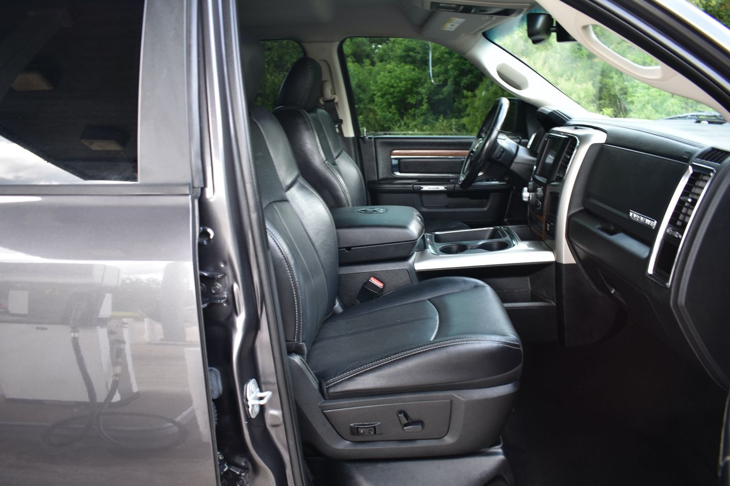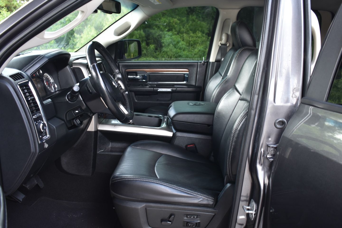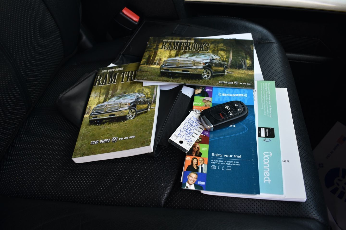 You are looking at a 2017 Dodge Ram 1500 Crew Cab Longhorn. It is powered with a 3.0 Eco Diesel V-6 and eight speed automatic transmission. It is equipped with dual power heated/cooled seats,power mirrors, power windows, power locks, tilt, cruise, receiver hitch, spray in bed liner, and am/fm radio with factory navigation . Also included are the owner's manuals and one keyless remote.