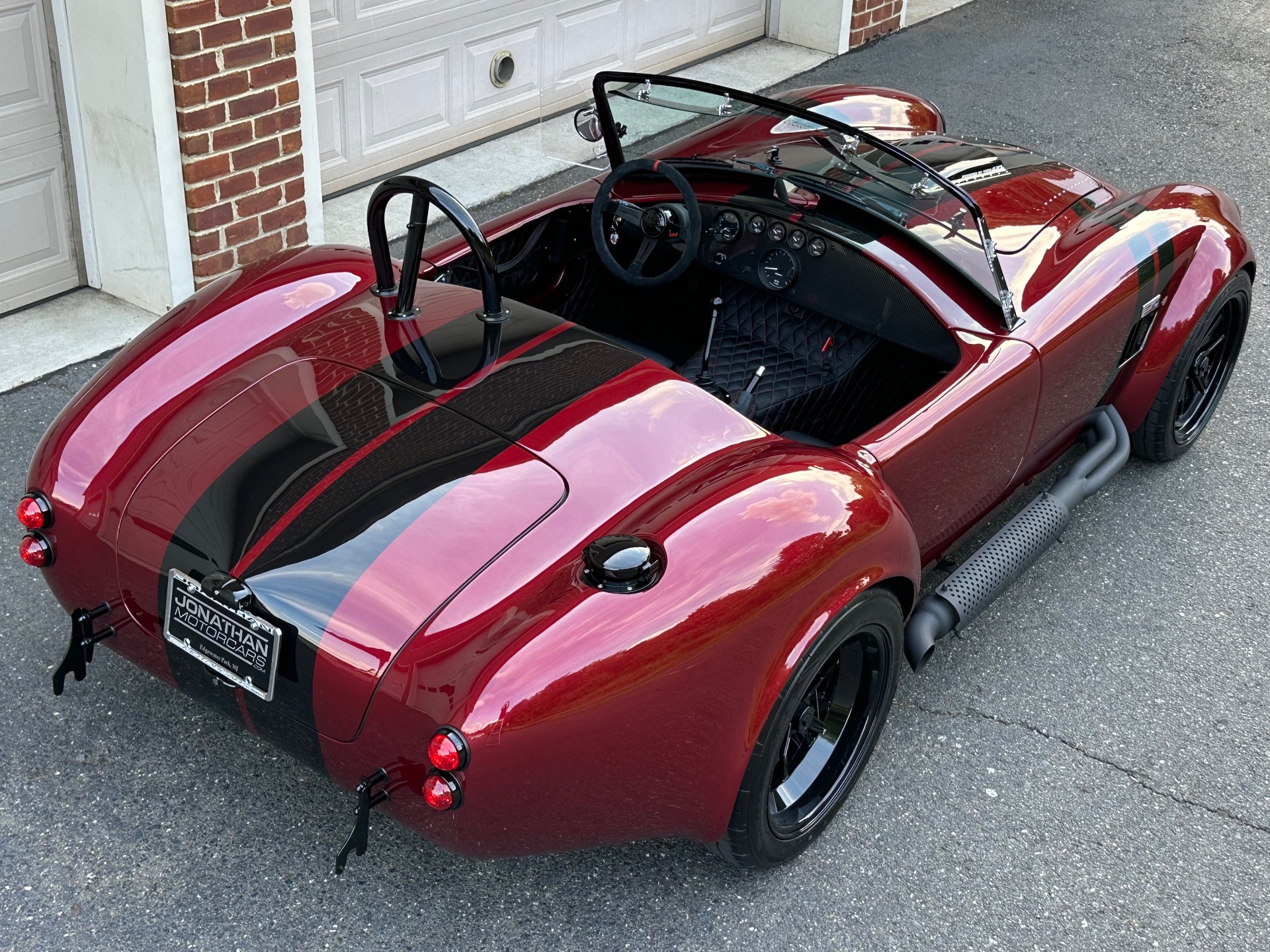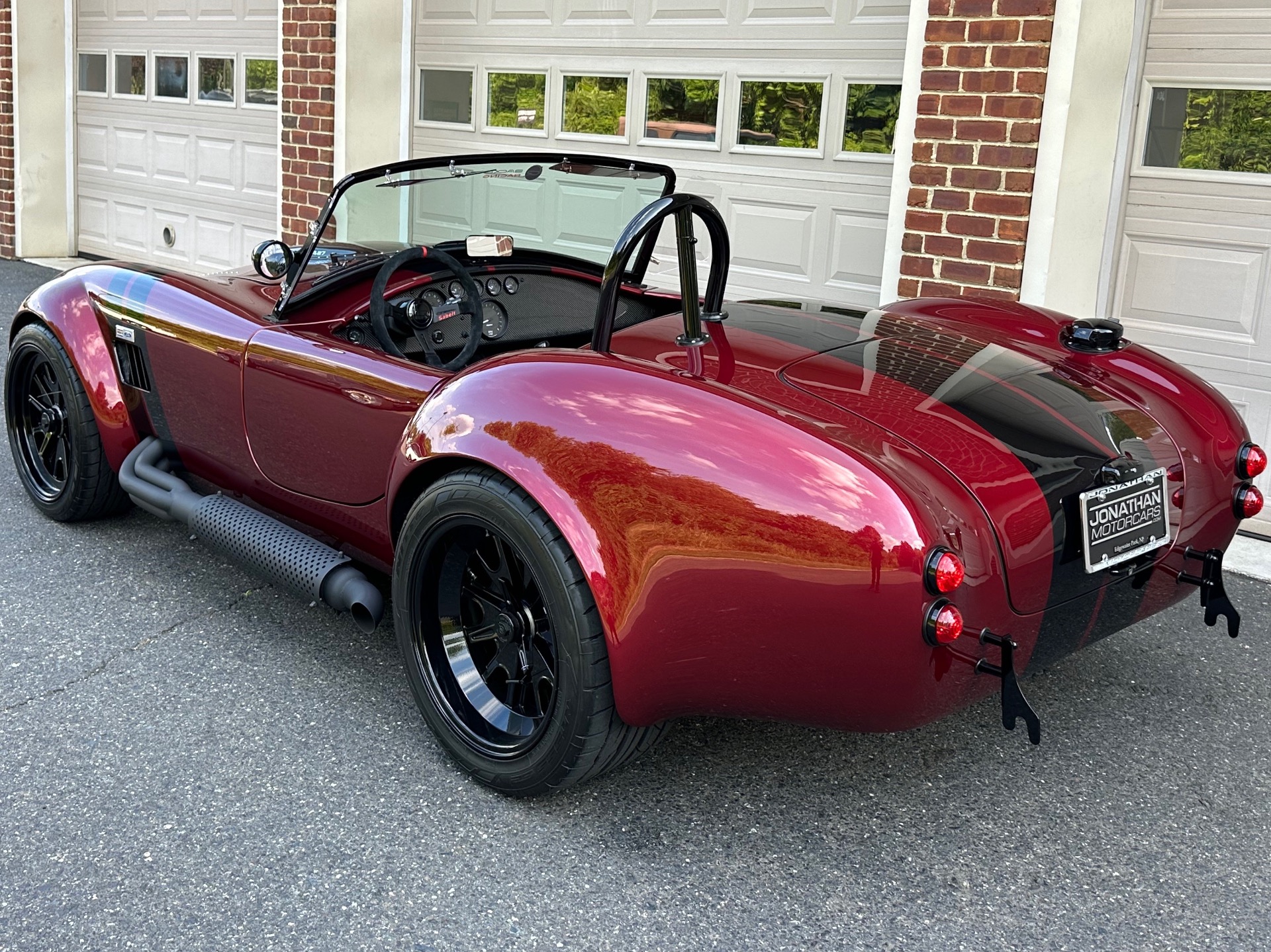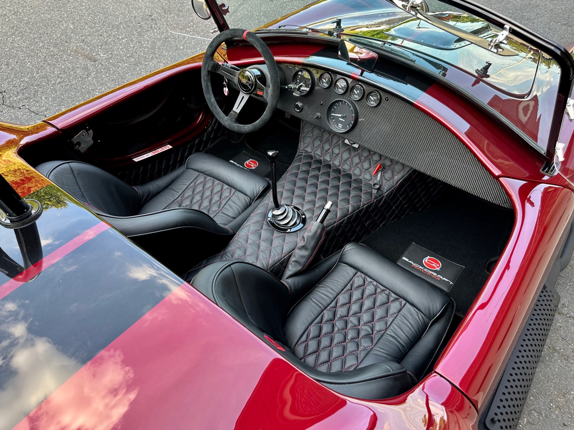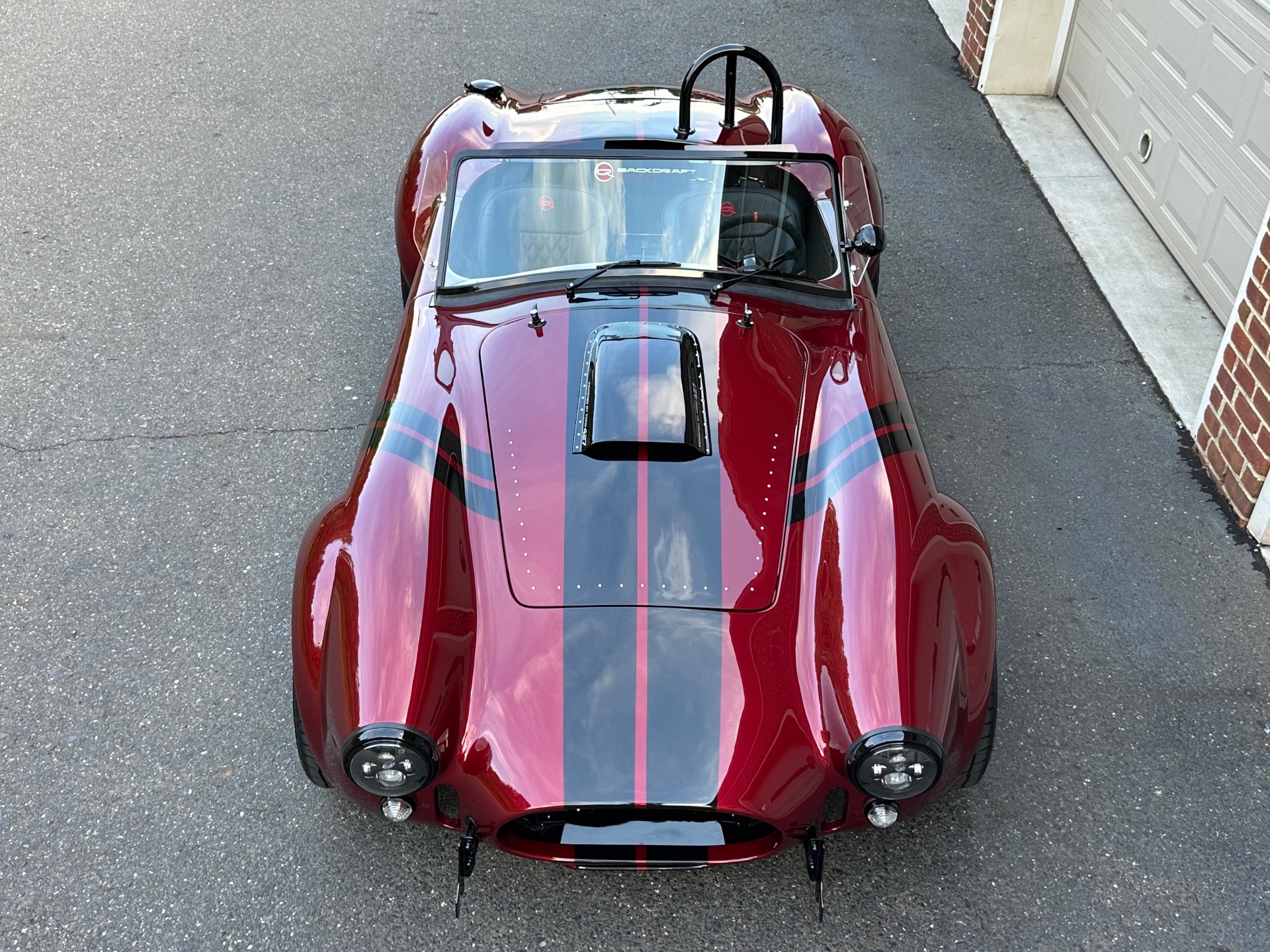 Another awesome 1965 Backdraft Racing Cobra RT4B has arrived at Jonathan Motorcars, your official Backdraft dealer for over 14 years! This stunning Cobra is a true masterpiece, boasting a striking Ford Ruby Red paint color with bold black racing stripes that accentuate its classic design. The exterior is further enhanced by the full blacked-out package, giving it a sleek and aggressive look on the road. Step inside this exceptional Cobra and you'll be greeted by a luxurious interior featuring black leather seats with eye-catching red diamond stitching. The attention to detail is evident throughout, with a carbon fiber dash, autometer carbon GT gauges, heated seats, suede steering wheel, and 4-point harness cam lock style seat belts adding both style and functionality to the cabin. Under the hood, this Cobra is powered by a formidable Prestige 427 engine delivering an impressive 500HP, ensuring exhilarating performance and a thrilling driving experience. Additional features include painted stripes under the hood, side stripes, 3M paint protection, blacked-out LED headlights, power steering, remote brake and clutch reservoirs, oil cooler, and an aluminum gas tank. Whether you're a seasoned collector or a passionate enthusiast, this 1965 Backdraft Racing Cobra RT4B is sure to turn heads wherever it goes. With financing options available and the ability to ship worldwide, don't miss your chance to own this exceptional piece of automotive history. Visit Jonathan Motorcars today and make this iconic Cobra yours!