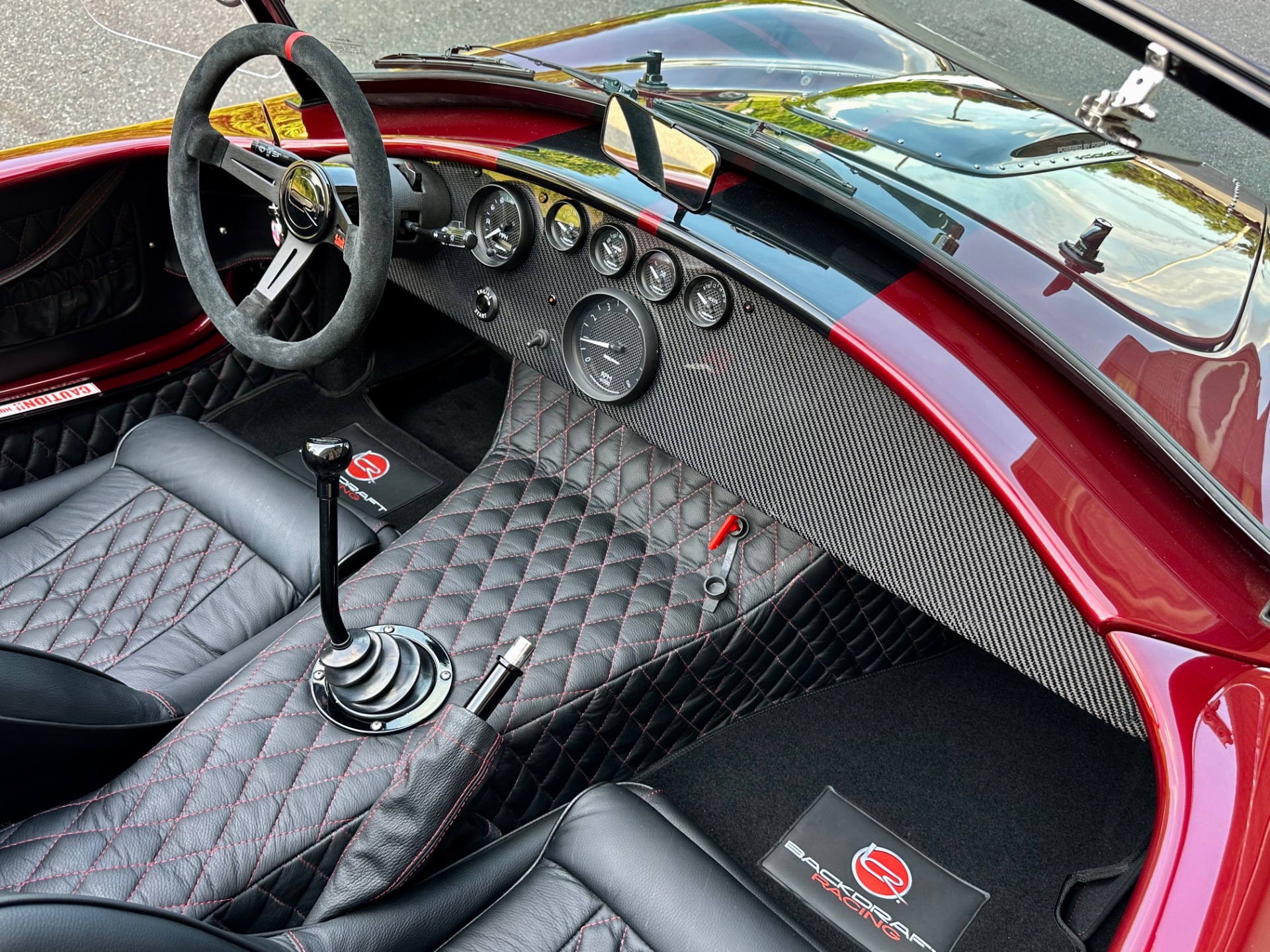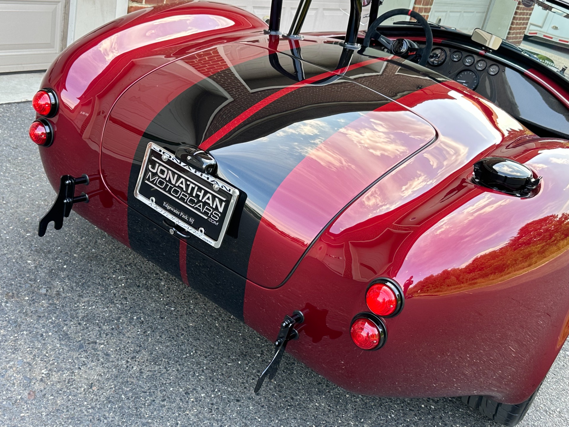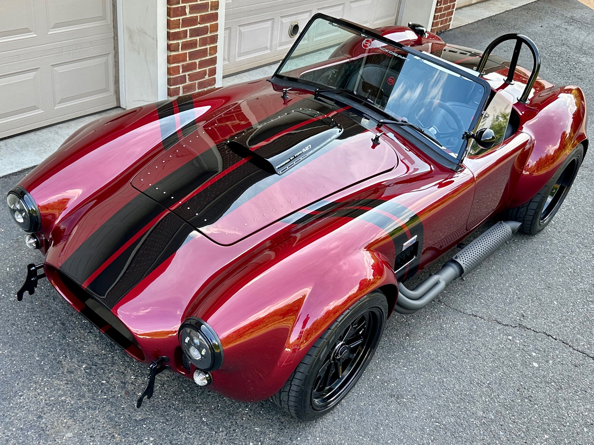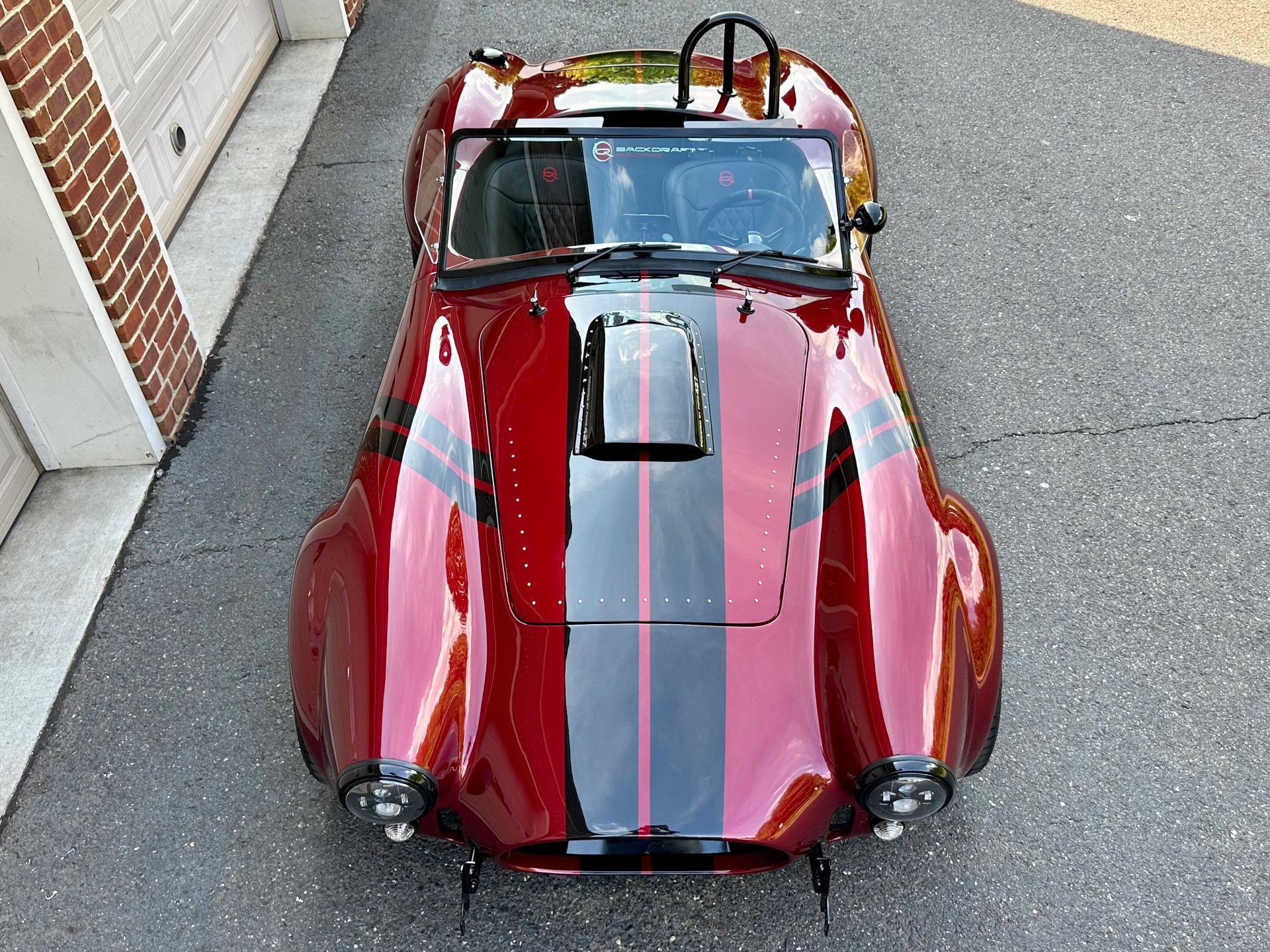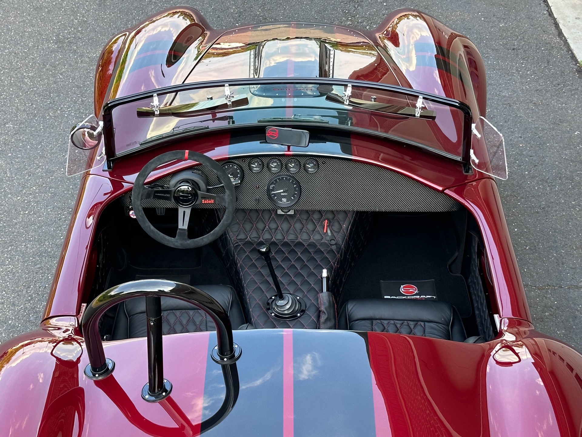 Another awesome 1965 Backdraft Racing Cobra RT4B has arrived at Jonathan Motorcars, your official Backdraft dealer for over 14 years! This stunning Cobra is a true masterpiece, boasting a striking Ford Ruby Red paint color with bold black racing stripes that accentuate its classic design. The exterior is further enhanced by the full blacked-out package, giving it a sleek and aggressive look on the road. Step inside this exceptional Cobra and you'll be greeted by a luxurious interior featuring black leather seats with eye-catching red diamond stitching. The attention to detail is evident throughout, with a carbon fiber dash, autometer carbon GT gauges, heated seats, suede steering wheel, and 4-point harness cam lock style seat belts adding both style and functionality to the cabin. Under the hood, this Cobra is powered by a formidable Prestige 427 engine delivering an impressive 500HP, ensuring exhilarating performance and a thrilling driving experience. Additional features include painted stripes under the hood, side stripes, 3M paint protection, blacked-out LED headlights, power steering, remote brake and clutch reservoirs, oil cooler, and an aluminum gas tank. Whether you're a seasoned collector or a passionate enthusiast, this 1965 Backdraft Racing Cobra RT4B is sure to turn heads wherever it goes. With financing options available and the ability to ship worldwide, don't miss your chance to own this exceptional piece of automotive history. Visit Jonathan Motorcars today and make this iconic Cobra yours!