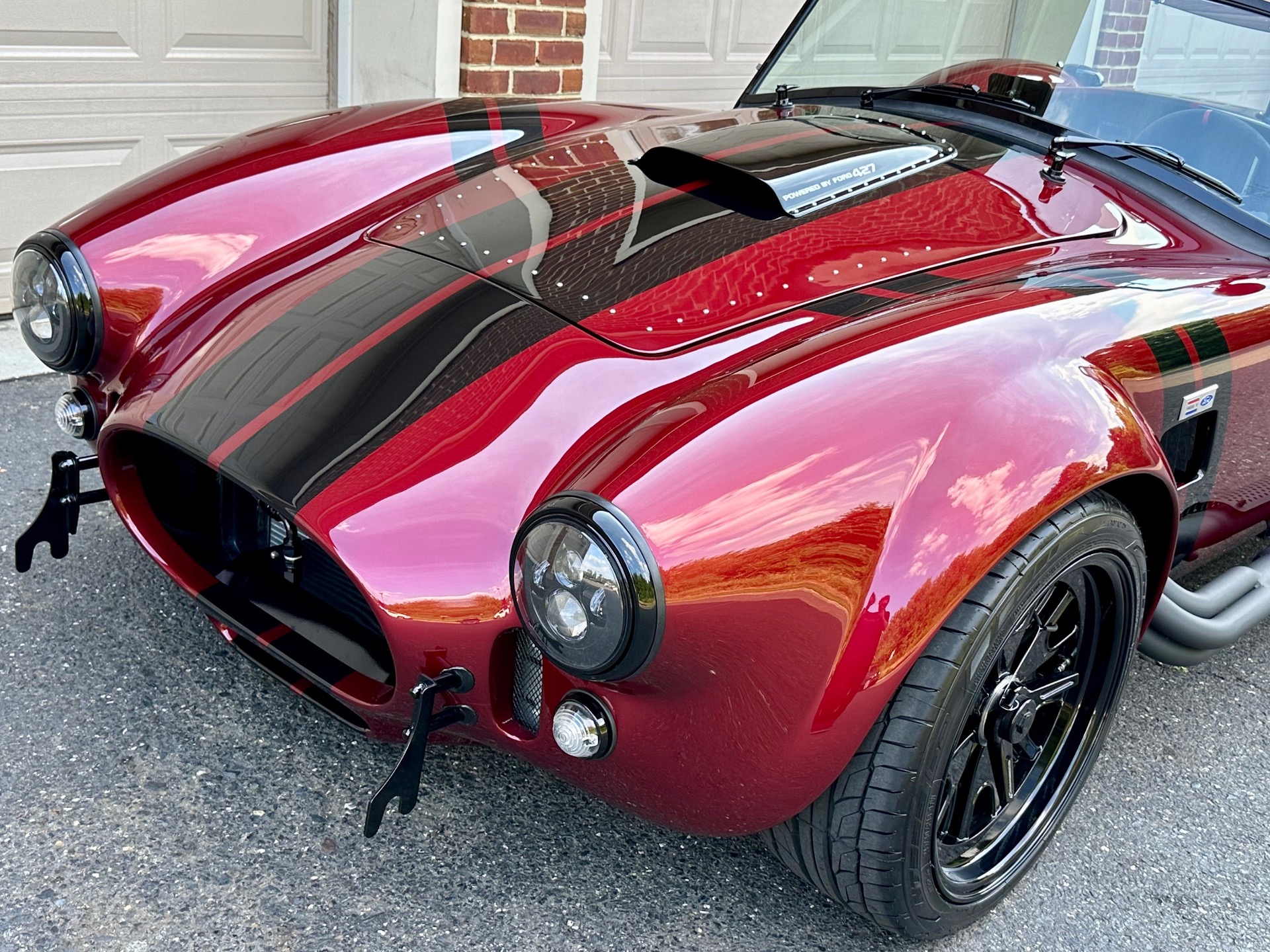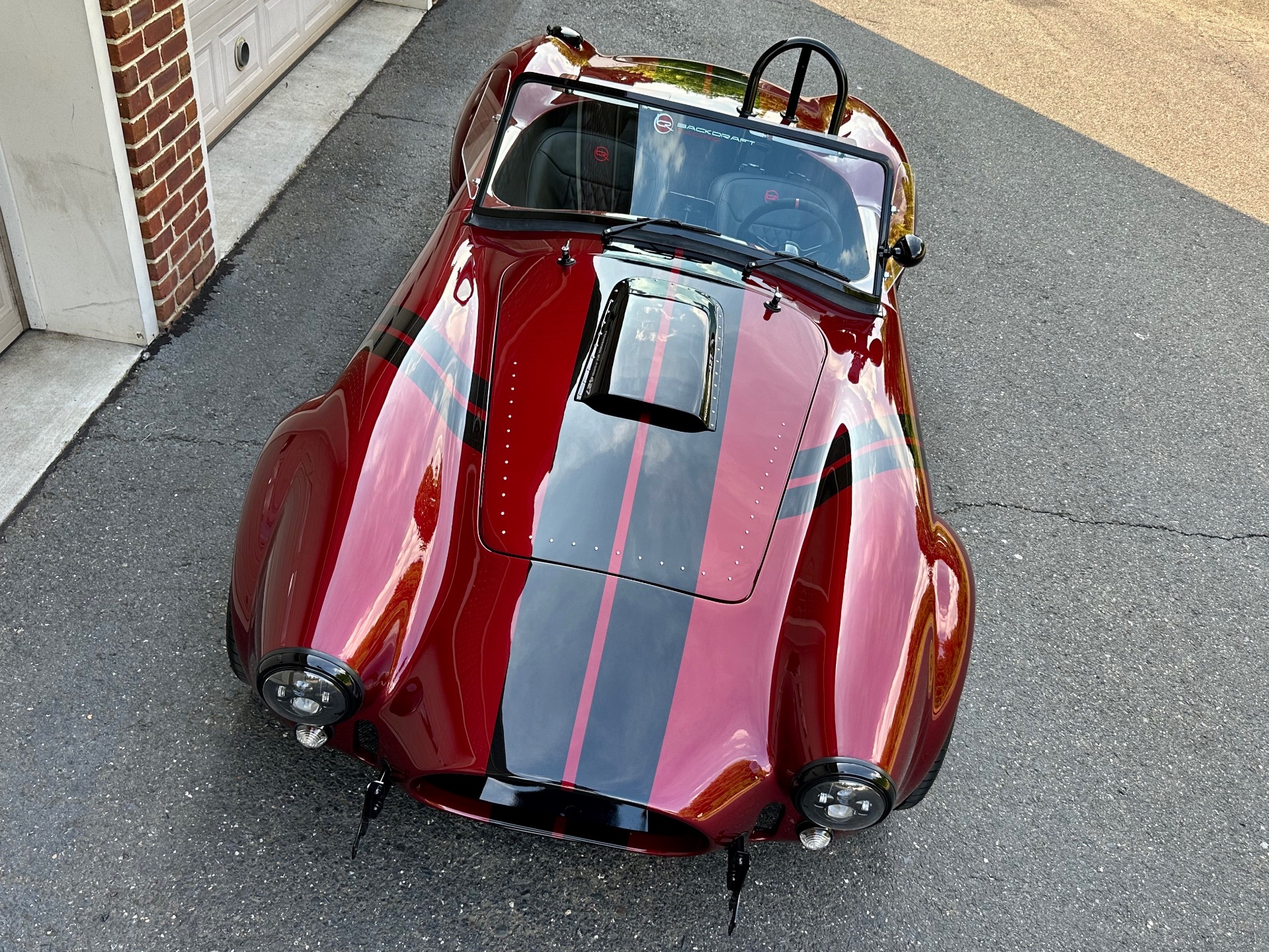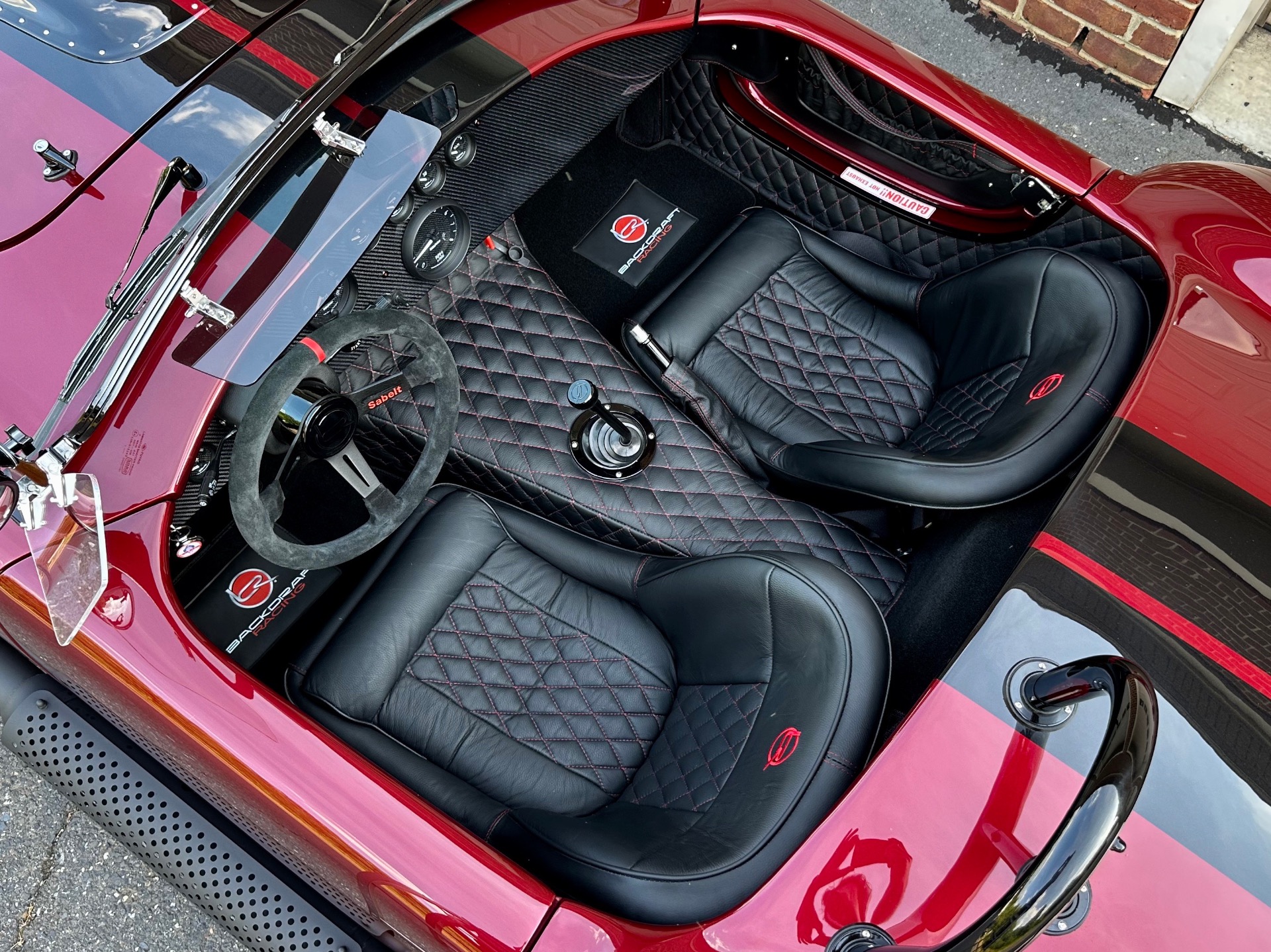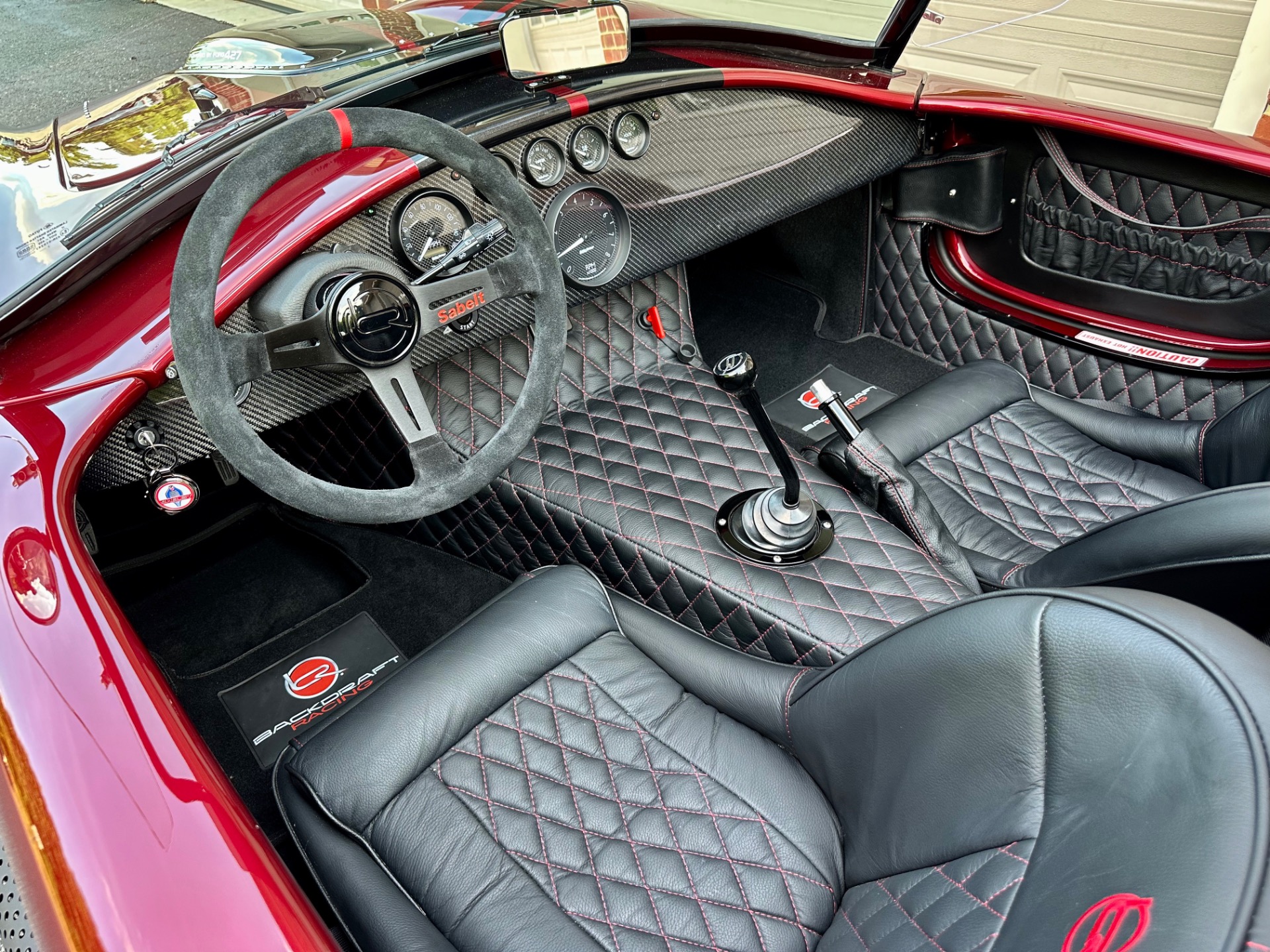 Another awesome 1965 Backdraft Racing Cobra RT4B has arrived at Jonathan Motorcars, your official Backdraft dealer for over 14 years! This stunning Cobra is a true masterpiece, boasting a striking Ford Ruby Red paint color with bold black racing stripes that accentuate its classic design. The exterior is further enhanced by the full blacked-out package, giving it a sleek and aggressive look on the road. Step inside this exceptional Cobra and you'll be greeted by a luxurious interior featuring black leather seats with eye-catching red diamond stitching. The attention to detail is evident throughout, with a carbon fiber dash, autometer carbon GT gauges, heated seats, suede steering wheel, and 4-point harness cam lock style seat belts adding both style and functionality to the cabin. Under the hood, this Cobra is powered by a formidable Prestige 427 engine delivering an impressive 500HP, ensuring exhilarating performance and a thrilling driving experience. Additional features include painted stripes under the hood, side stripes, 3M paint protection, blacked-out LED headlights, power steering, remote brake and clutch reservoirs, oil cooler, and an aluminum gas tank. Whether you're a seasoned collector or a passionate enthusiast, this 1965 Backdraft Racing Cobra RT4B is sure to turn heads wherever it goes. With financing options available and the ability to ship worldwide, don't miss your chance to own this exceptional piece of automotive history. Visit Jonathan Motorcars today and make this iconic Cobra yours!