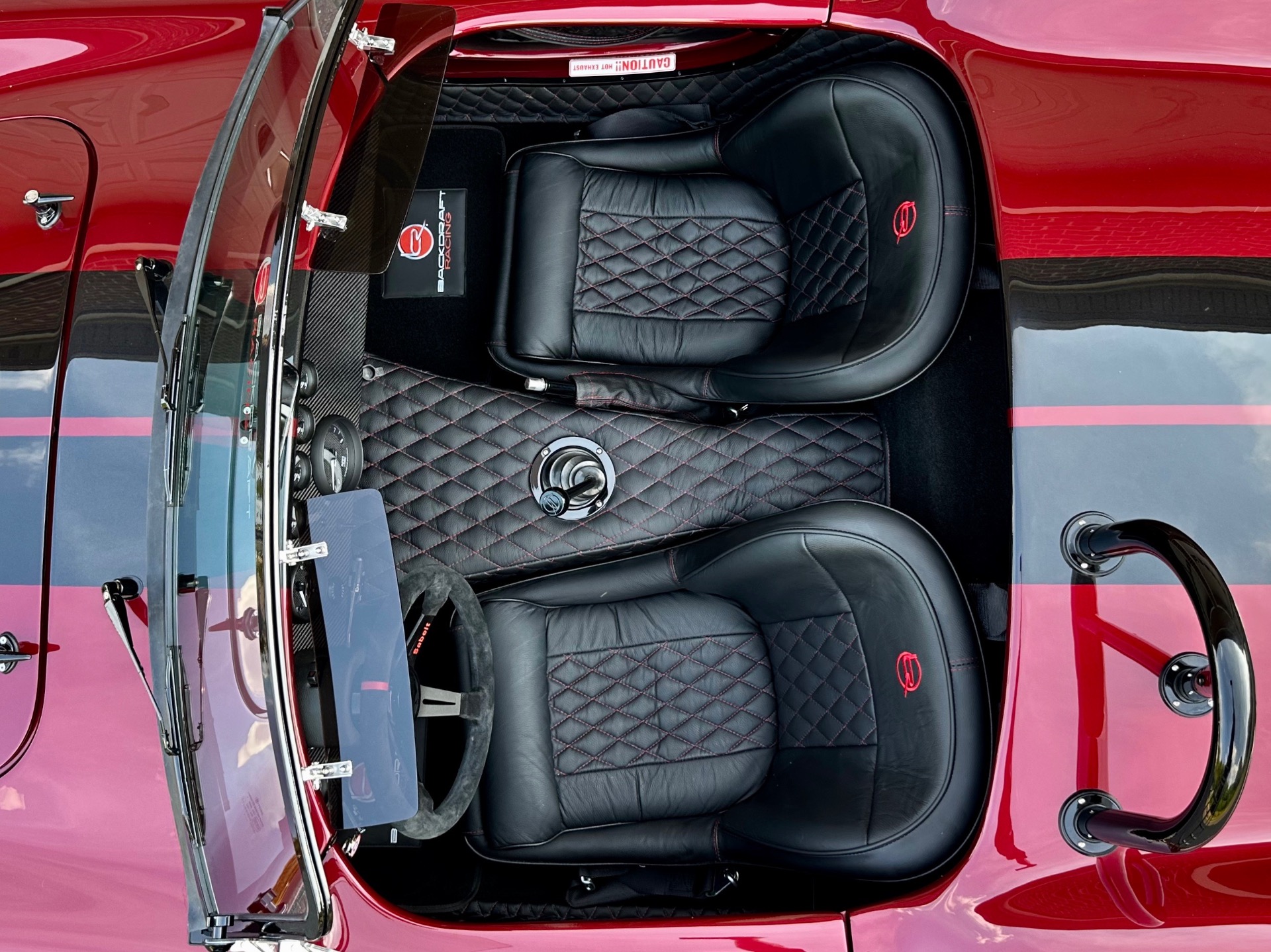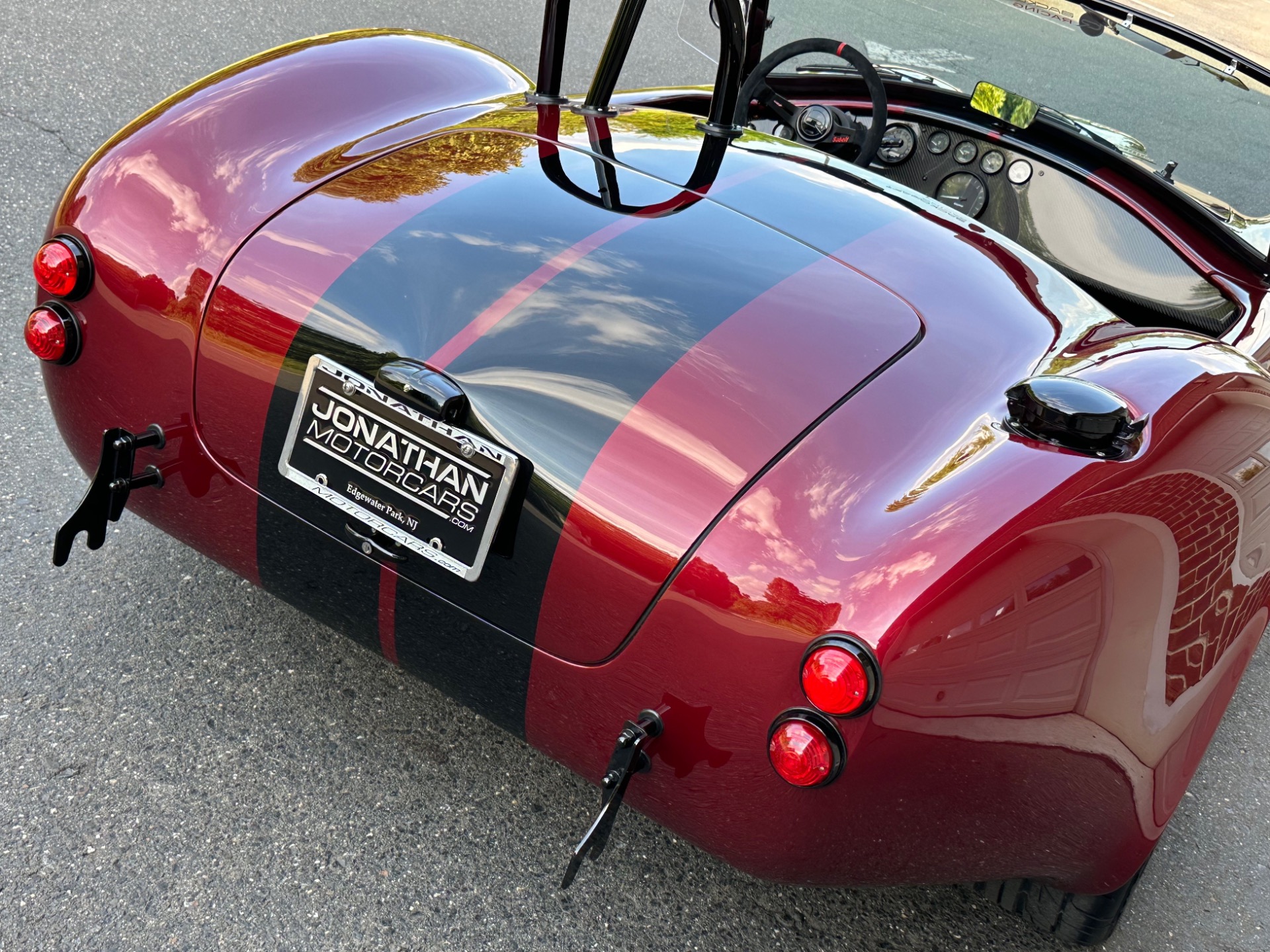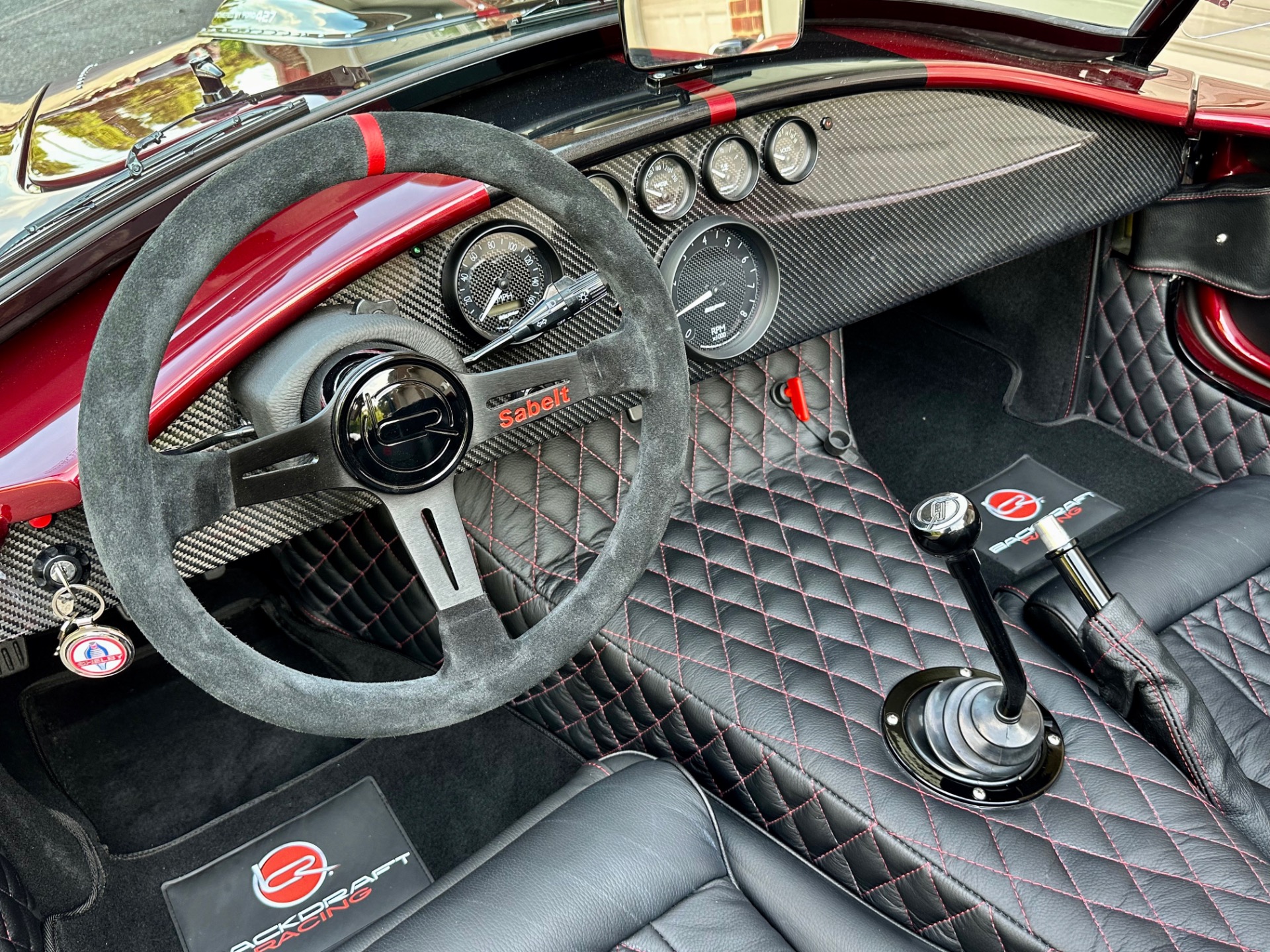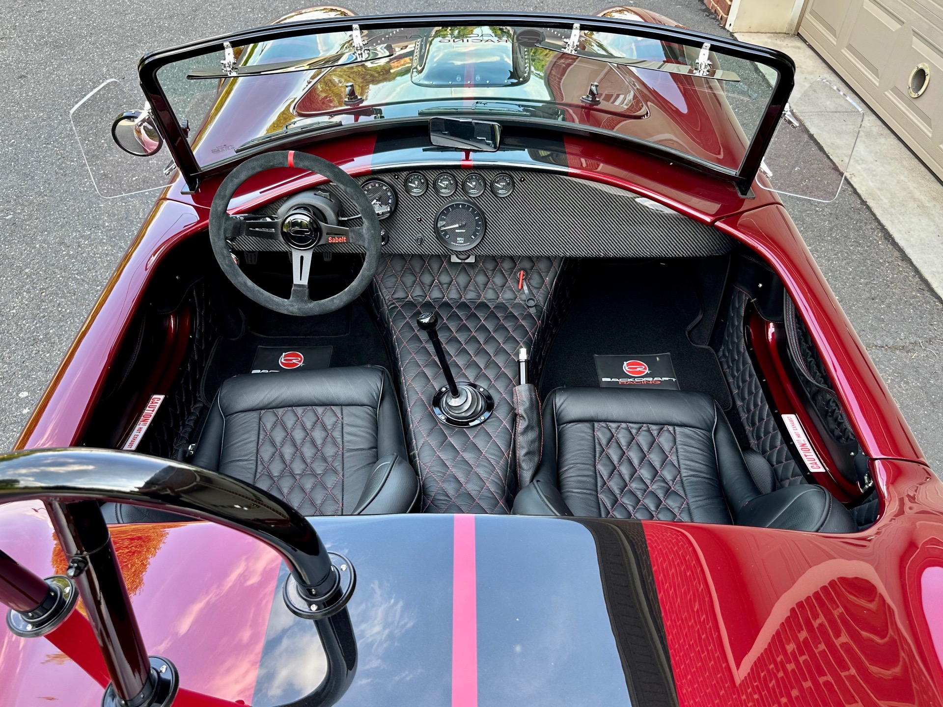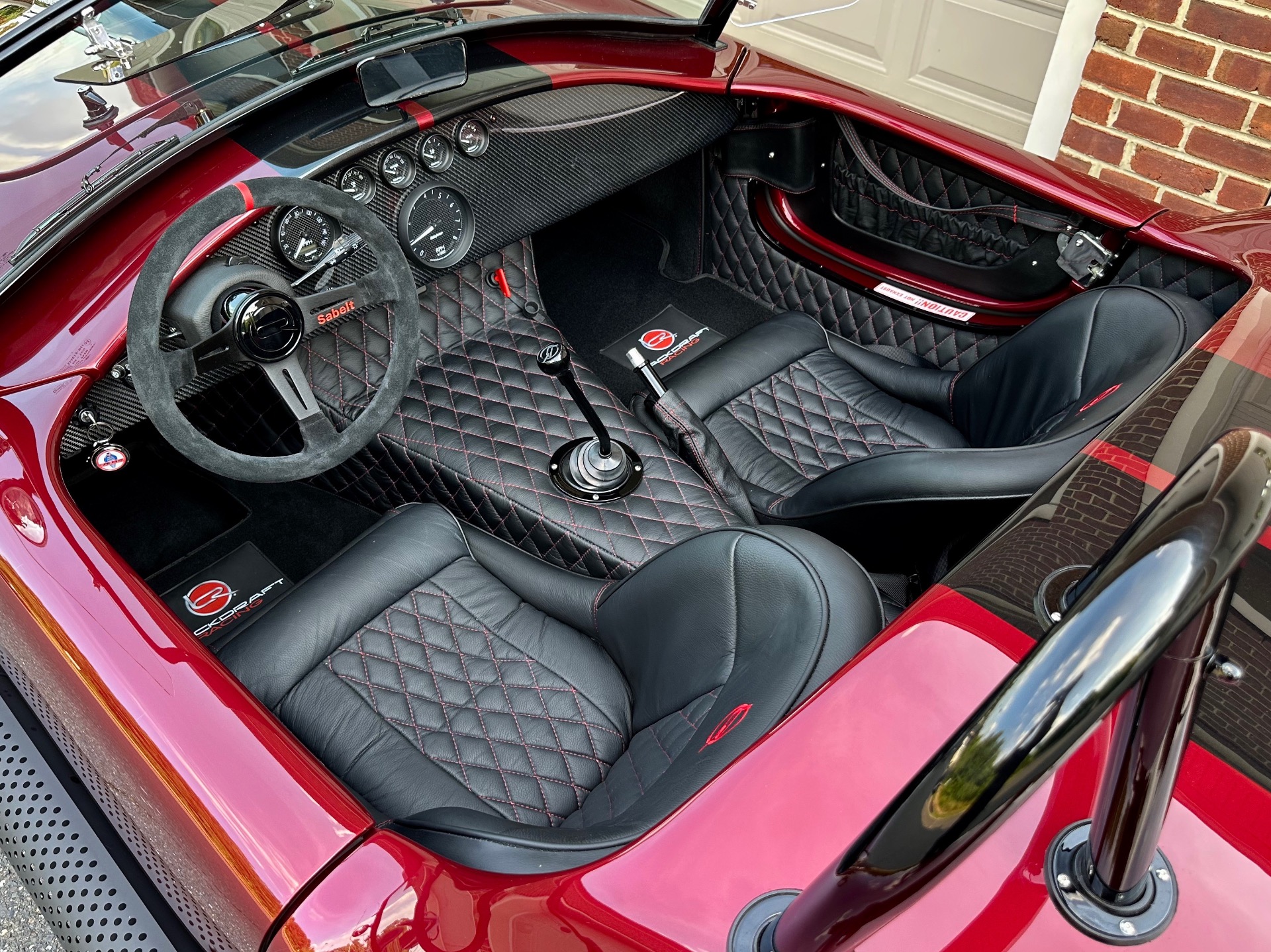 Another awesome 1965 Backdraft Racing Cobra RT4B has arrived at Jonathan Motorcars, your official Backdraft dealer for over 14 years! This stunning Cobra is a true masterpiece, boasting a striking Ford Ruby Red paint color with bold black racing stripes that accentuate its classic design. The exterior is further enhanced by the full blacked-out package, giving it a sleek and aggressive look on the road. Step inside this exceptional Cobra and you'll be greeted by a luxurious interior featuring black leather seats with eye-catching red diamond stitching. The attention to detail is evident throughout, with a carbon fiber dash, autometer carbon GT gauges, heated seats, suede steering wheel, and 4-point harness cam lock style seat belts adding both style and functionality to the cabin. Under the hood, this Cobra is powered by a formidable Prestige 427 engine delivering an impressive 500HP, ensuring exhilarating performance and a thrilling driving experience. Additional features include painted stripes under the hood, side stripes, 3M paint protection, blacked-out LED headlights, power steering, remote brake and clutch reservoirs, oil cooler, and an aluminum gas tank. Whether you're a seasoned collector or a passionate enthusiast, this 1965 Backdraft Racing Cobra RT4B is sure to turn heads wherever it goes. With financing options available and the ability to ship worldwide, don't miss your chance to own this exceptional piece of automotive history. Visit Jonathan Motorcars today and make this iconic Cobra yours!